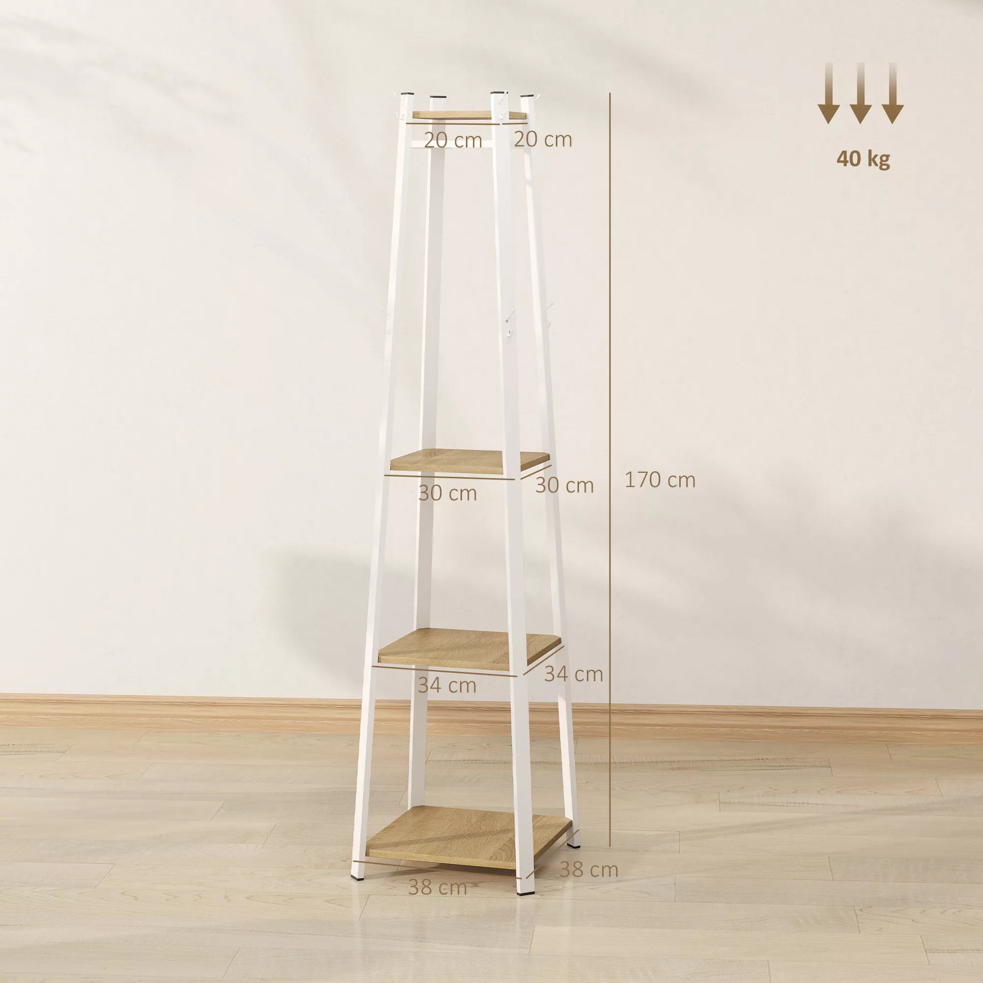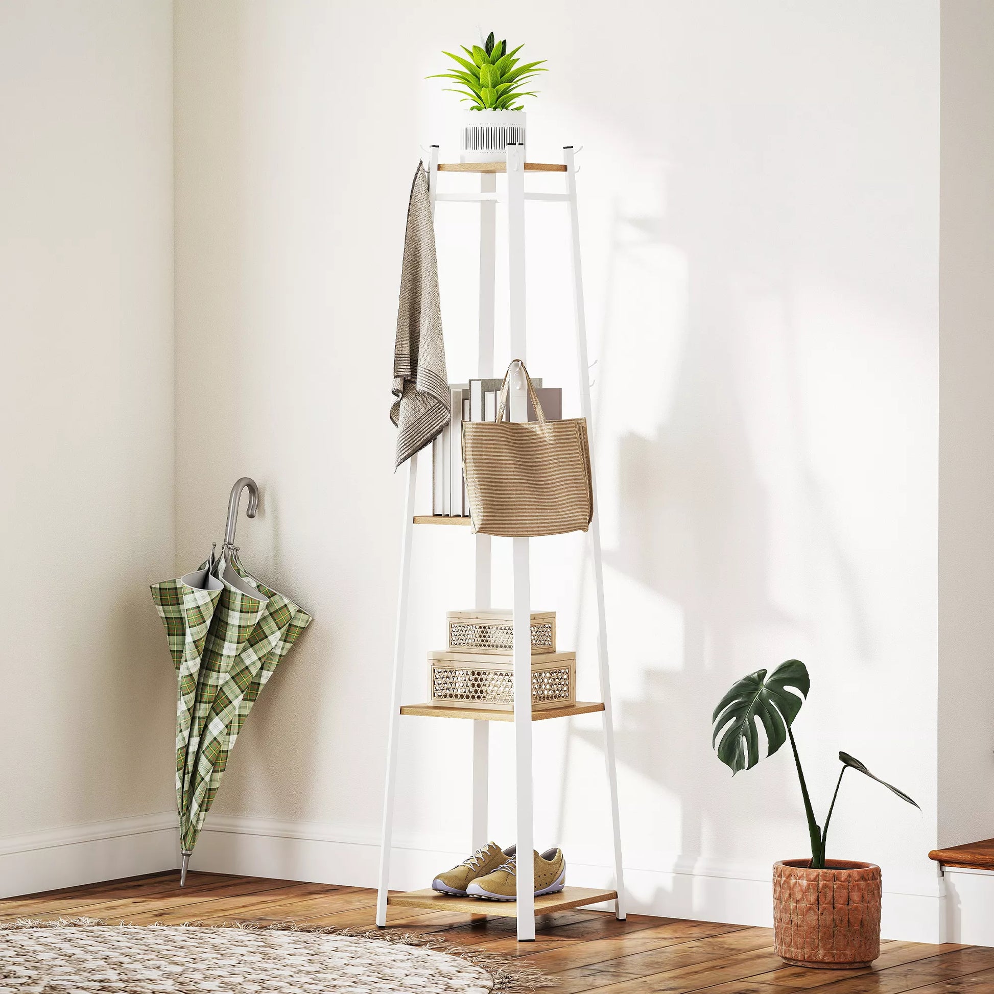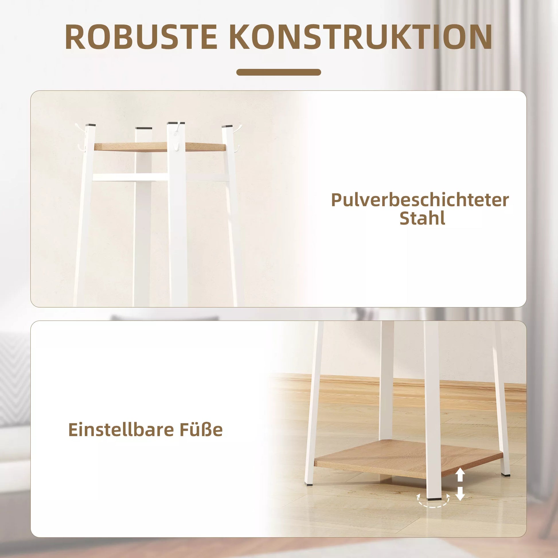 Patirkite stilingą drabužių kabyklą, puikiai tinkantį pakabinti jūsų garderobą. Jame yra 8 dvigubi kabliukai paltams ir šalčiams pakabinti bei trijų lygių lentyna dekoracijoms ar augalams, todėl jis tikrai sutaupo vietos kiekviename kampelyje. Elegantiškas, trapecijos formos dizainas puikiai tiks koridoriuose ar svetainėse ir leis tvarkytis be vargo.