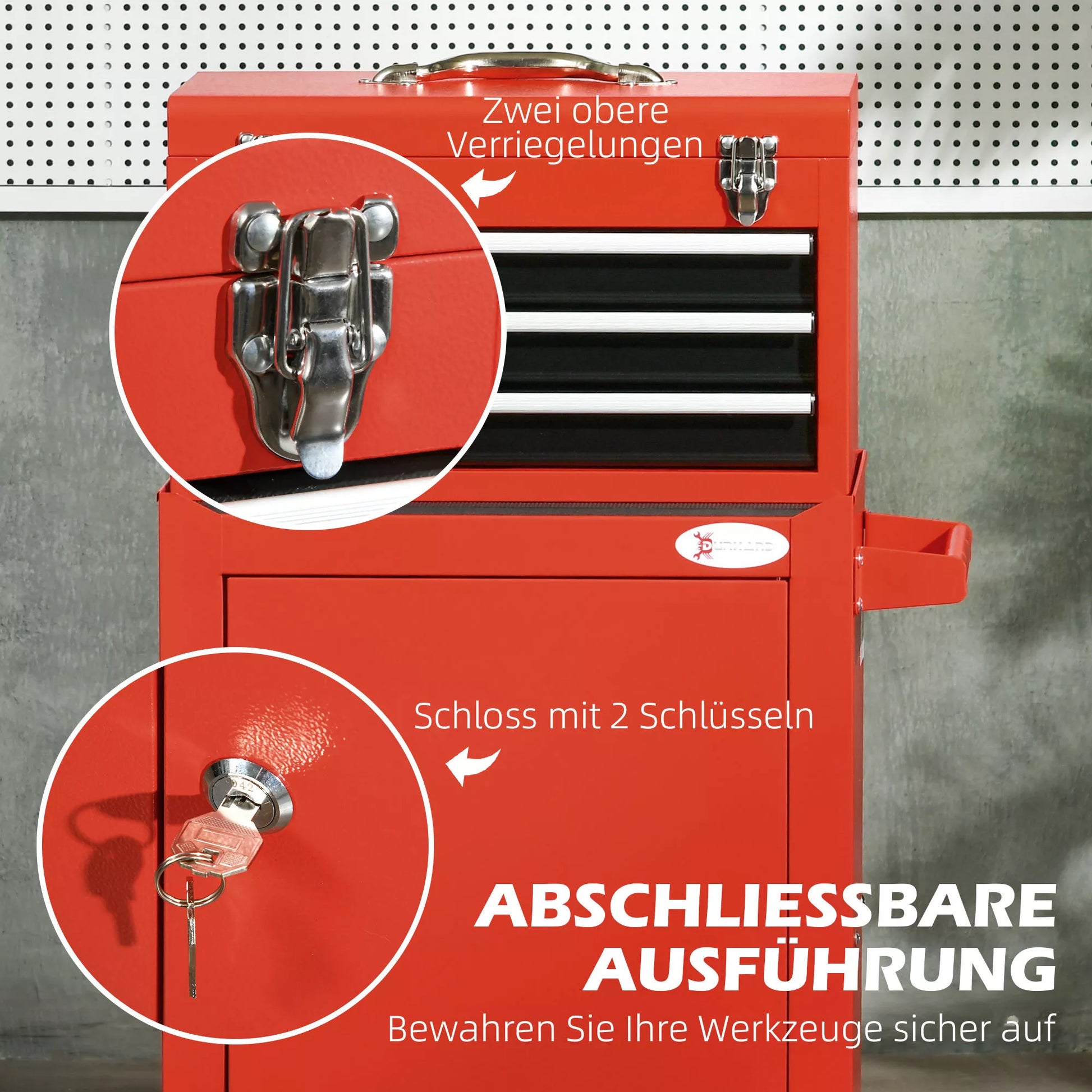 DURHAND 2-in-1 mobilus įrankių vežimėlis, 3 stalčiai, įrankių lentelė, plieninis korpusas, 46I x 28P x 94A cm, Raudonas
