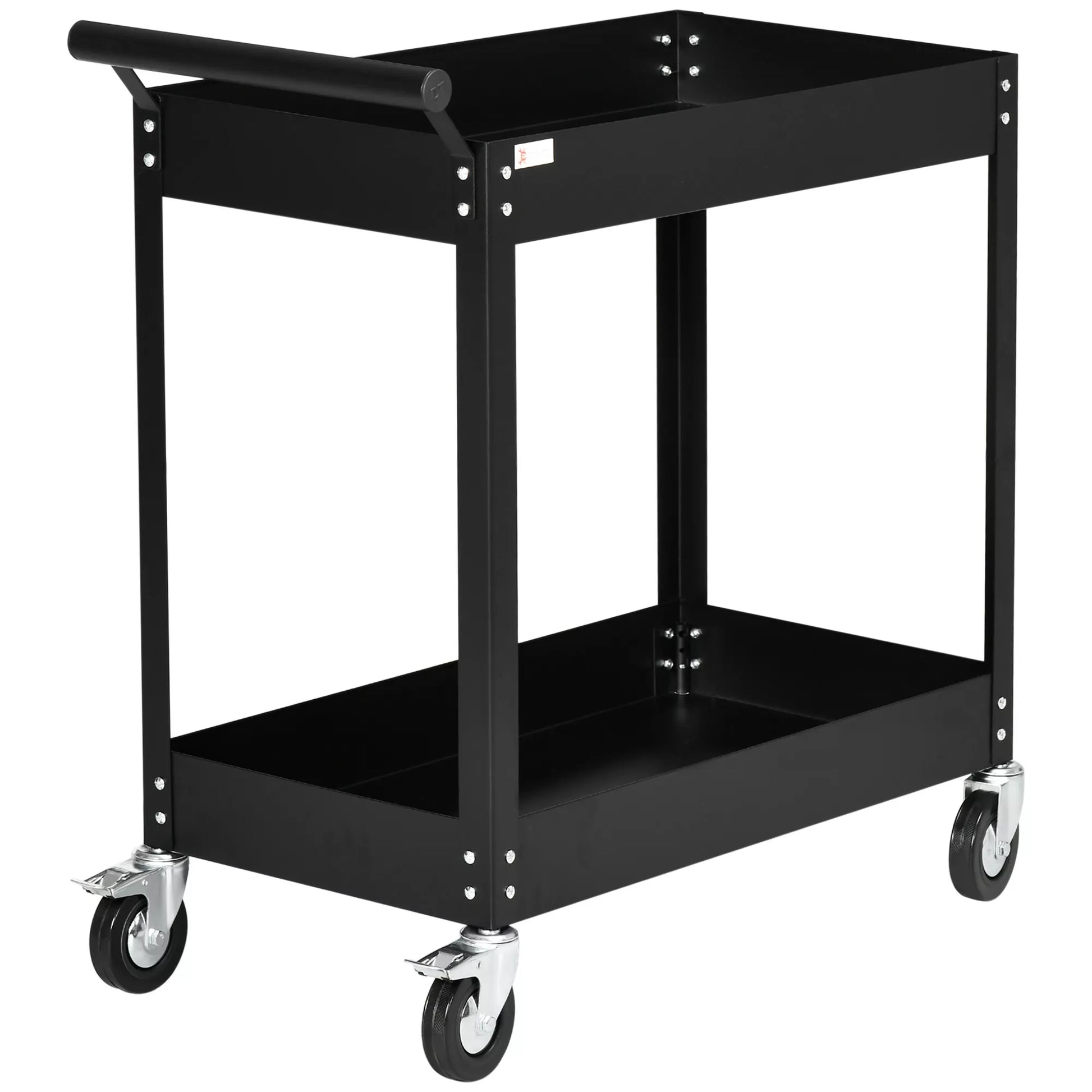 Serviso vežimėlis, 2 lentynos, 4 ratukai, plienas, iki 150 kg, 84,5 x 38 x 84 cm, juodas
