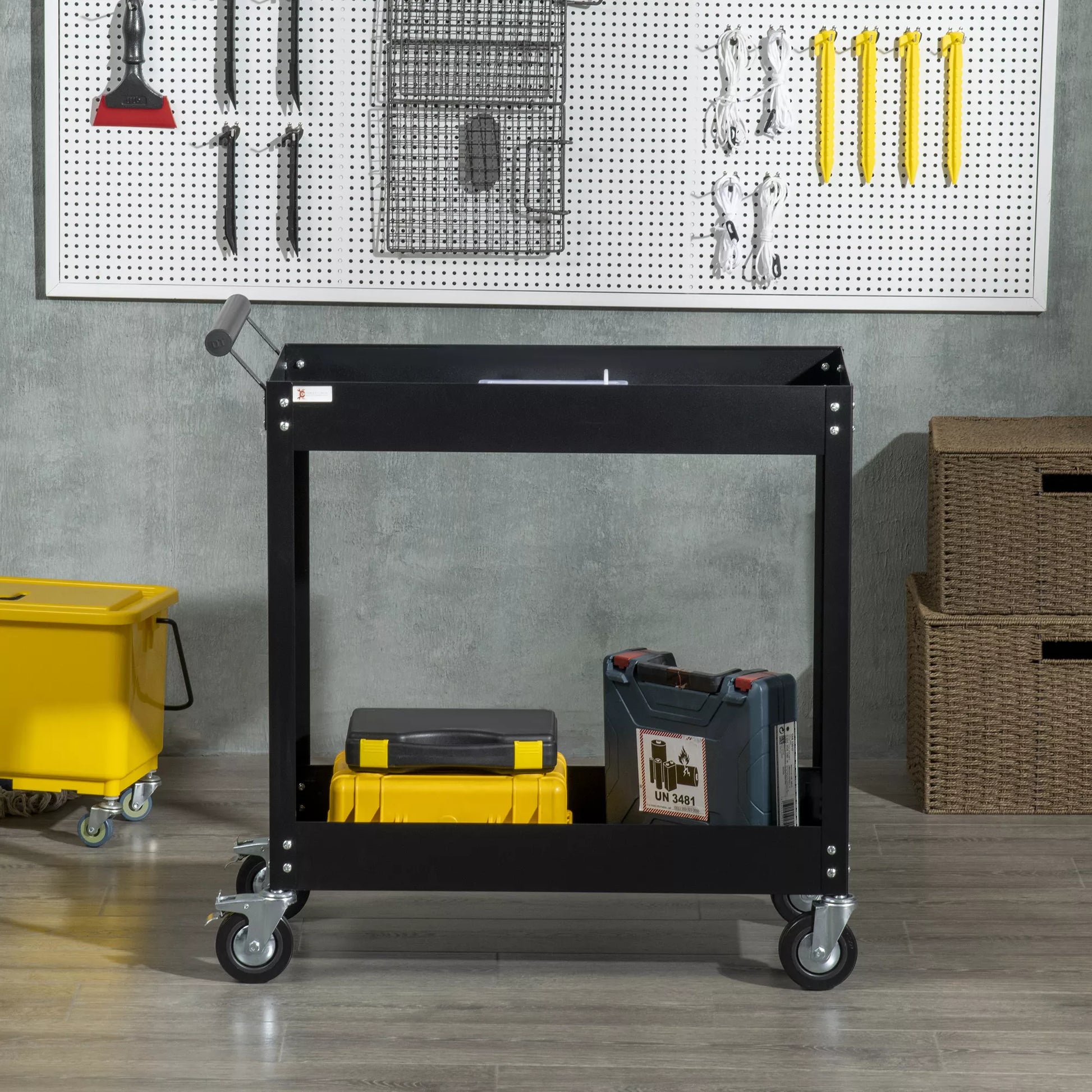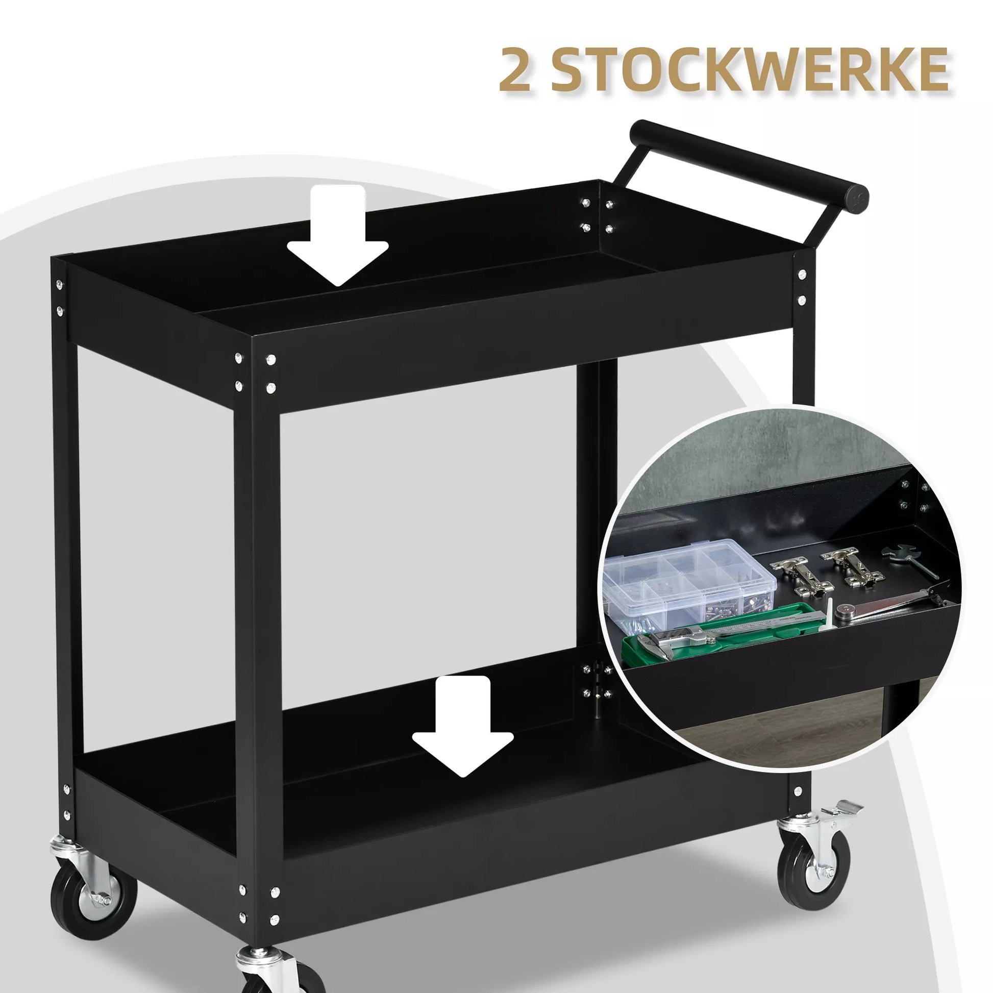 Atraskite serviso vežimėlį – jūsų idealus sprendimas optimaliam įrankių laikymui! Su dviem erdviomis lentynomis jis suteikia pakankamai vietos jūsų įrankiams tvarkingai ir lengvai pasiekiamai laikyti. Dėl keturių ratukų, iš kurių du su stabdžiais, galėsite mėgautis maksimaliu mobilumu savo garaže ar dirbtuvėse – tai nepakeičiamas daiktas jūsų namams!