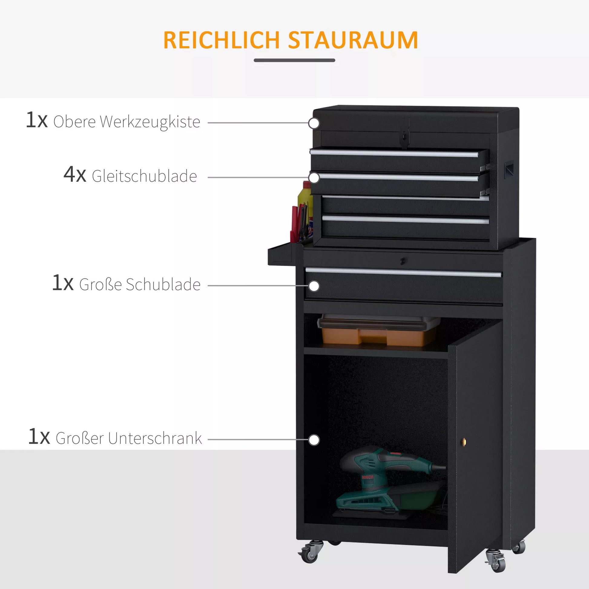 DURHAND Dirbtuvių vežimėlis, įrankių spintelė, dėžė su 5 stalčiais, 360° ratukais, metalinis, 60 x 28 x 104,5 cm