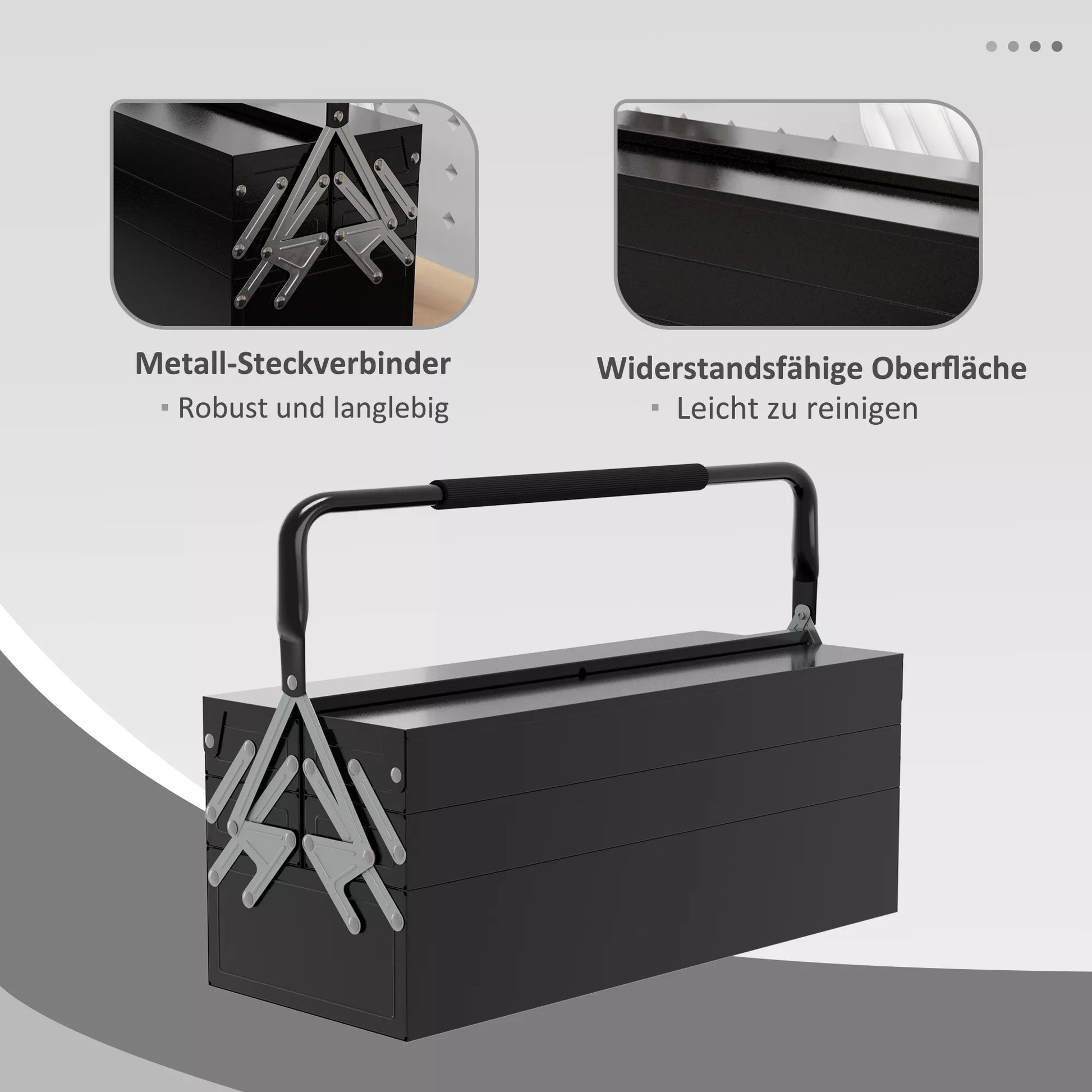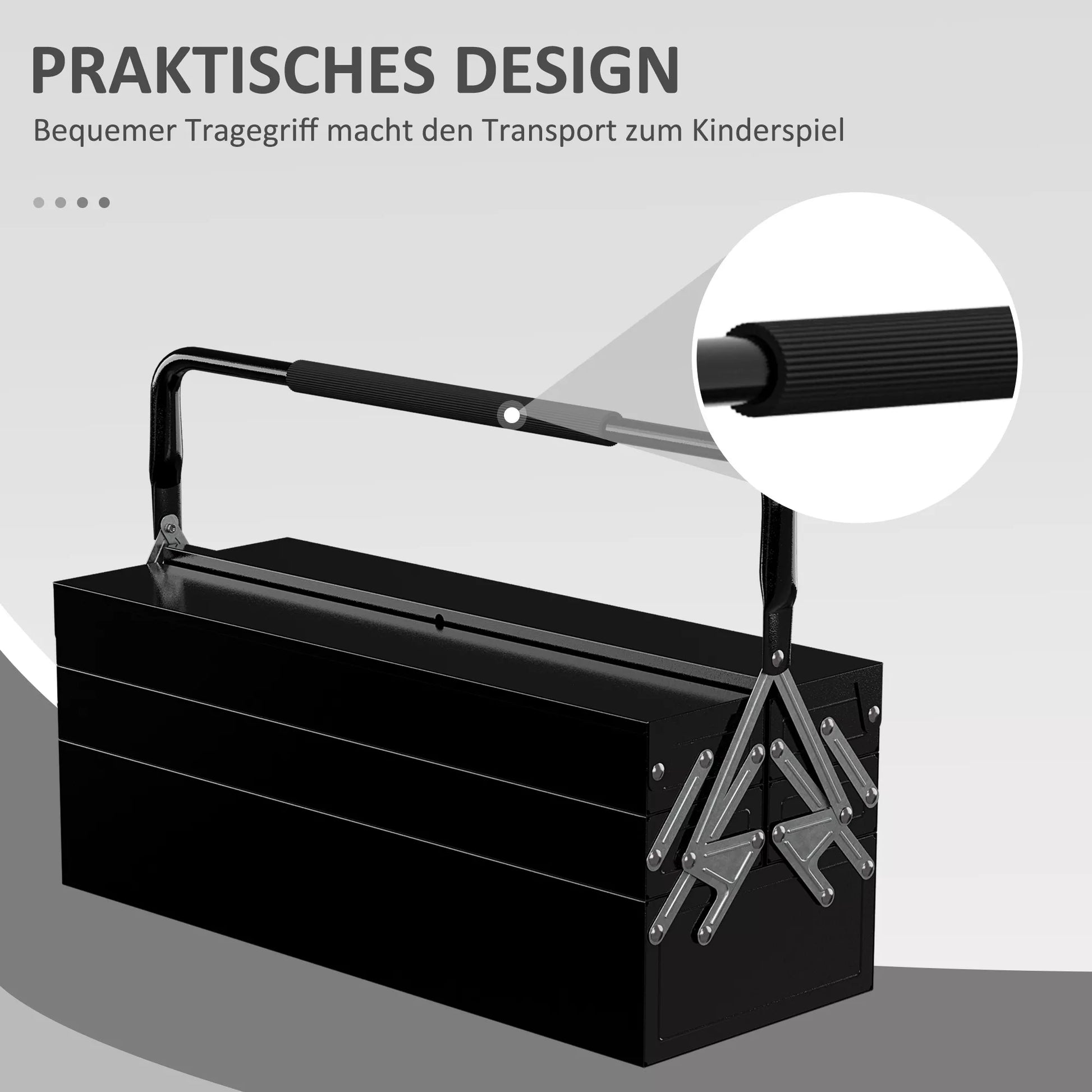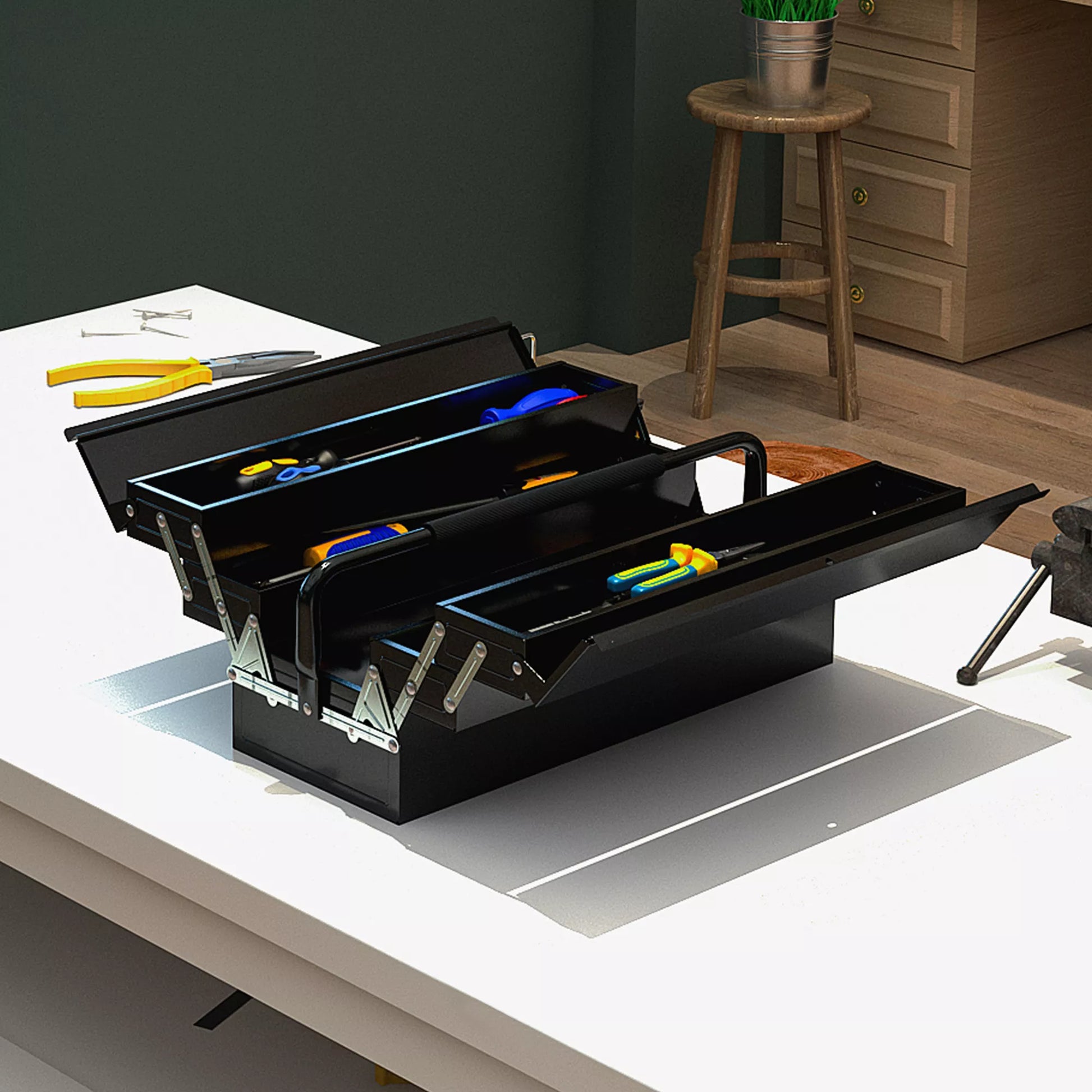Įrankių dėžė, įrankių lagaminas su 3 pakopomis, plienas, 56I x 20P x 41A cm, juoda