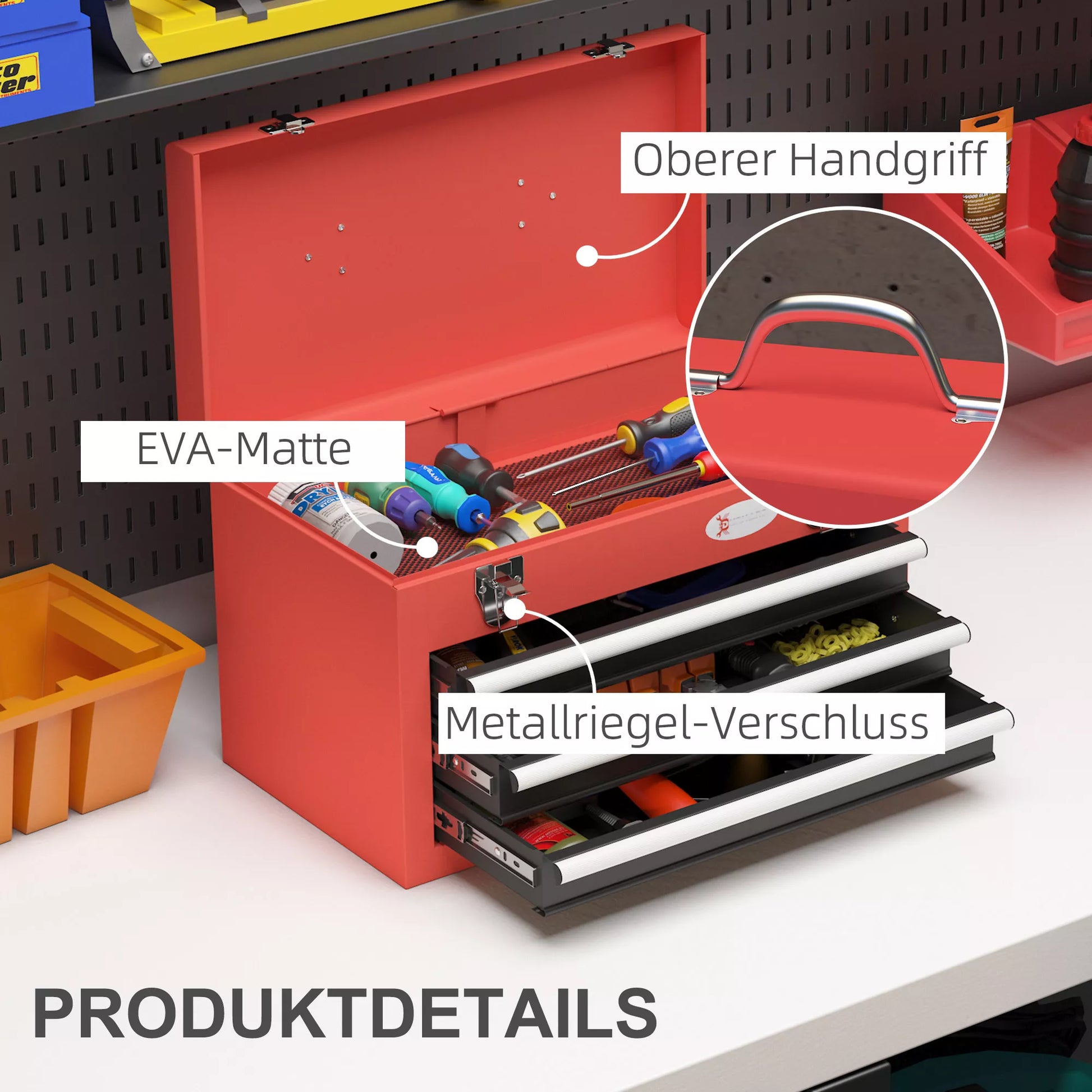 DURHAND įrankių dėžė su 3 stalčiais, 1 skyriumi, tvirtu plieniniu užsegimu, 45 x 24 x 27 cm, raudona