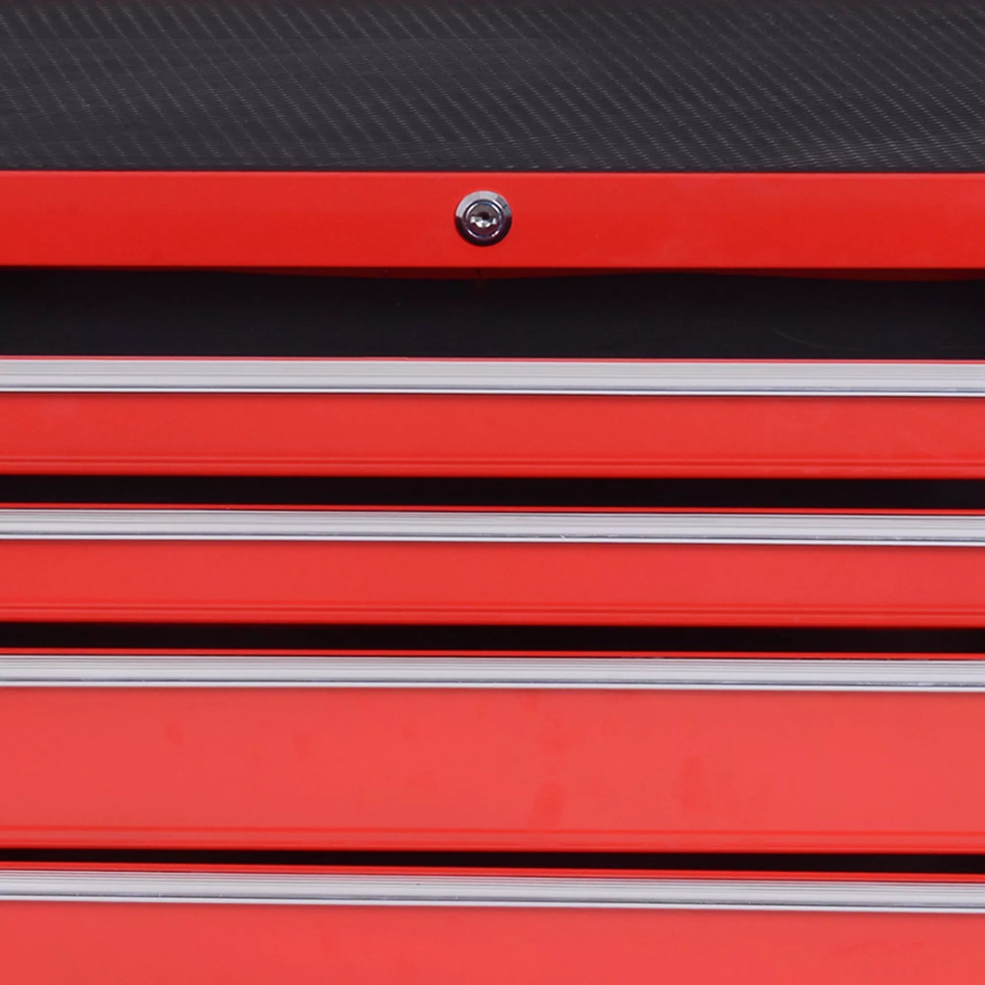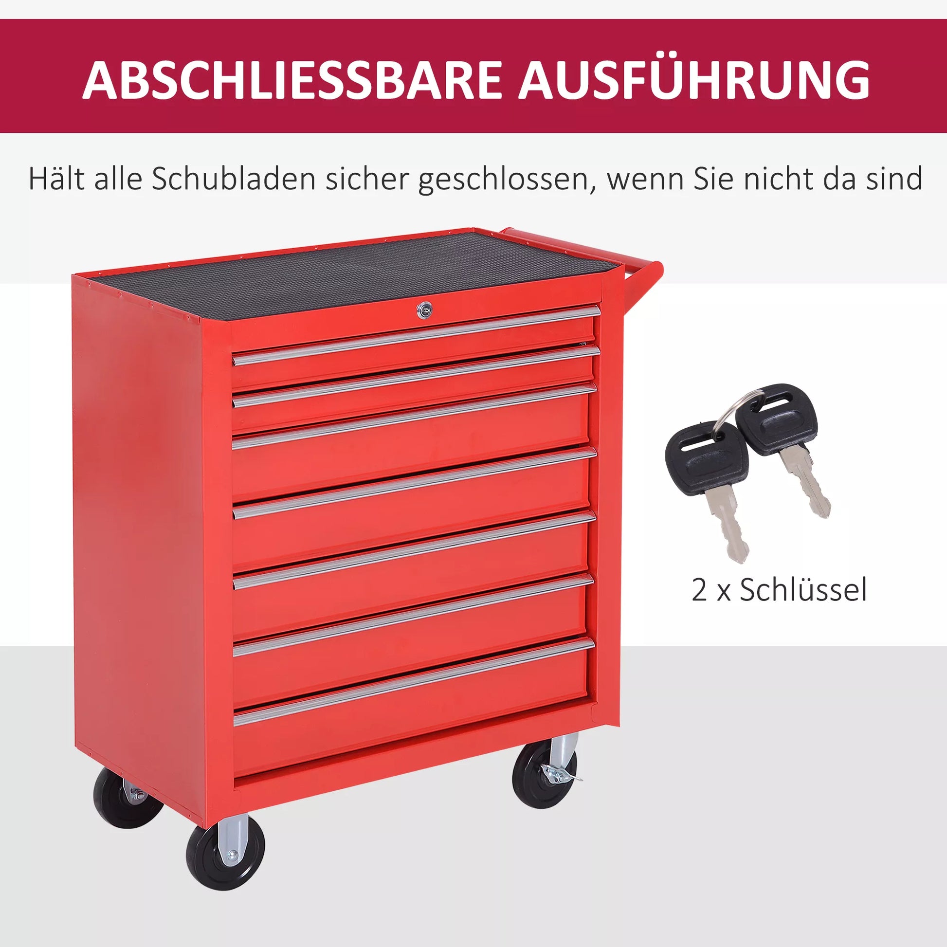 Įrankių vežimėlis, 2 maži ir 5 dideli stalčiai, plieninis, iki 150 kg, 69 x 33 x 75 cm, raudonas