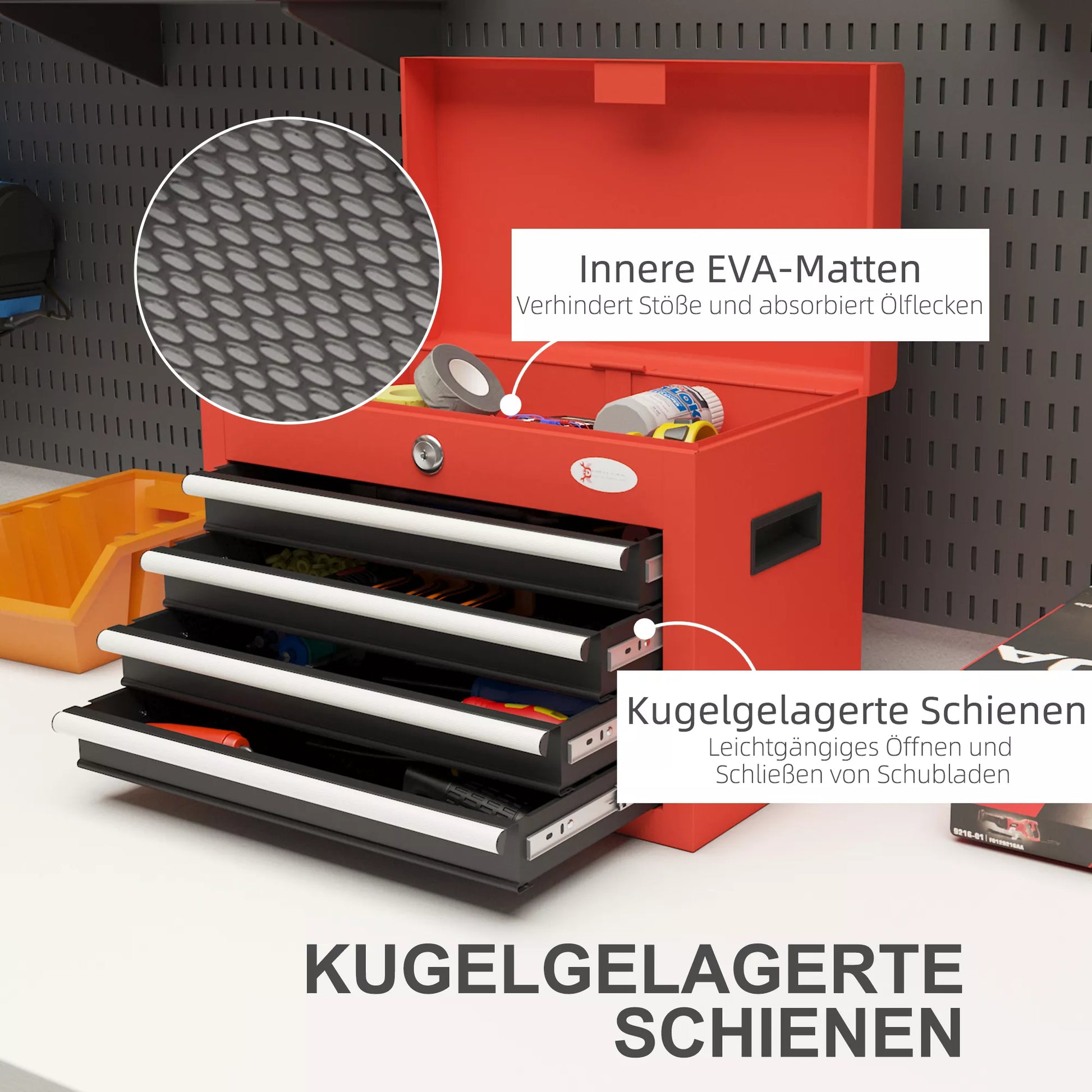 DURHAND įrankių vežimėlis, su užraktu, 2 raktais, 45 cm x 24,5 cm x 32,5 cm, Raudonas