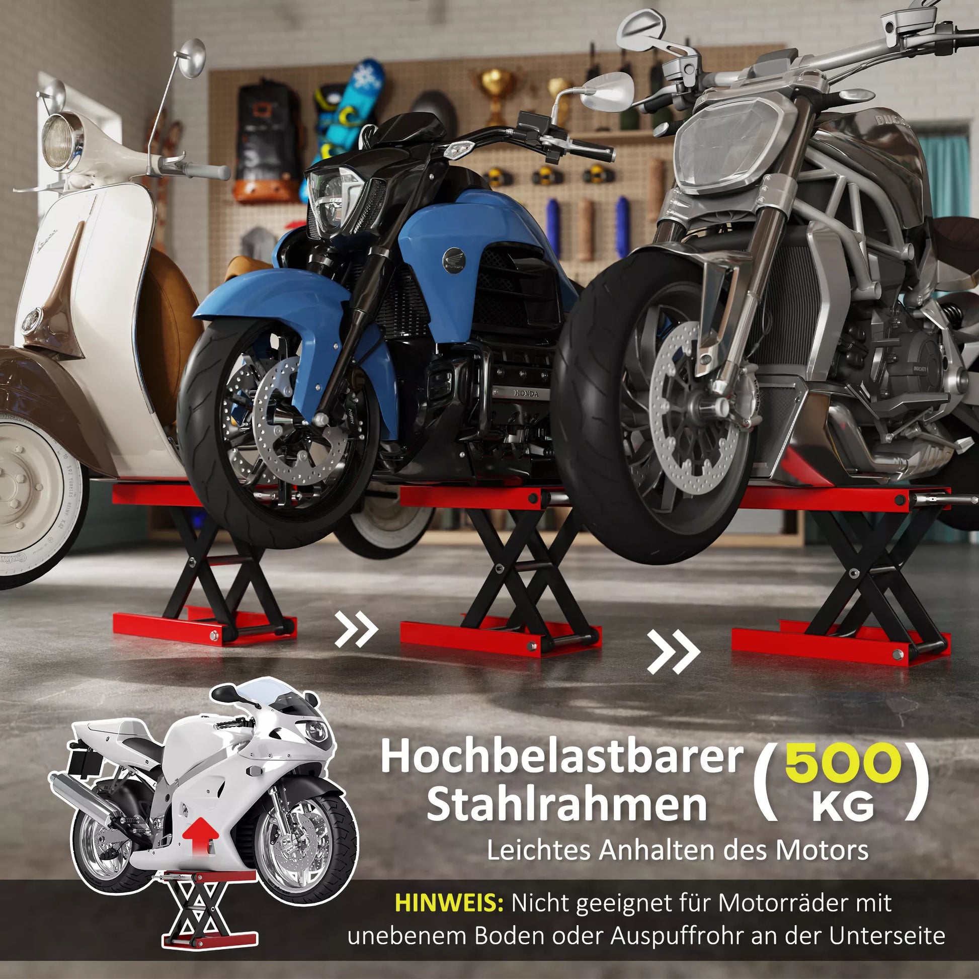 Motociklo keltuvas 500 kg keliamoji galia, motociklo pakelimo platforma, reguliuojamas aukštis 100-370 mm