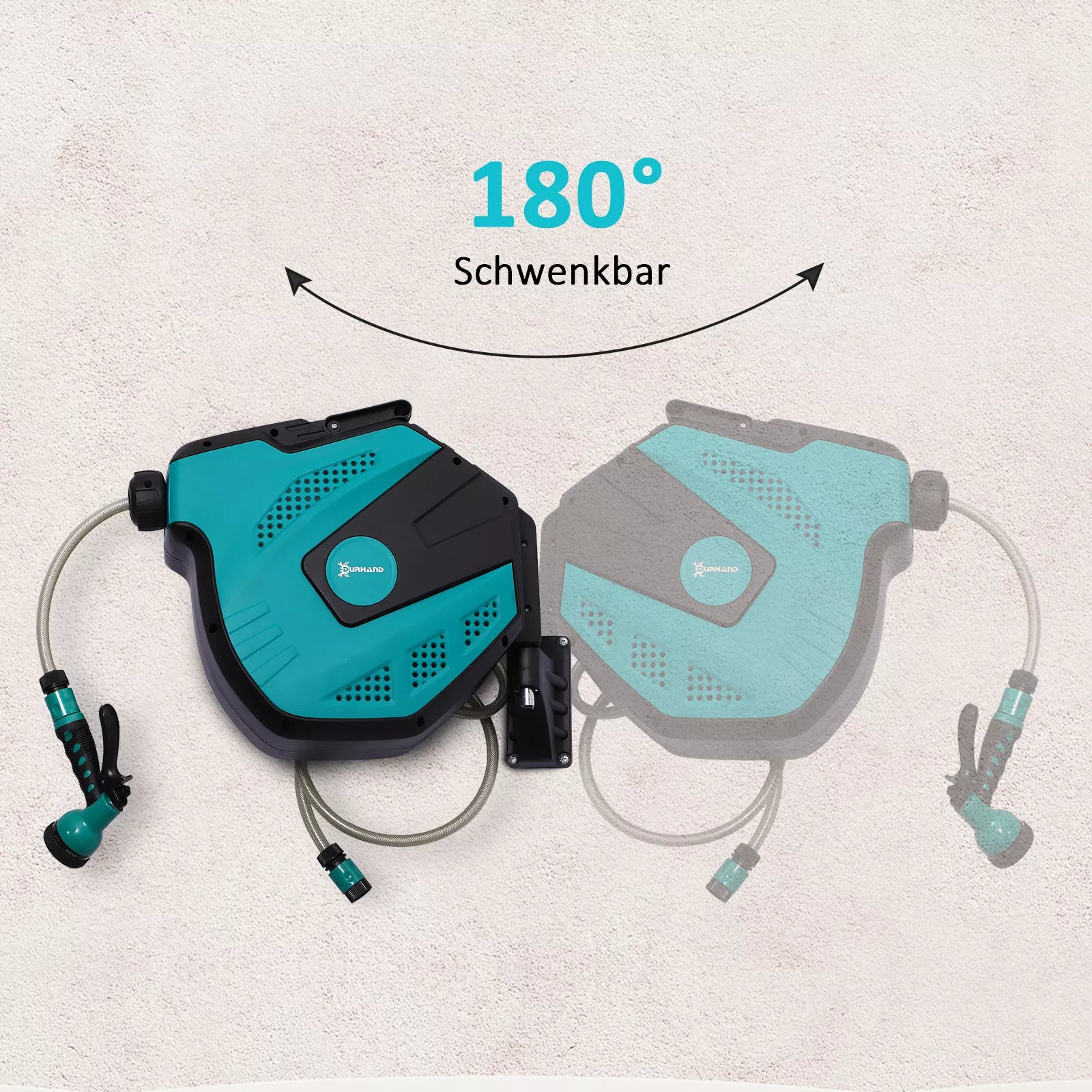 Ši [gamintojas, jei būtų] sodo žarnos ritė talpina 15 metrų ilgio tvirtą sodo žarną, kurią lengva susukti ir išvynioti. Galite iš anksto nustatyti norimą ilgį, o tada užfiksuoti jį ant sodo žarnos esančiu sustabdymo mechanizmu. Čia tikrai niekas nesusipins! Judanti žarnos ritė juda kartu su jumis, todėl galite dirbti visomis kryptimis, neužlenkdami sodo žarnos. Dėl nuostabios apsaugos nuo šalčio funkcijos, net iki -5 °C temperatūros galite laistyti augalus ar plauti automobilį sode naudodami daugiafunkcinį purkštuką.