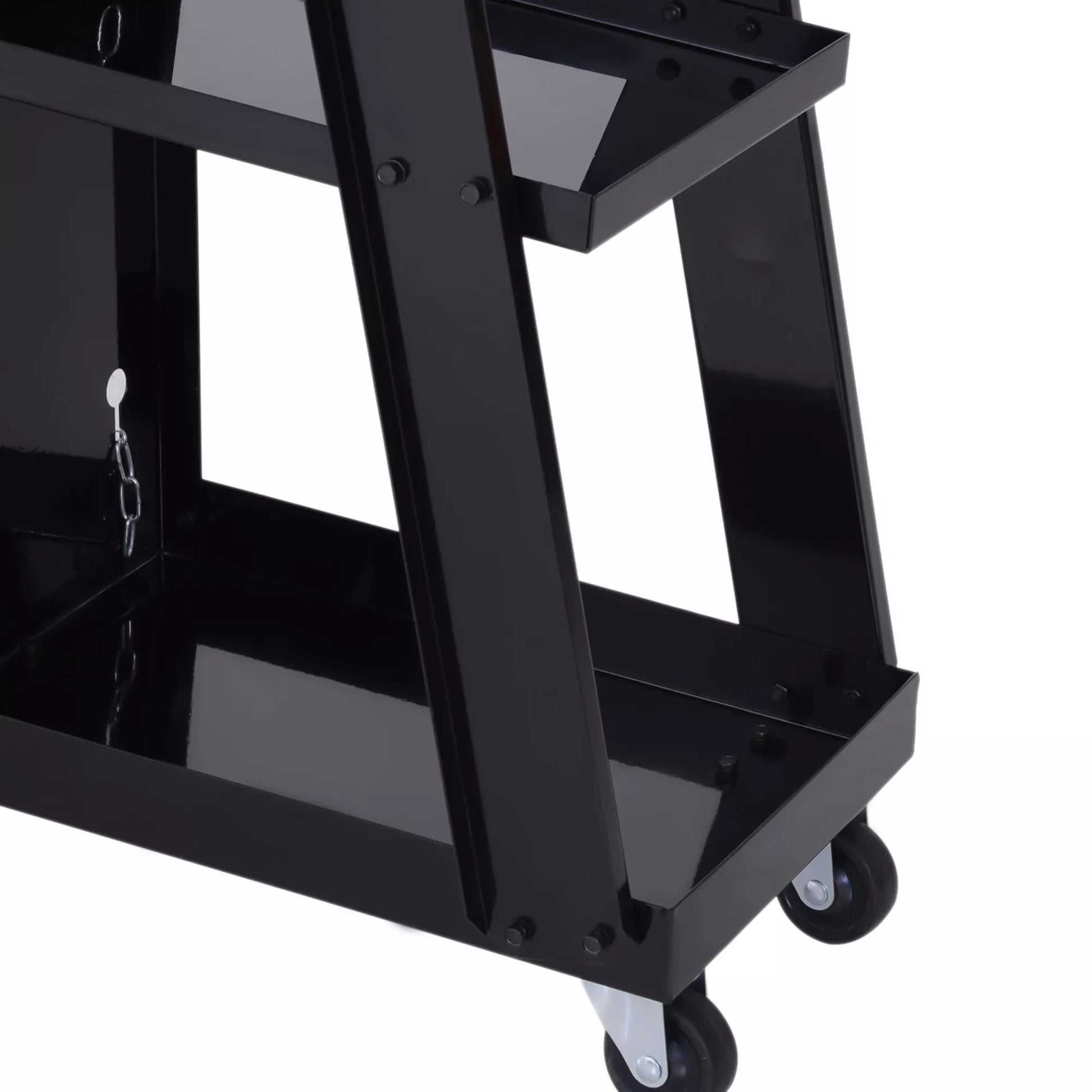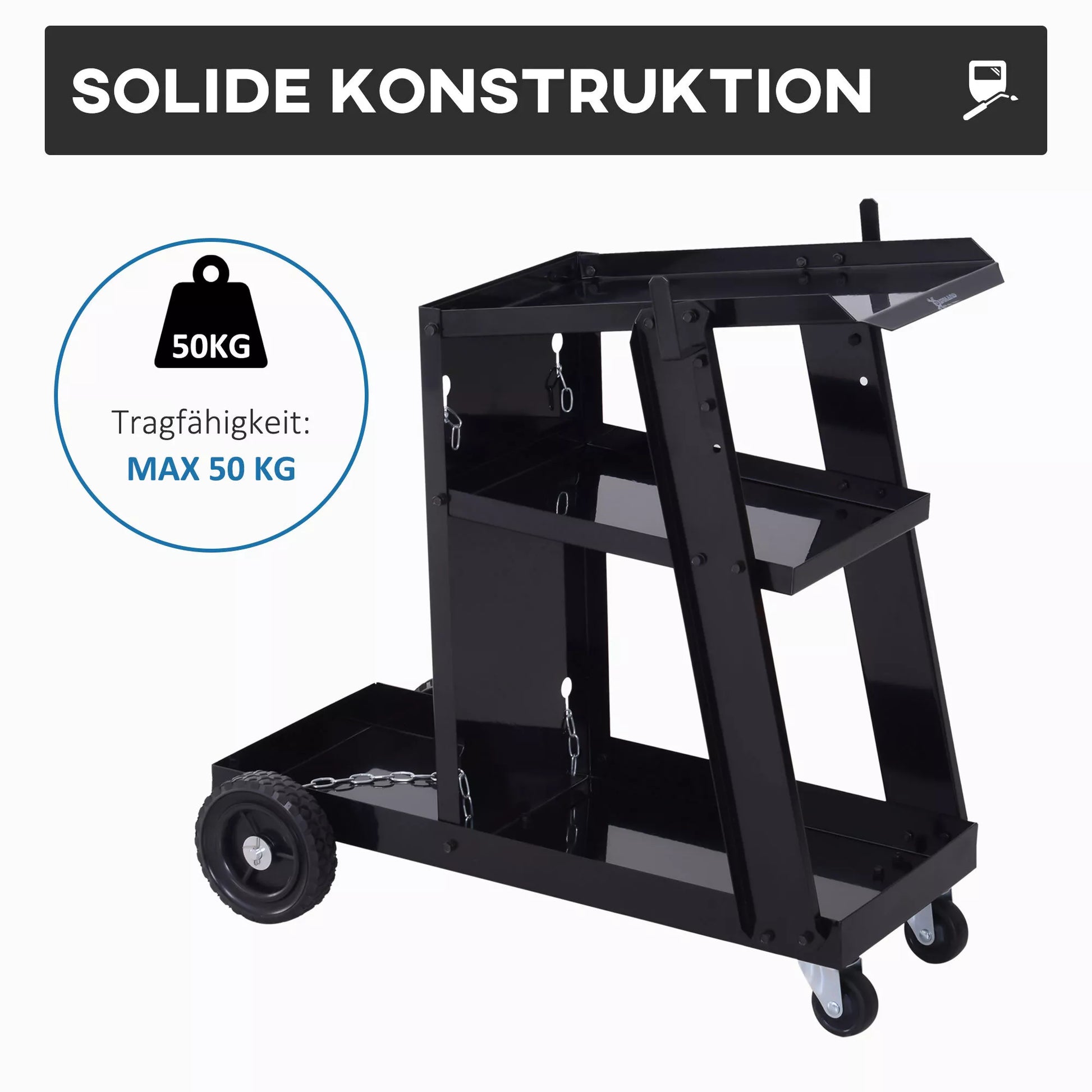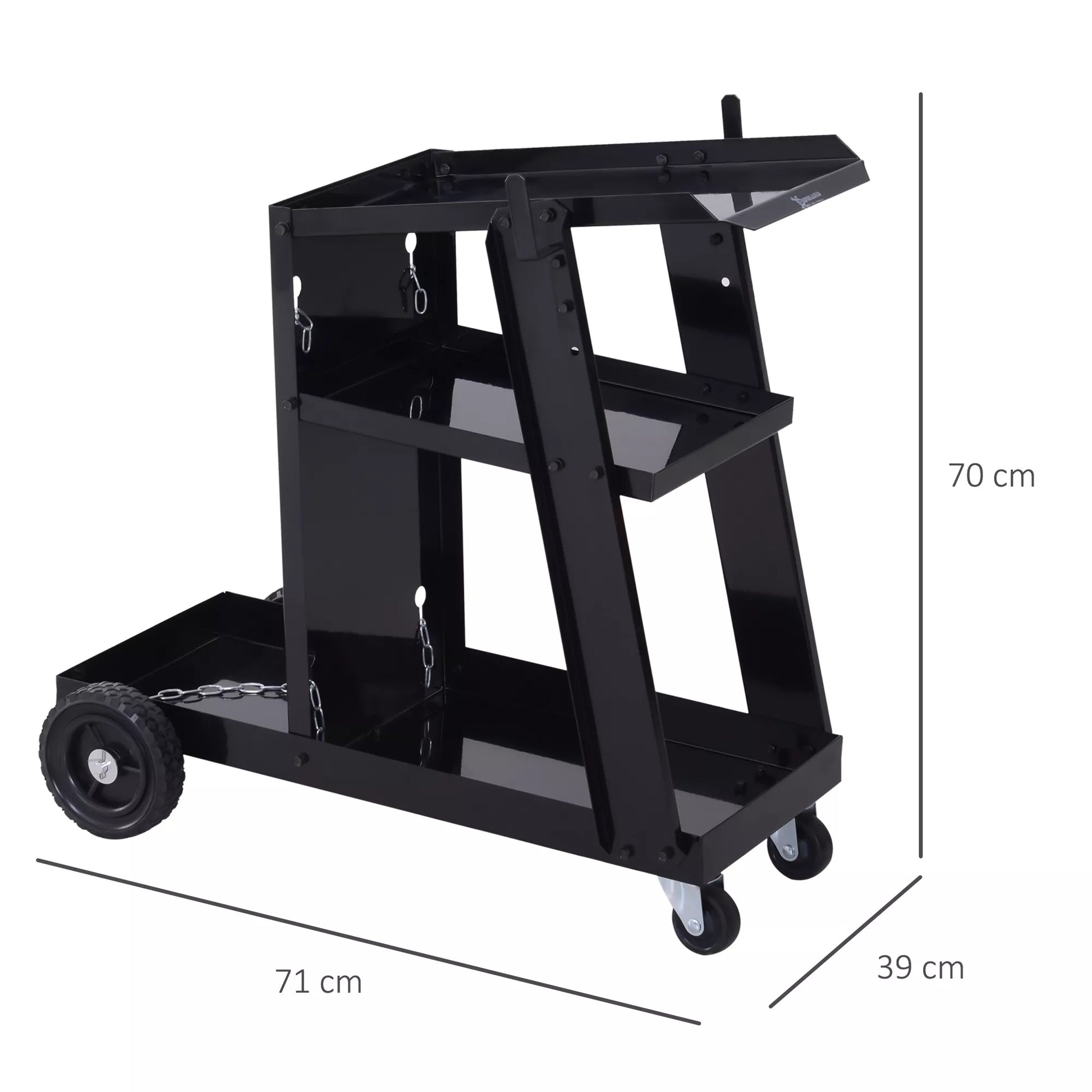 Suvirinimo vežimėlis, 3 lentynos, saugos grandinėlė, 4 ratai, plienas, 71 x 39 x 70cm, juodas