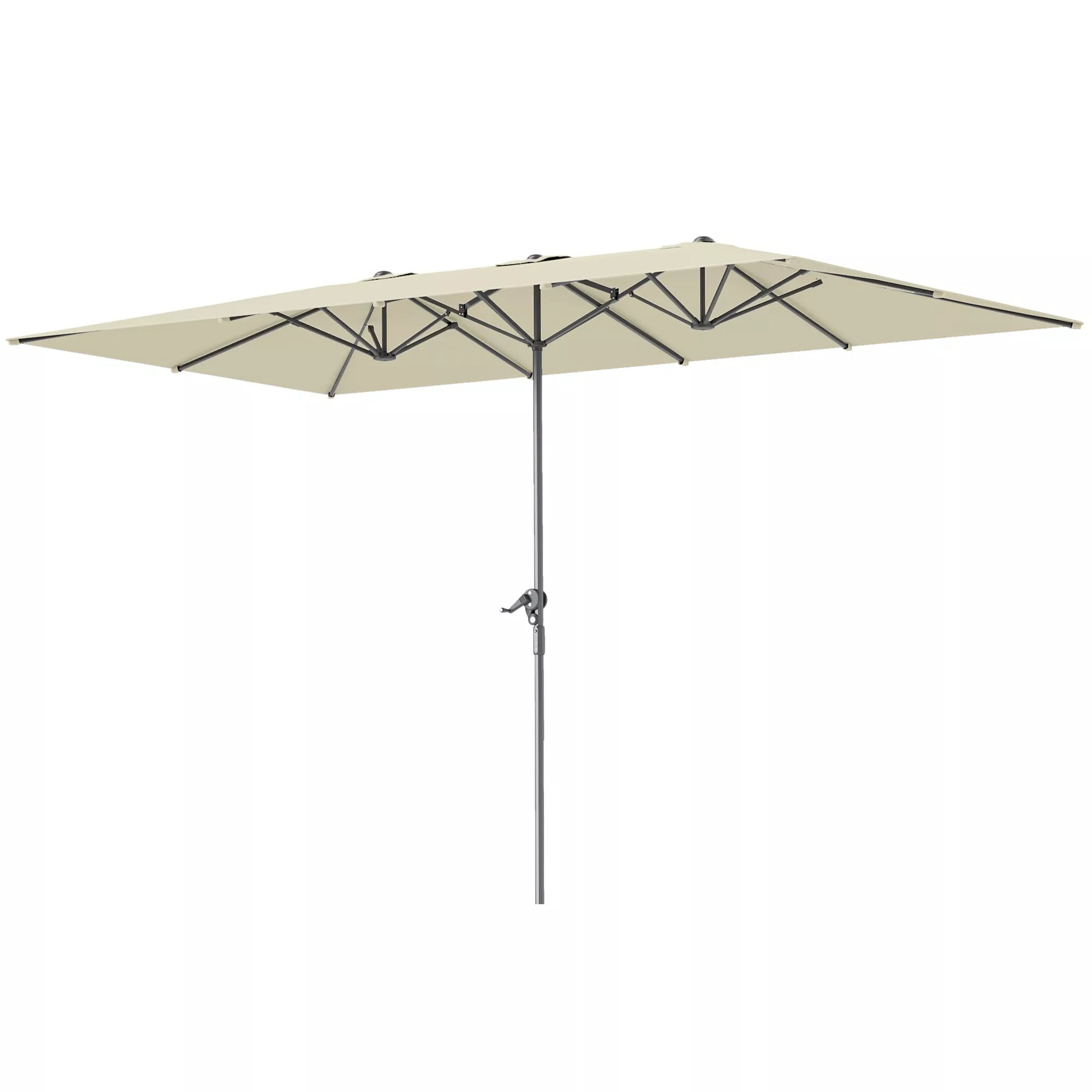 Dvipusis skėtis, 451 x 264 cm skėtis nuo saulės su kietimo sistema, 12 metalinių stipinų, aliuminio stiebas, kreminės baltos spalvos