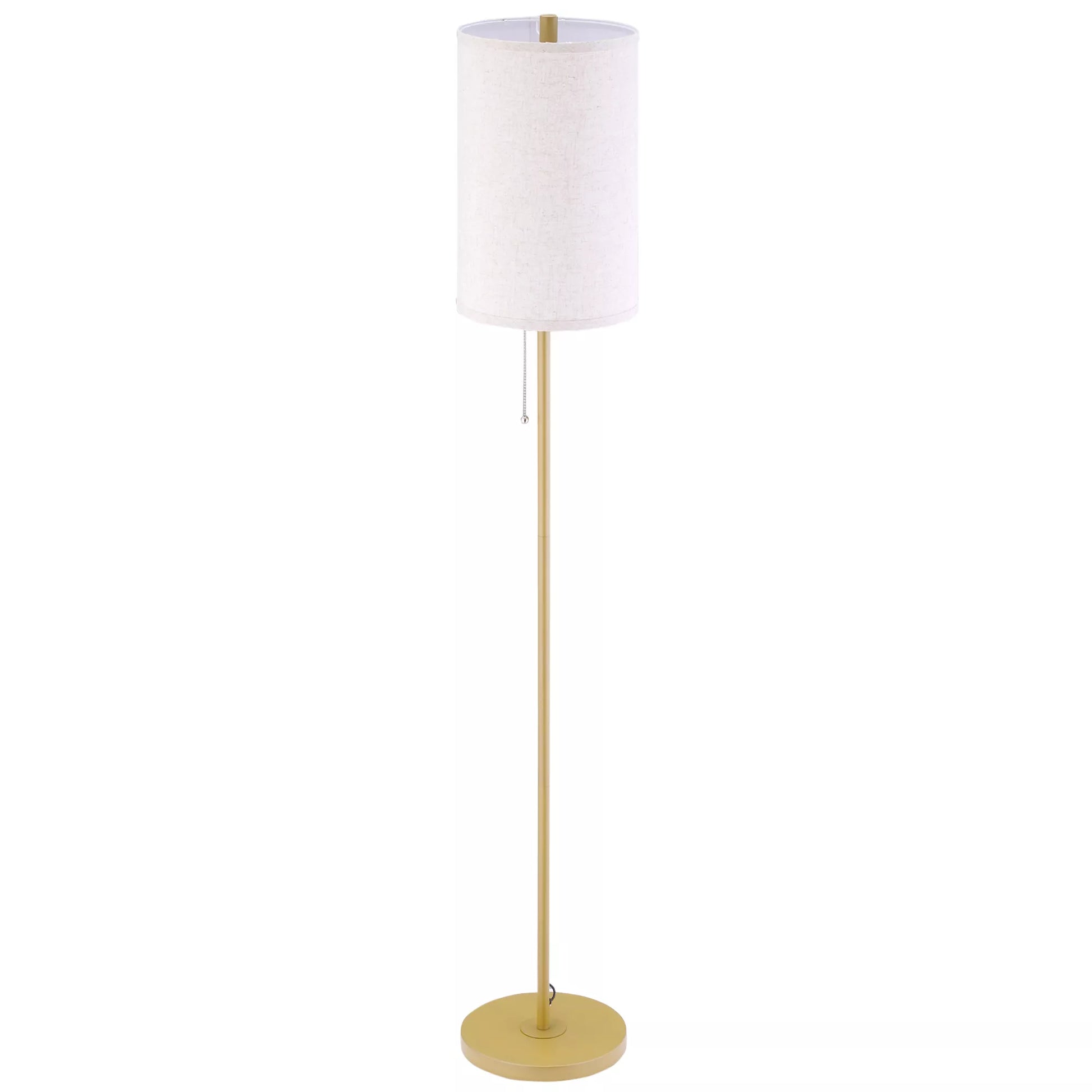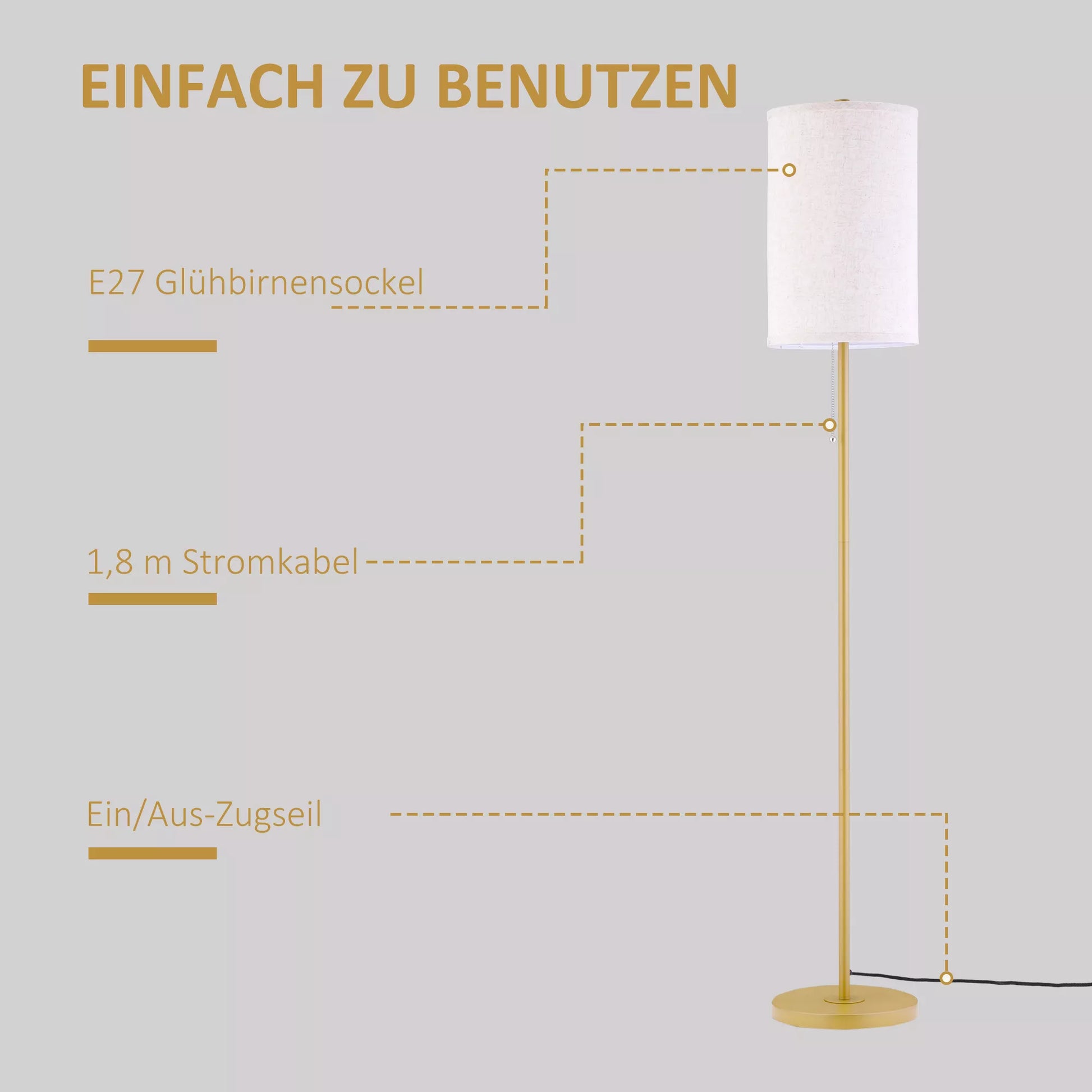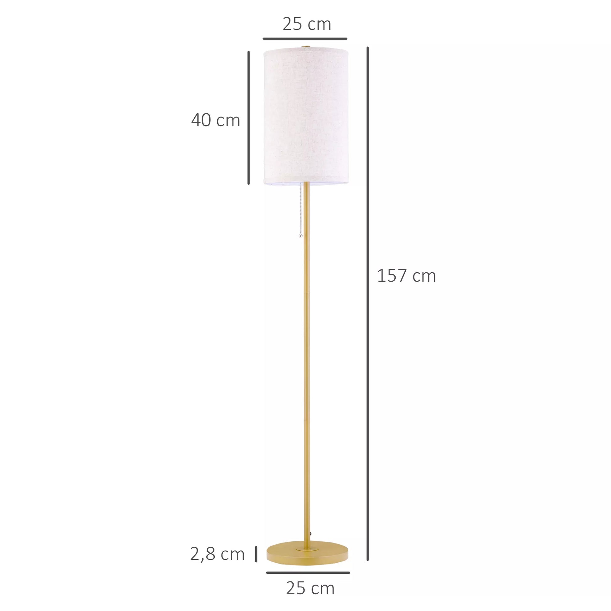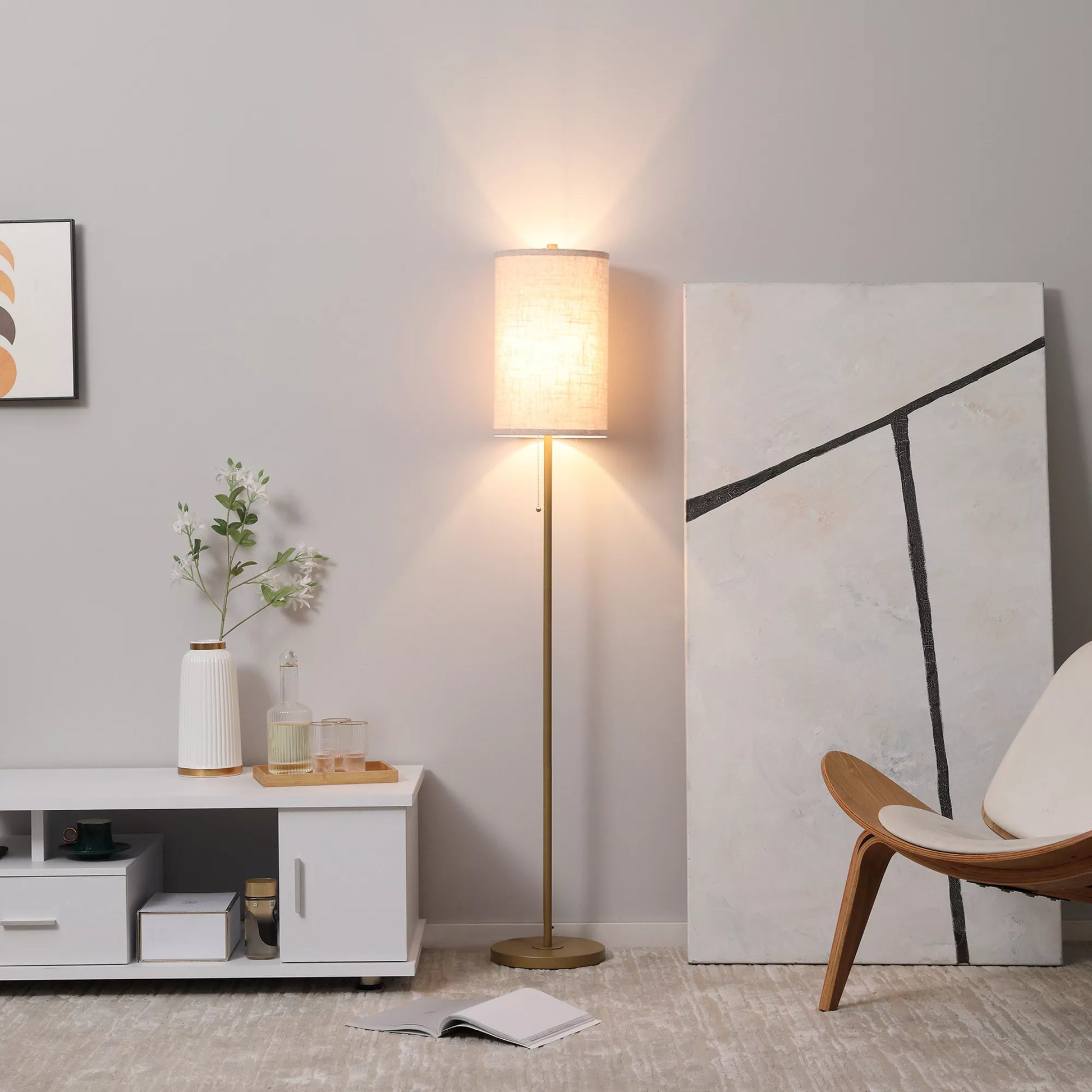 Elegantiškas pastatomas šviestuvas iš plieno su medžiaginiu gaubtu, svetainės šviestuvas, su traukimo grandinėlės jungikliu, Auksas+Baltas