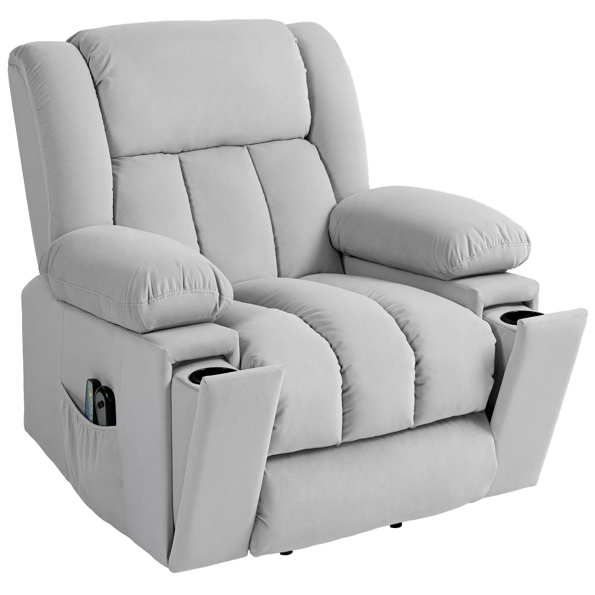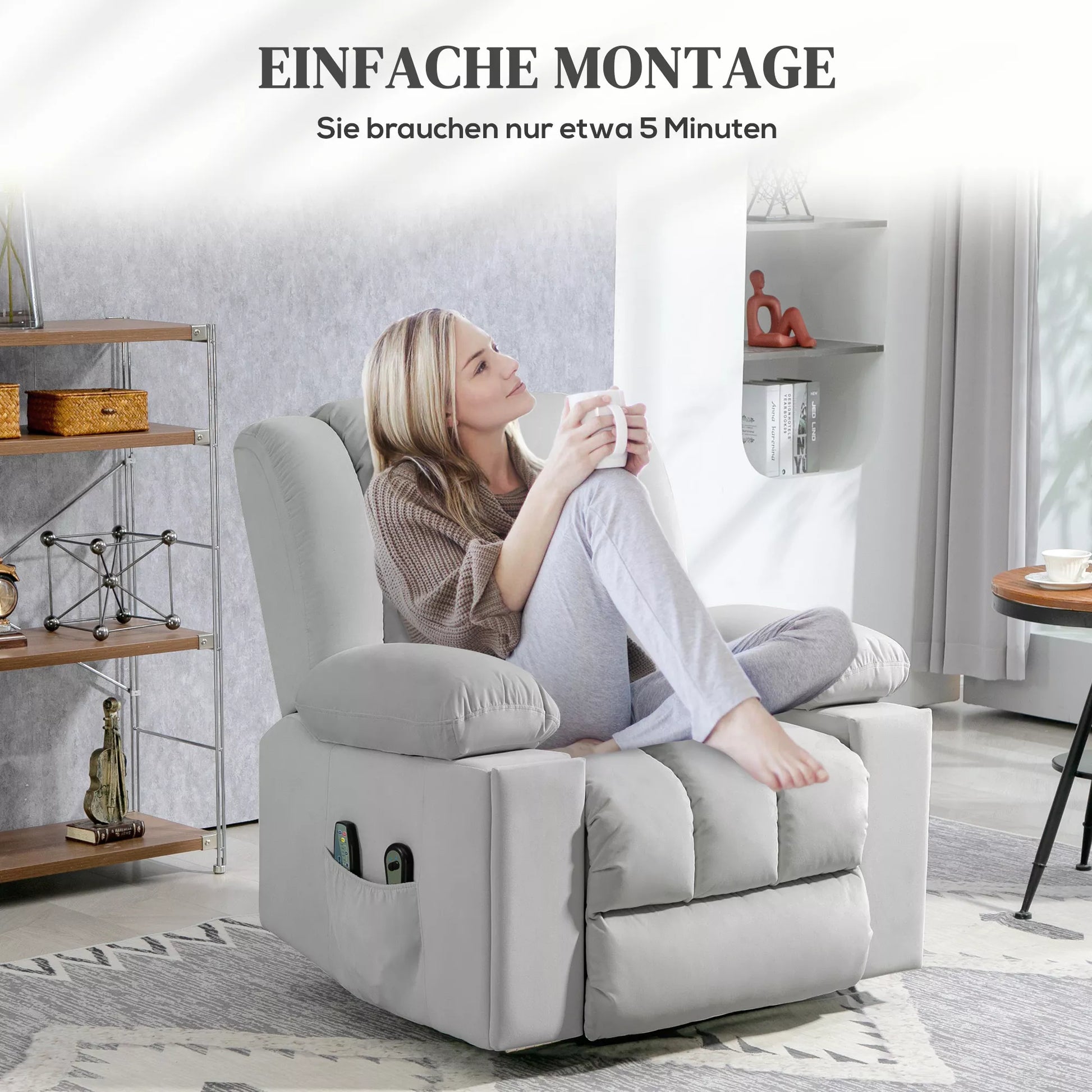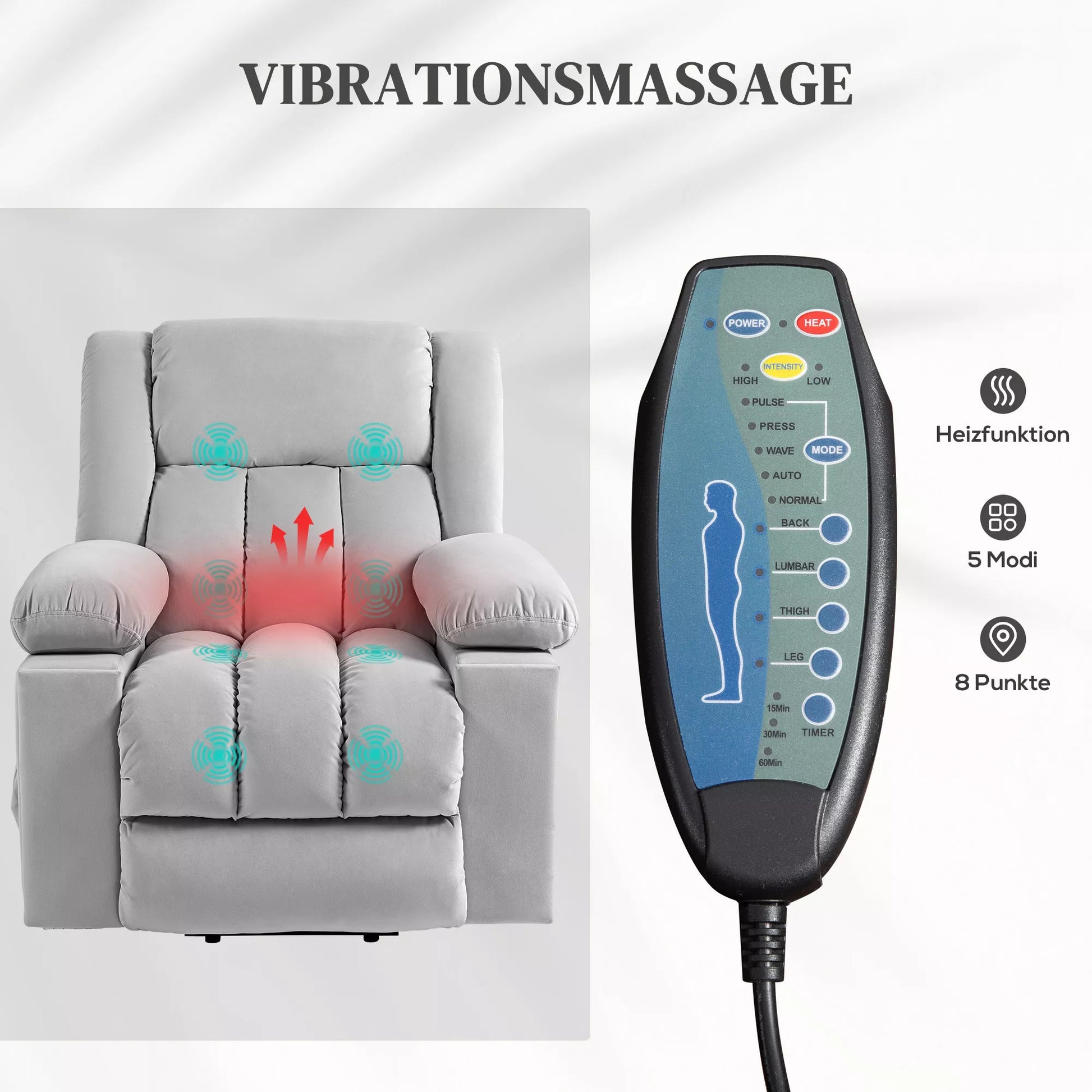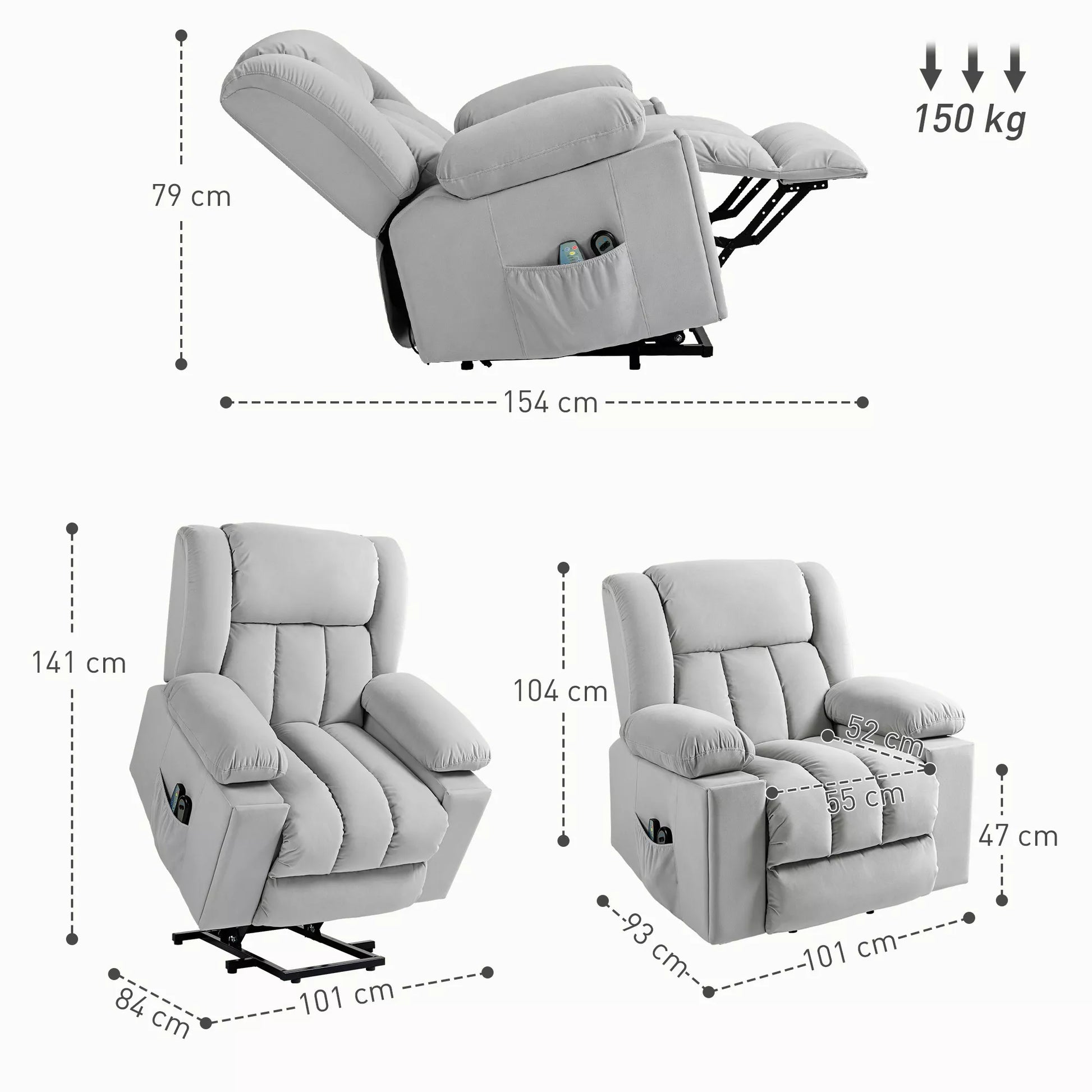 Patirkite poilsio fotelio su pakėlimo funkcija patogumą. Šis kino fotelis su 45° pakėlimo funkcija lengvam atsistojimui ir 135° laipsnių atlenkiama atlošo atrama optimaliam atsipalaidavimui, taip pat turi 8 vibracinio masažo taškus ir juosmens šildytuvą. Minkštas, aksominio audinio apmušalas užtikrina maksimalų komfortą jūsų namuose.
