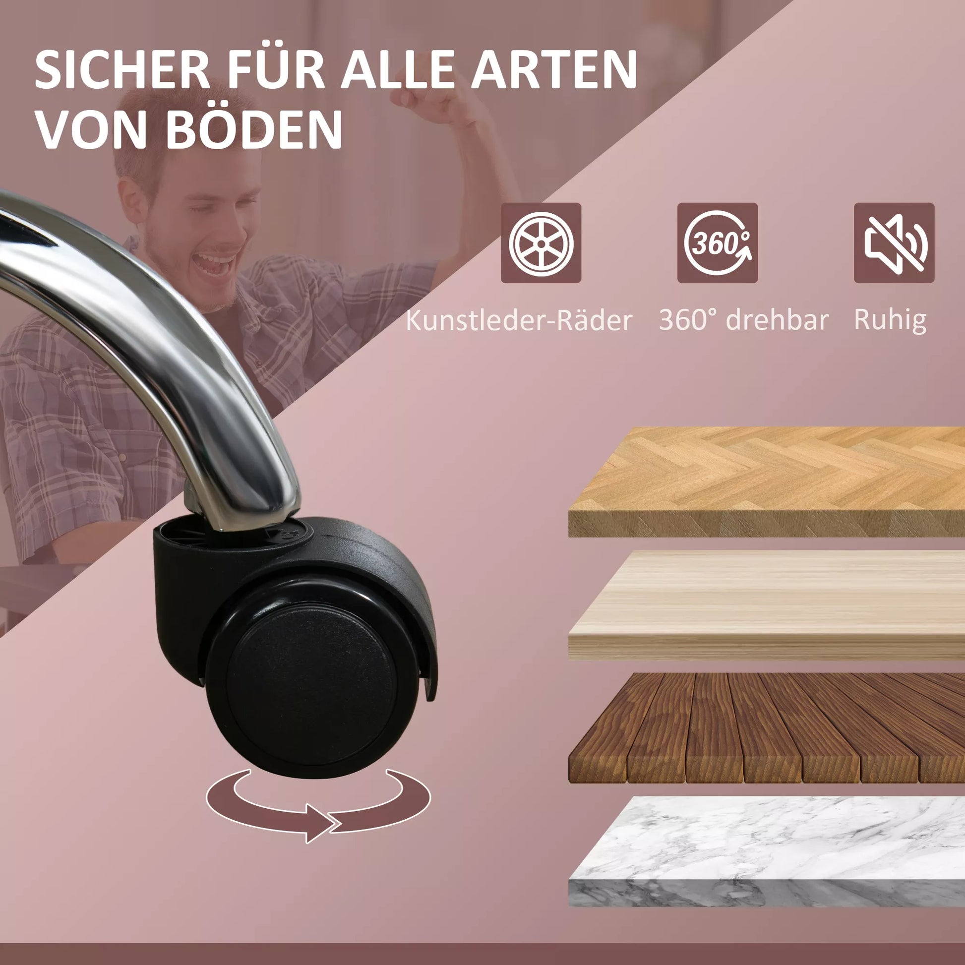 - ✔ Ratai su sintetine danga, tinkami visų tipų grindims, tokioms kaip kietmedžio, laminato, plytelių, skalūnų ir kt.