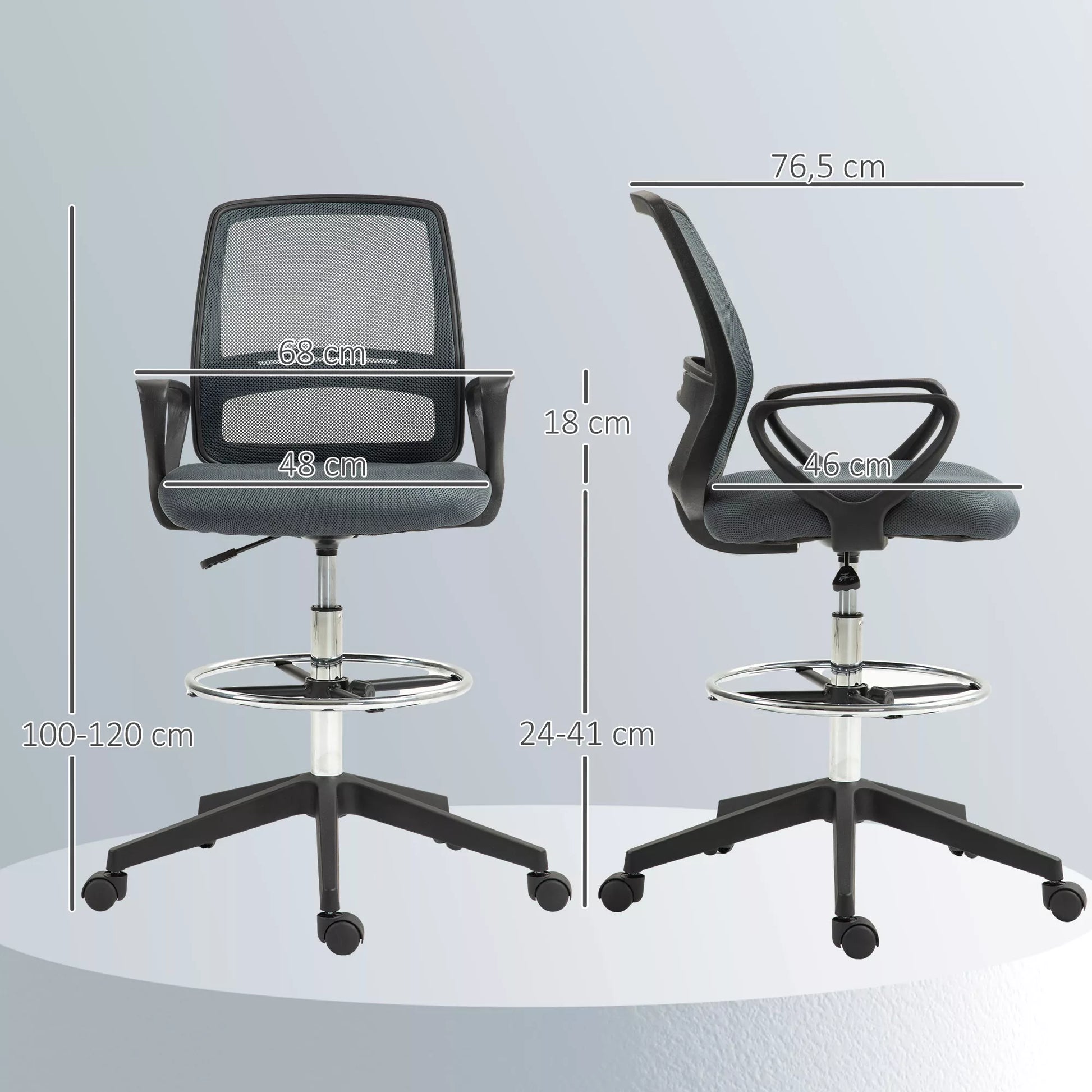 Ergonomiška biuro kėdė su porankiais, reguliuojamu pėdų laikikliu ir tinkliniu užvalkalu, pilka