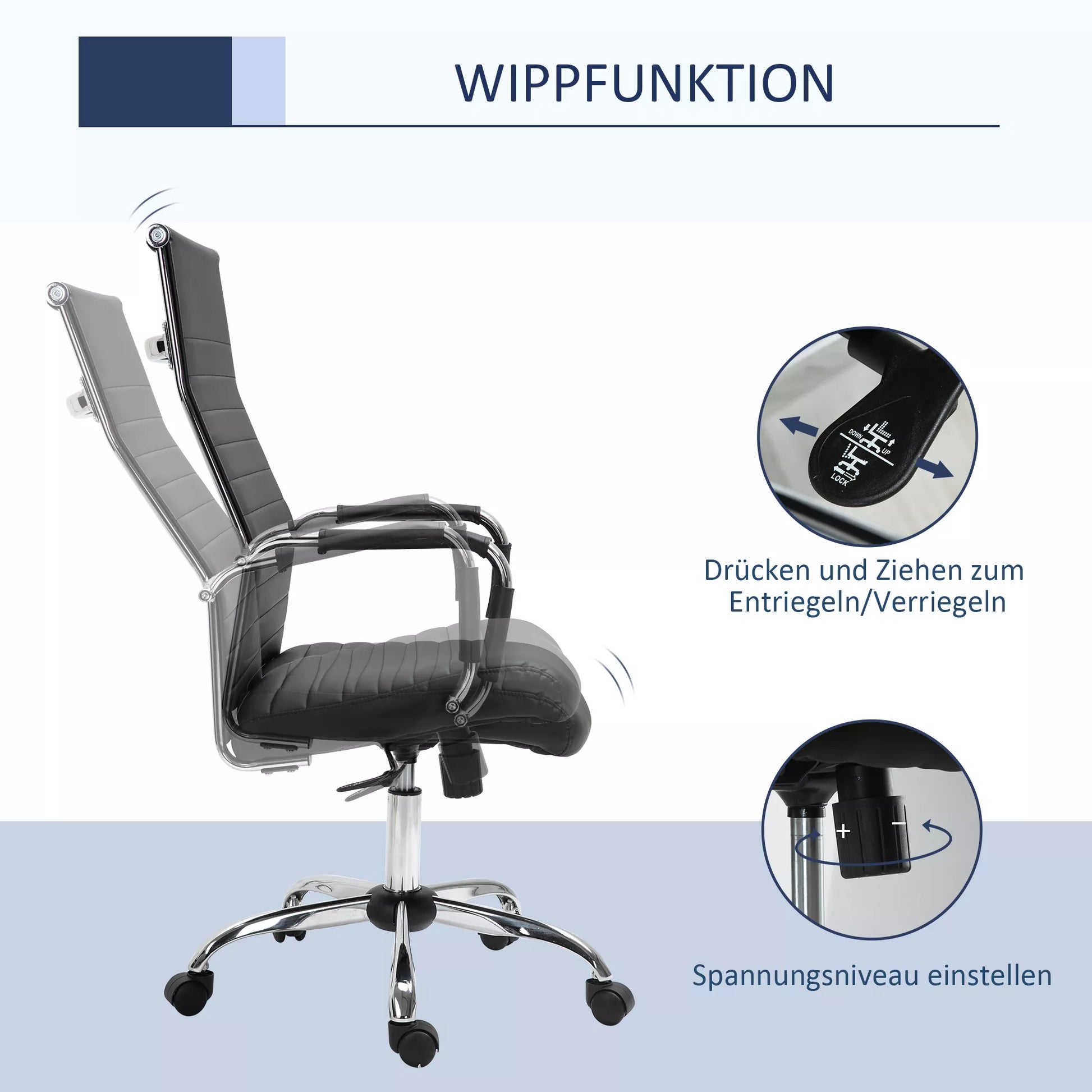 Ergonomiška biuro kėdė su svyravimo funkcija, aukščio reguliuojama vadovo pasukama kėdė, paminkštinta dirbtine oda ir putplasčiu, juoda, 54 x 62 x 104-114 cm