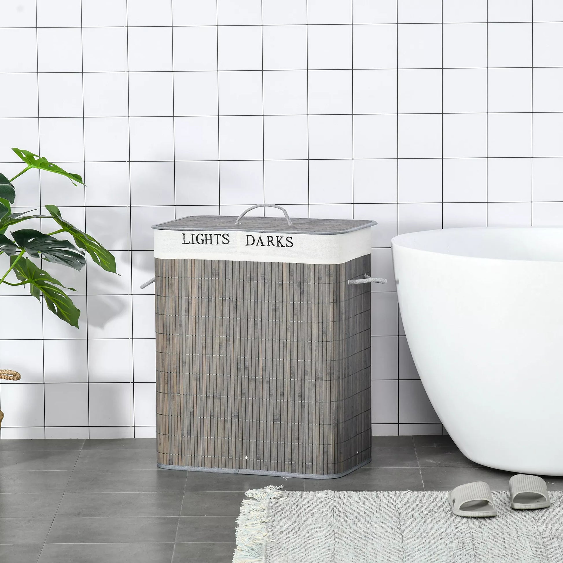 Šis bambukinis skalbinių krepšys yra idealus sprendimas bet kuriuose namuose. Pagamintas iš bambuko su vidiniu audinio pamušalu, kuris yra išimamas ir skalbiamas, palengvina organizavimą. Skalbinių rūšiavimo sistemos metalinis rėmas suteikia papildomo stabilumo kasdieniam naudojimui, o krepšys turi 2 atskirus skyrelius, kad jūsų skalbiniai būtų tvarkingai ir patogiai sudėti.