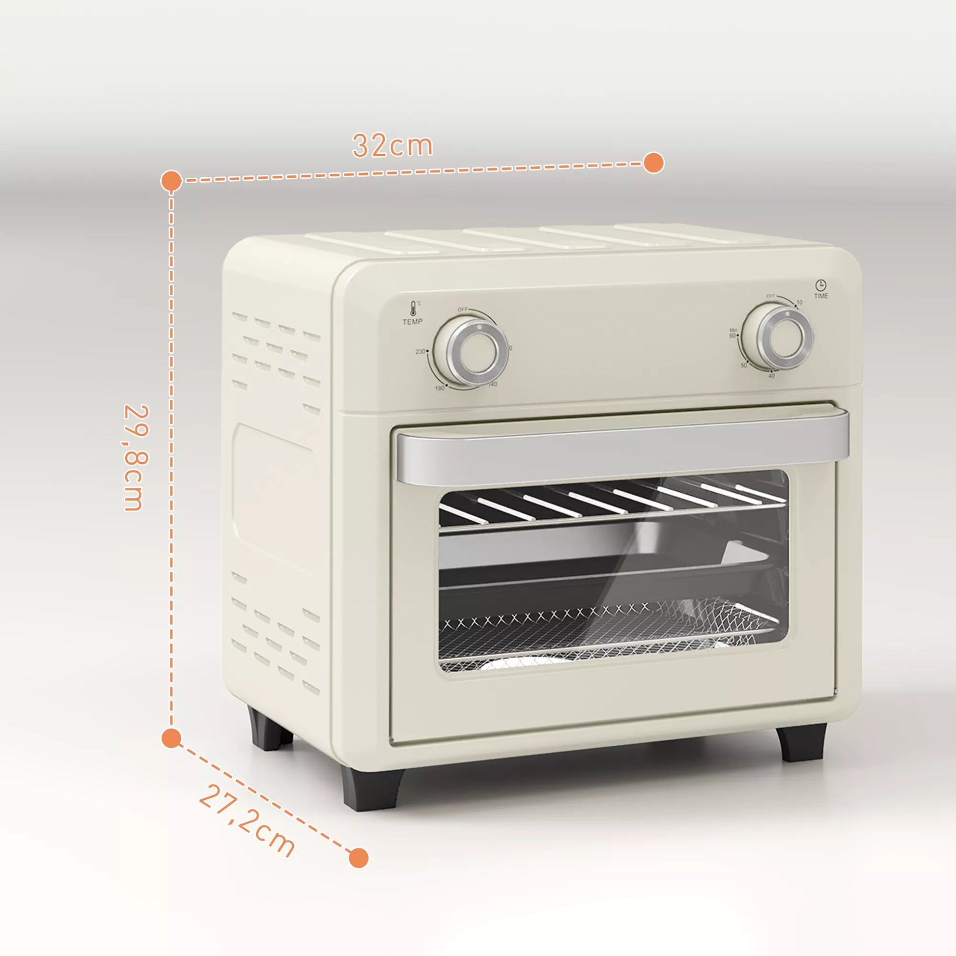 10 l karšto oro orkaitė kepimui, kepimui ir gruzdinimui, laikmatis, 1000 W, galima plauti indaplovėje, kreminė balta spalva