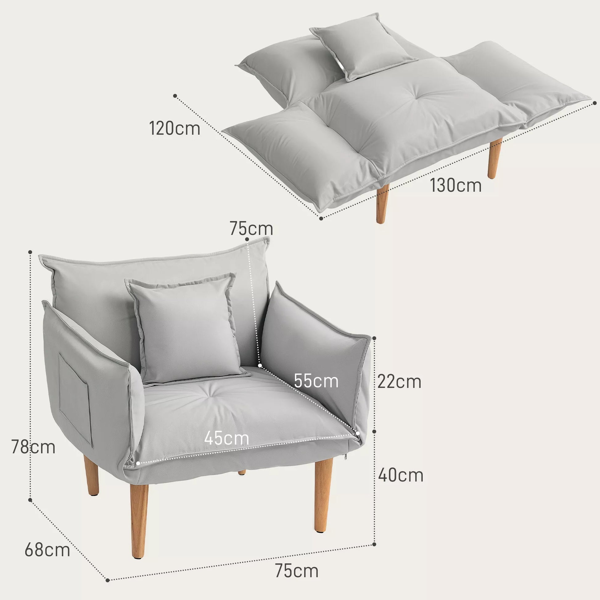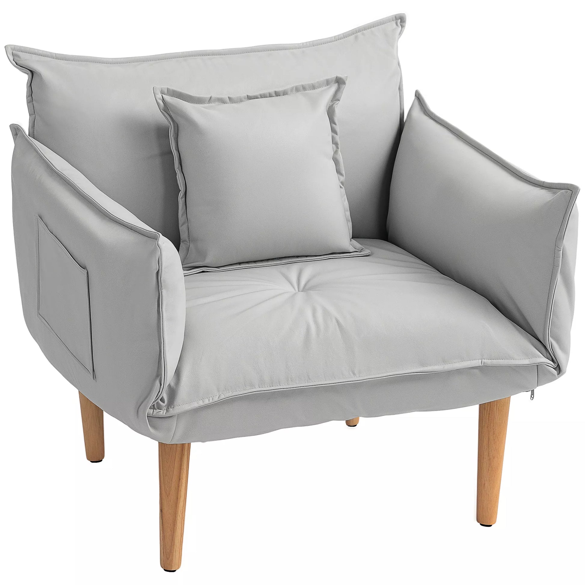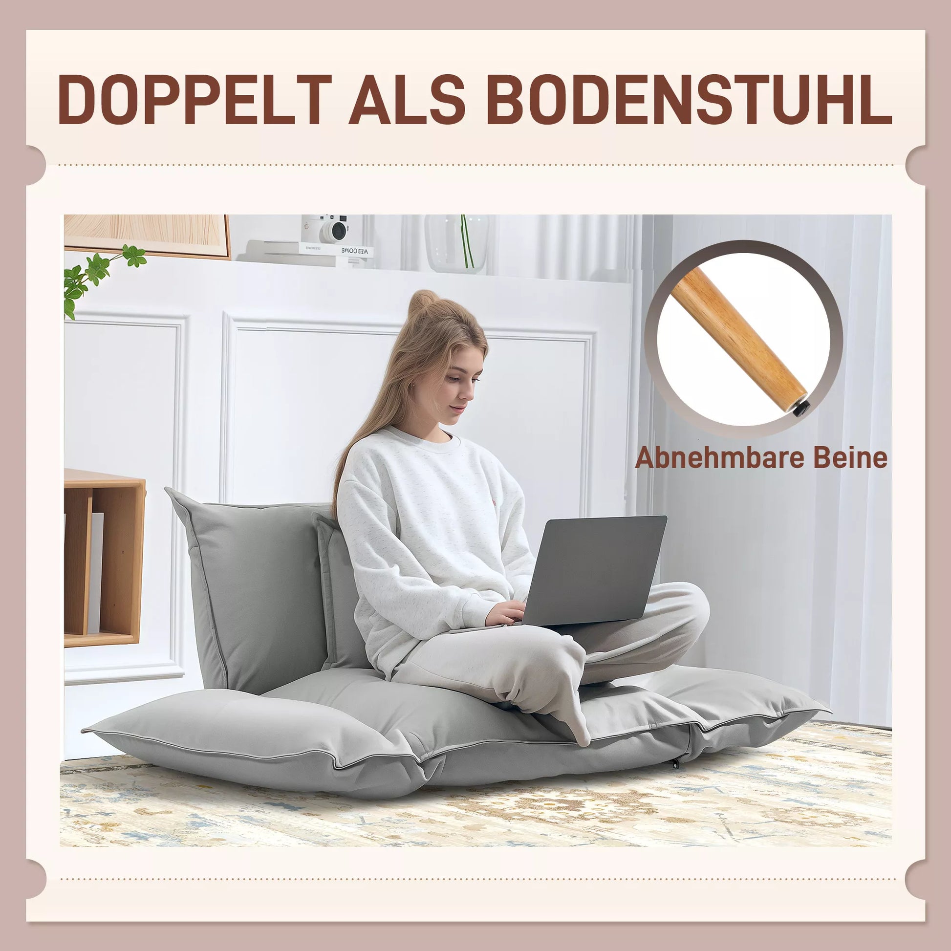 2-in-1 Reguliuojamas laisvalaikio krėslas, sėdynė ant grindų su pagalvele, minkštas fotelis, svetainei, miegamajam, šviesiai pilkas