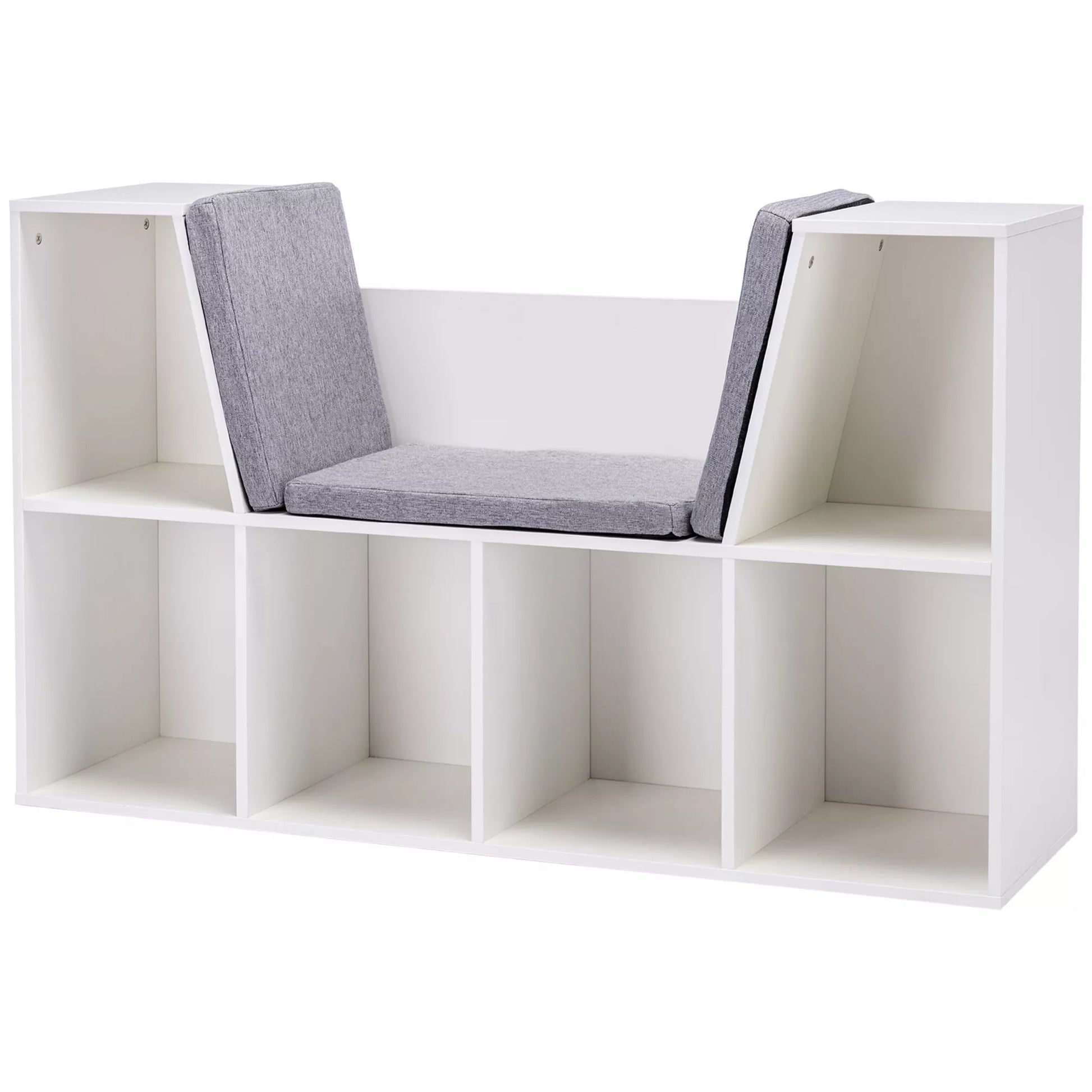 2-in-1 vaikų lentynos lentynos + suoliukas su pagalvėlėmis 103 cm × 30 cm × 62 cm Balta + Pilka