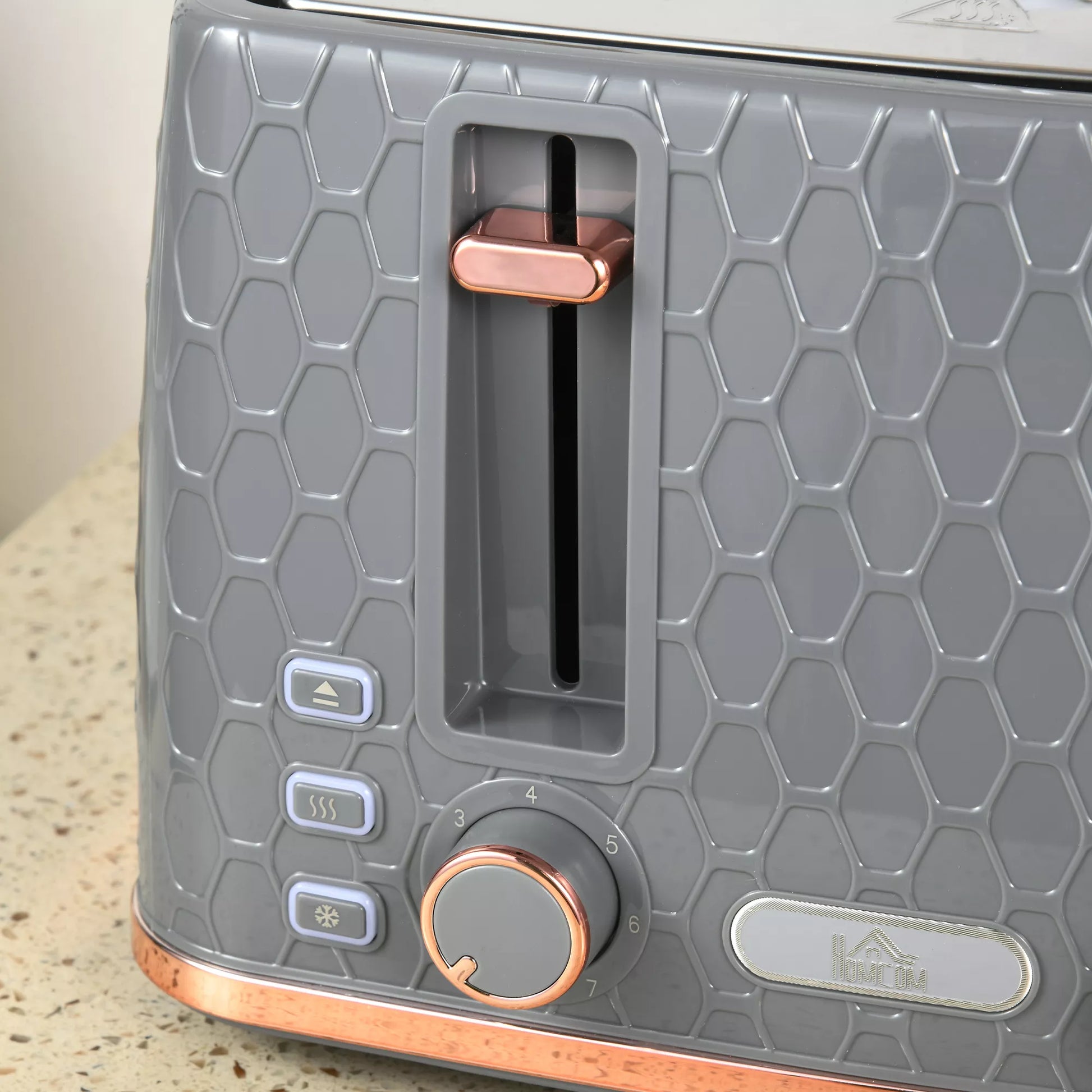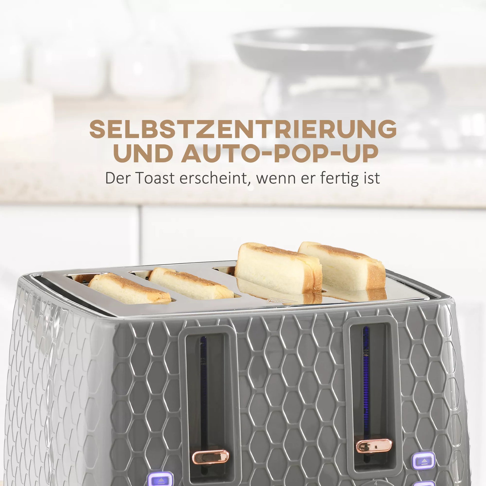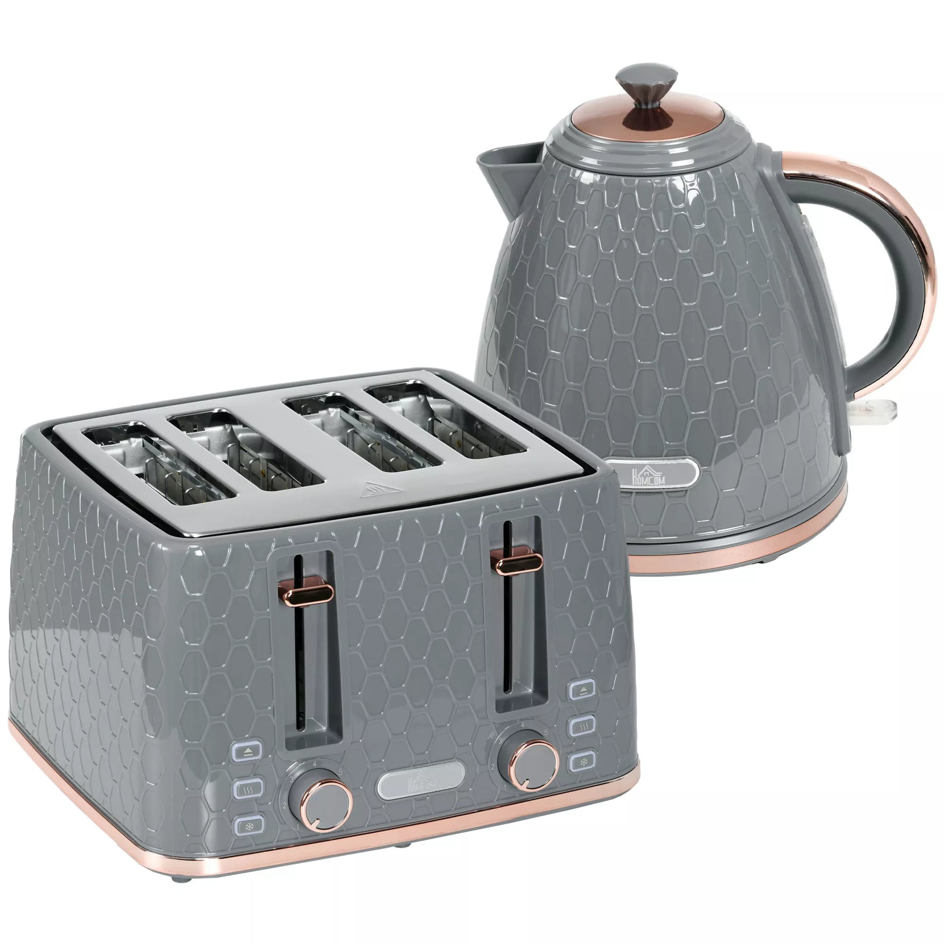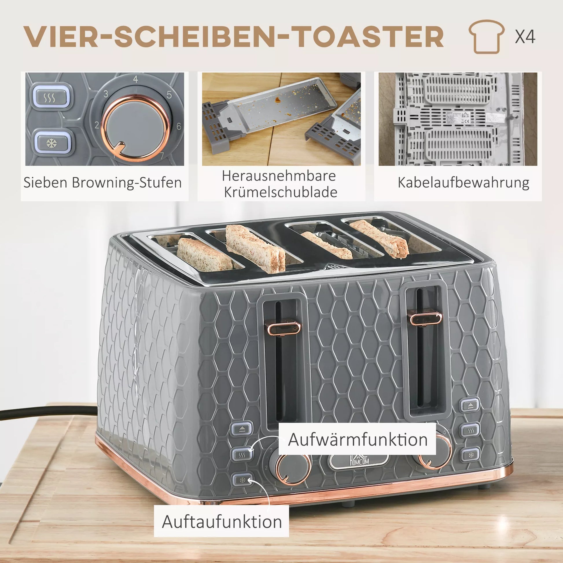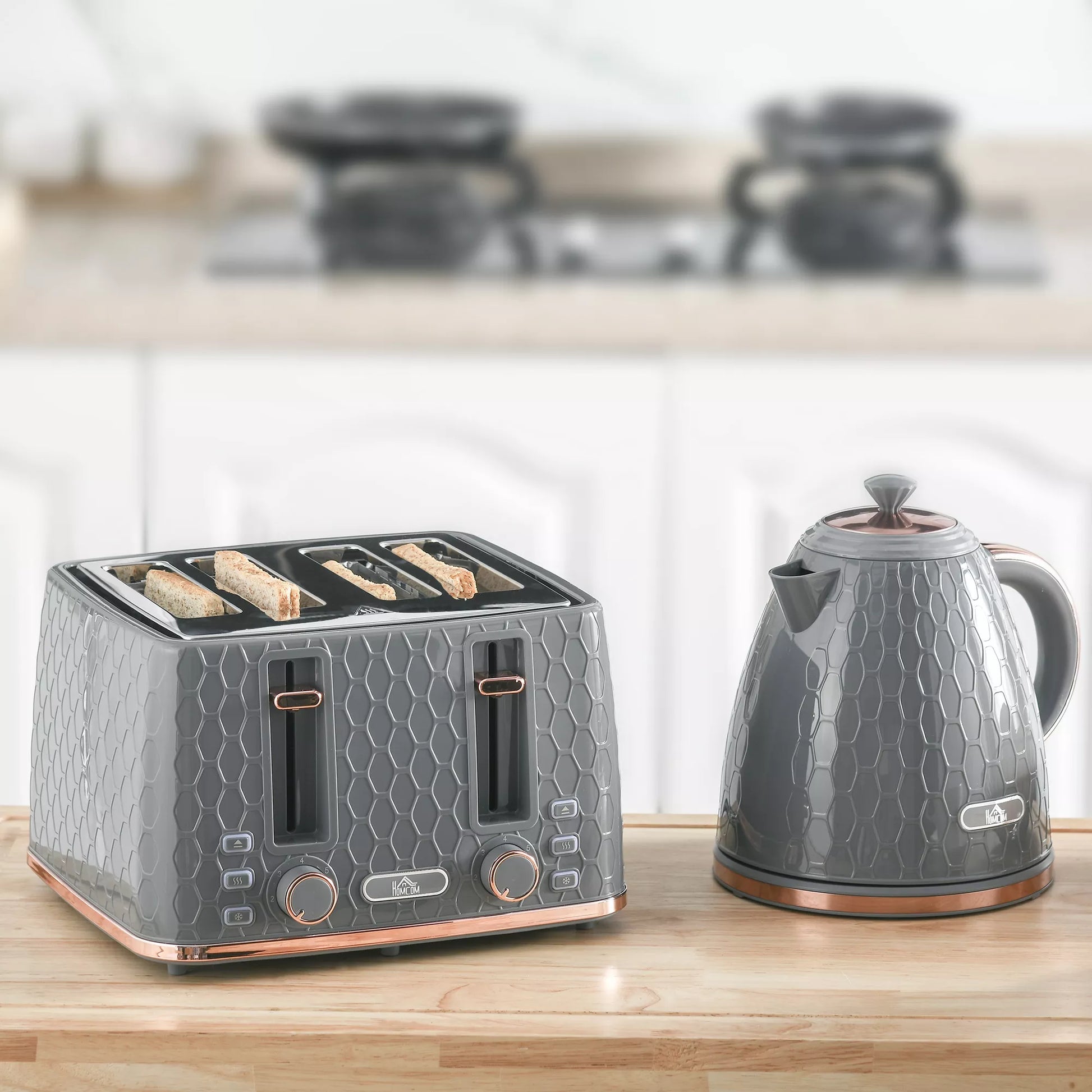 2-in-1 virtuvės rinkinys, skrudintuvas ir virdulys, kelios funkcijos, 1,7 L, vienu metu 4 skrudintos duonos riekelės, plastikas, pilkos spalvos