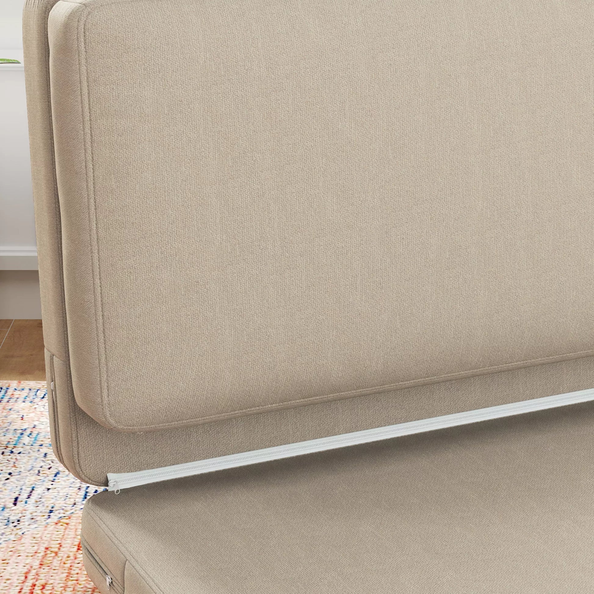 2-in-1 sulankstomas relaksacinis krėslas, svečio čiužinys, dalomas, 120 cm pločio, smėlio spalvos