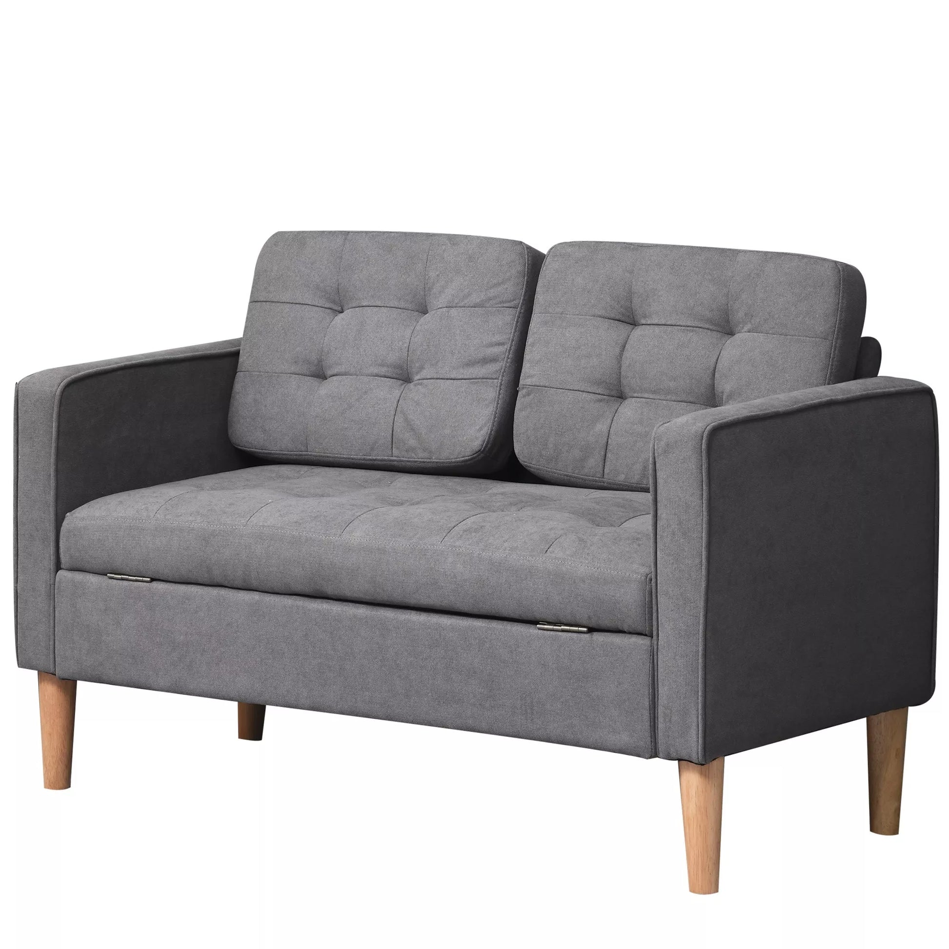 2 vietų sofa, "Couch" su daiktadėže, medinės kojelės, minkšta sofa su velvetine išvaizda svetainei, miegamajam, 117x 62 x 78 cm, pilka
