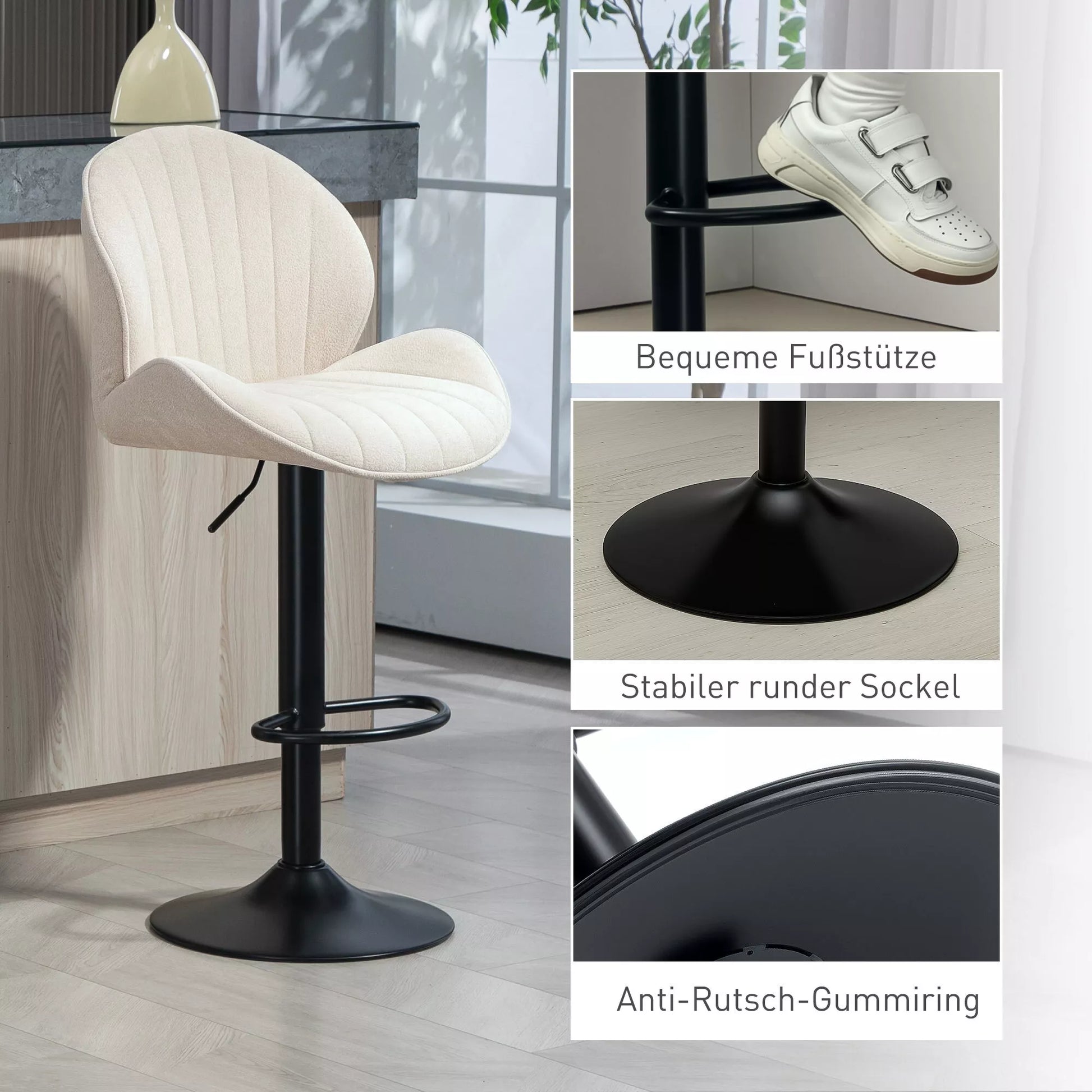 2 vnt. baro kėdžių komplektas, audinio apmušalas, reguliuojamas sėdynės aukštis, sukamasis mechanizmas, plieno rėmas, smėlio spalvos