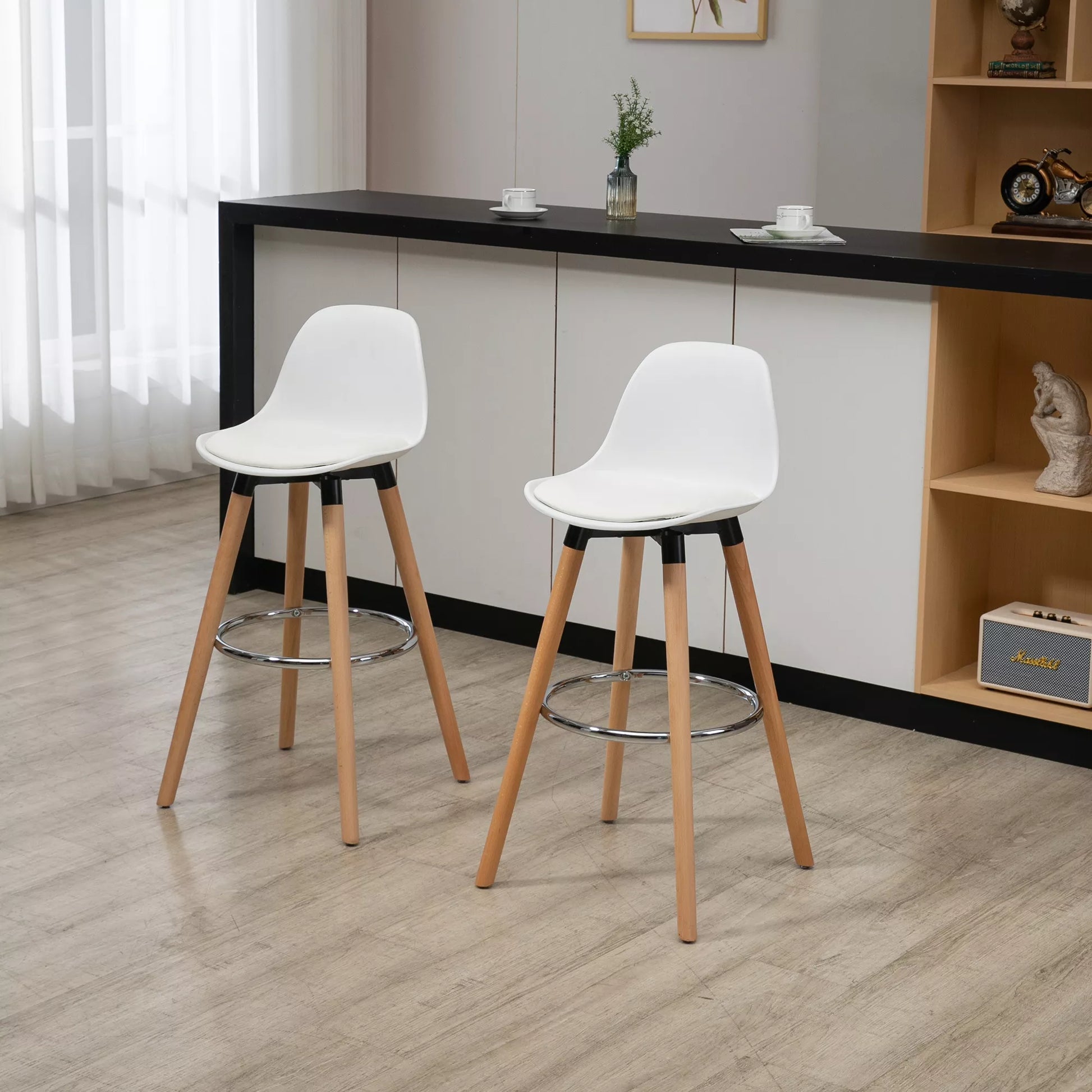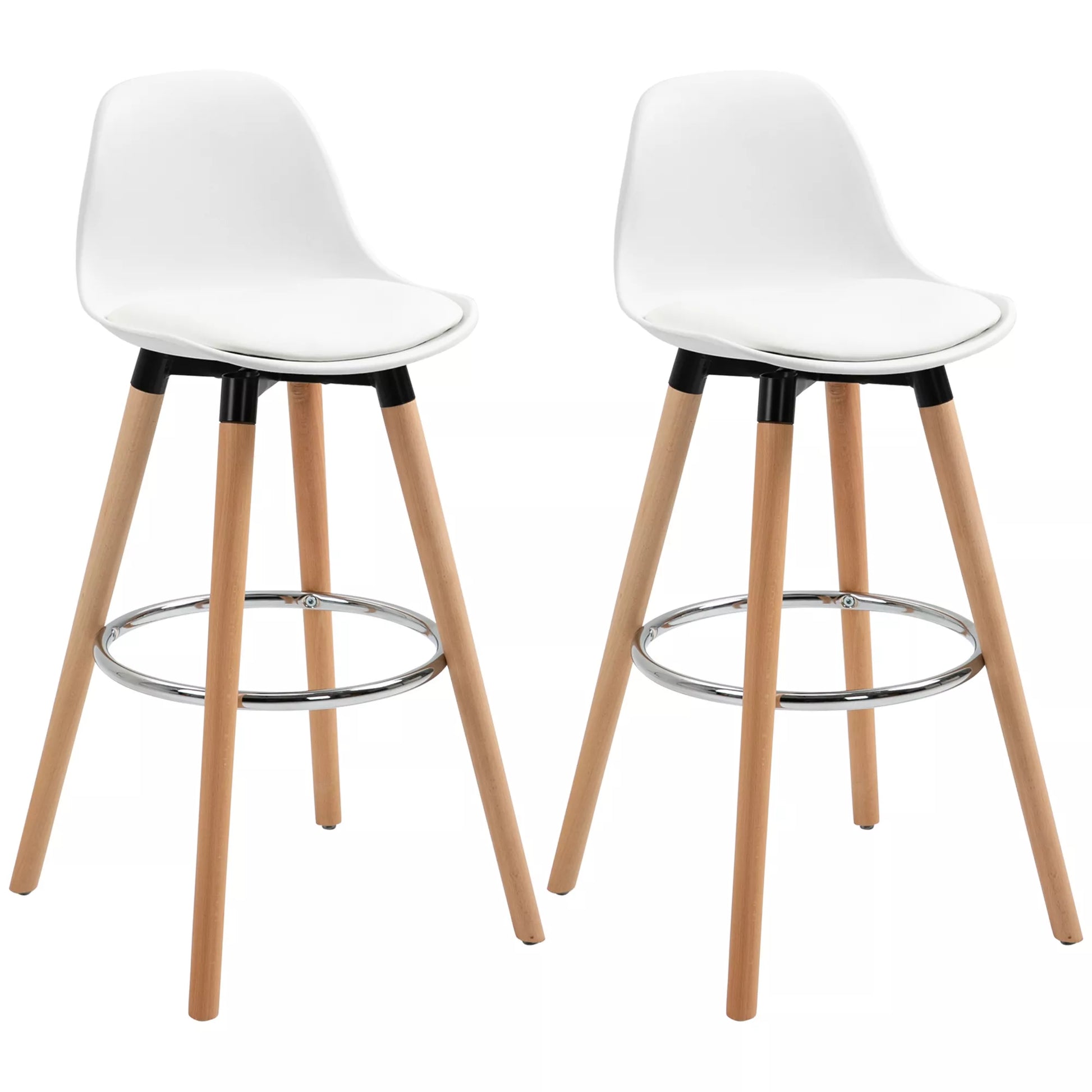 HOMCOM 2 vnt. baro kėdžių komplektas, Skandinaviško dizaino, su atrama kojoms, 38,5 cm x 42,5 cm x 91 cm, Natūrali + Balta