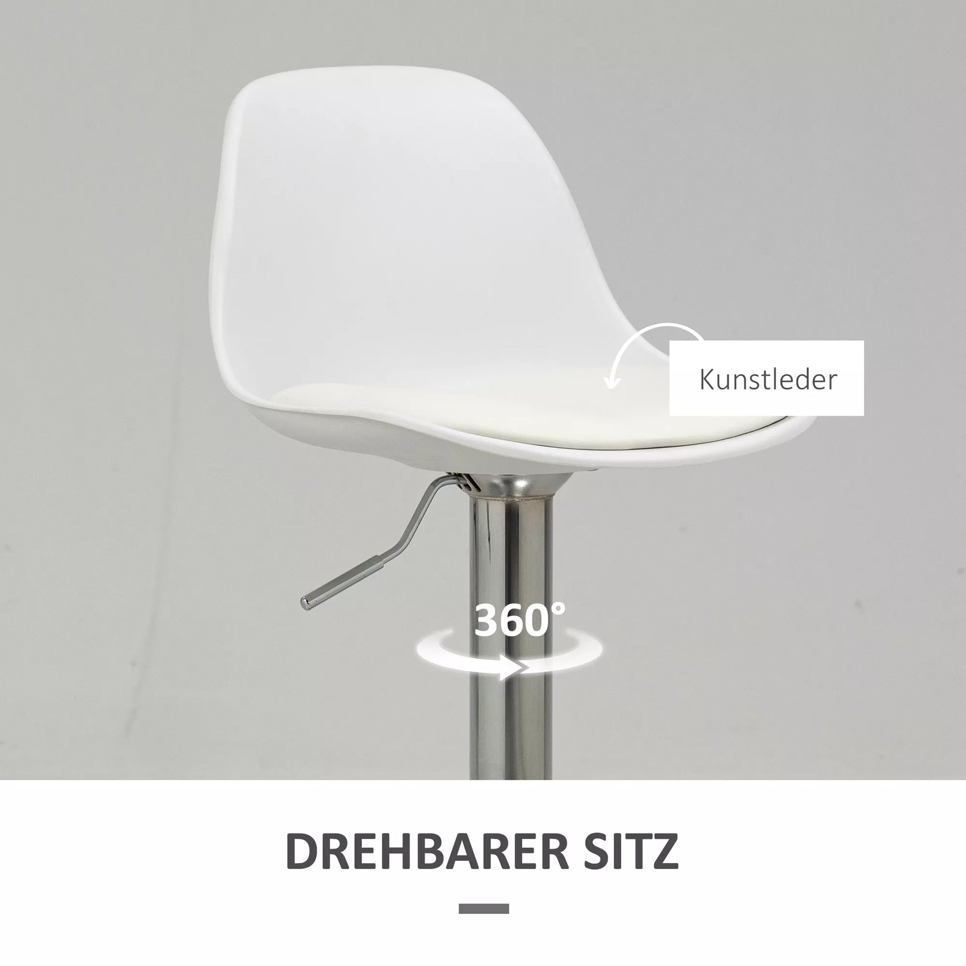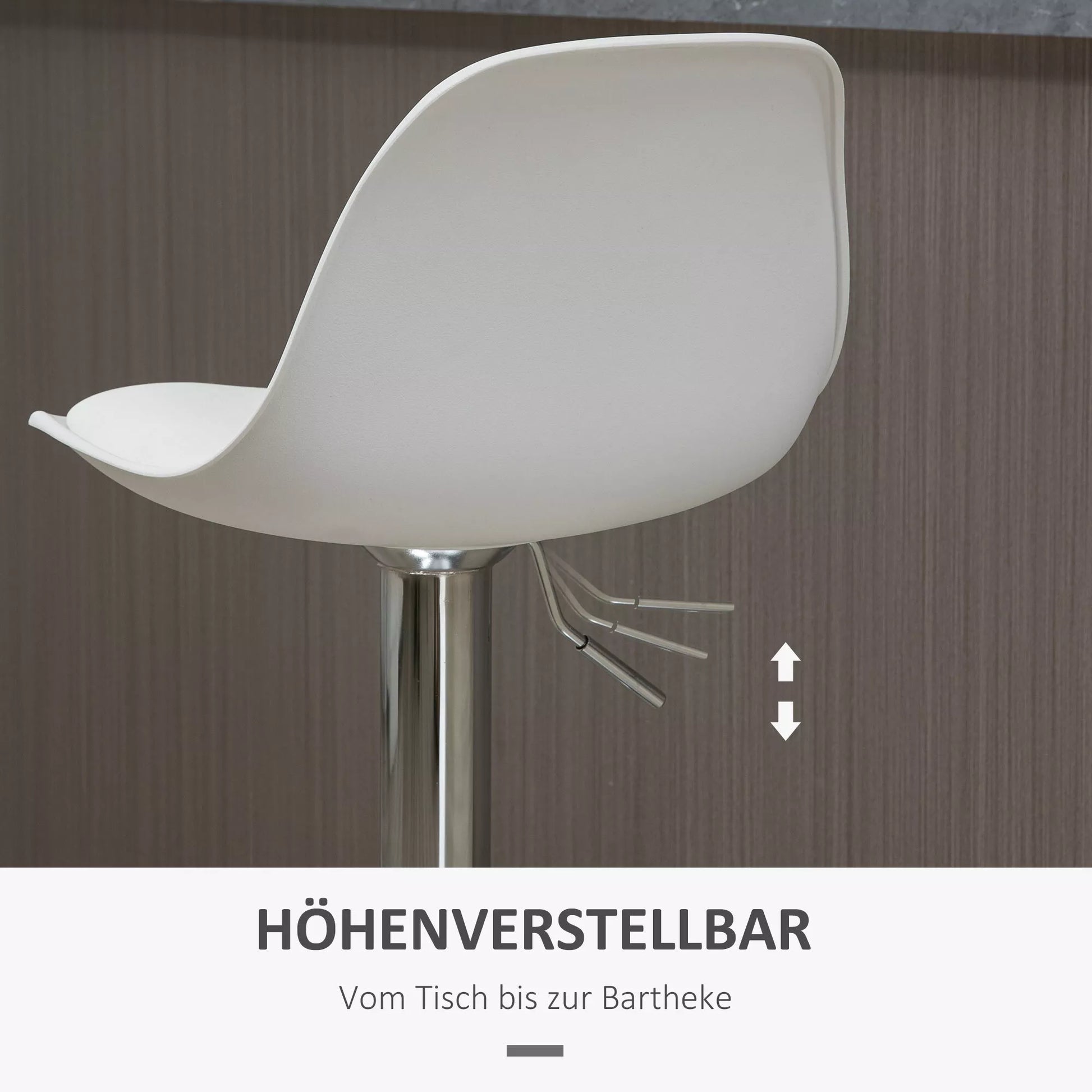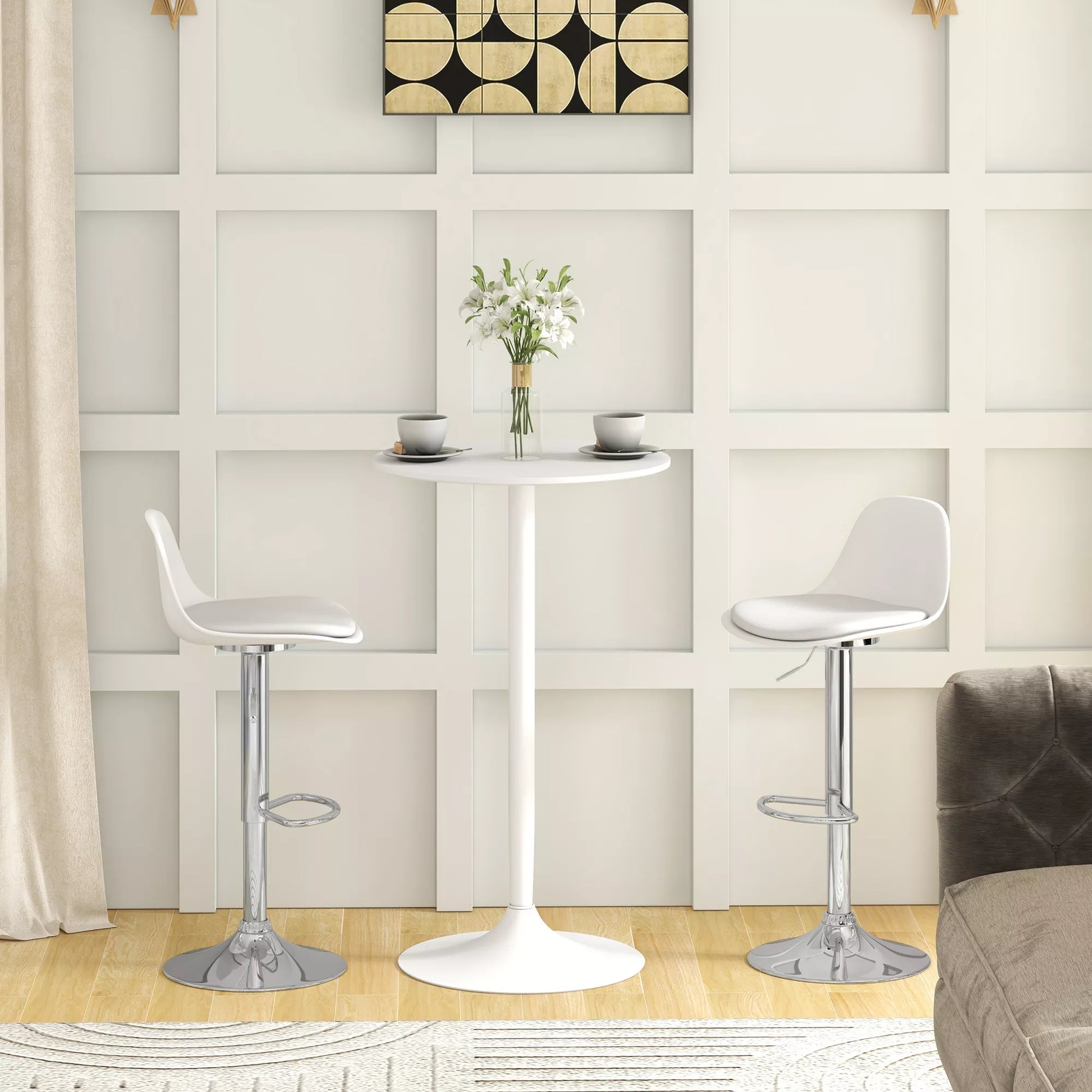 HOMCOM 2 vnt. baro kėdžių komplektas, sukamasis, su atlošu, reguliuojamo aukščio, atlaiko iki 120 kg, 38 x 42 x 82-104 cm, balta