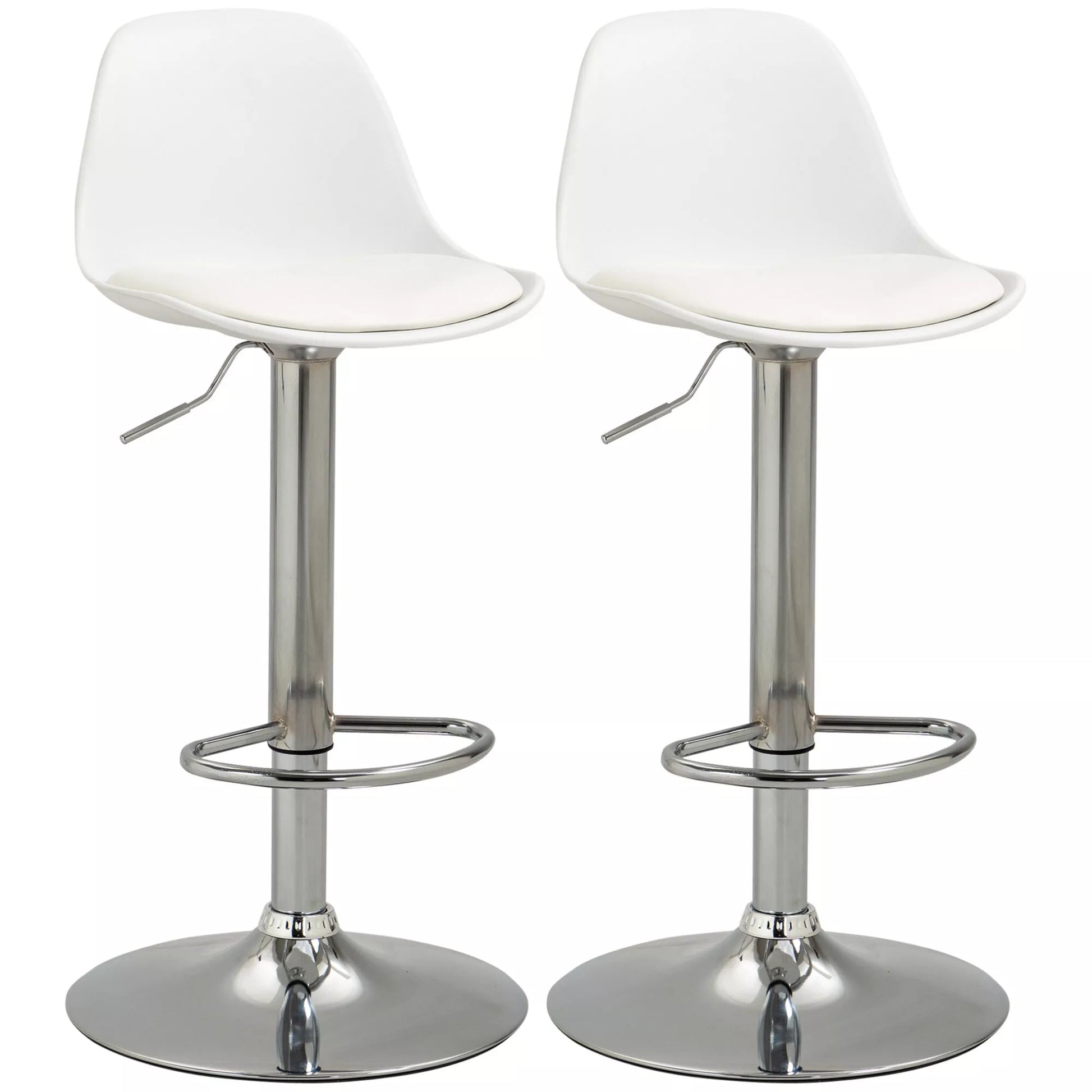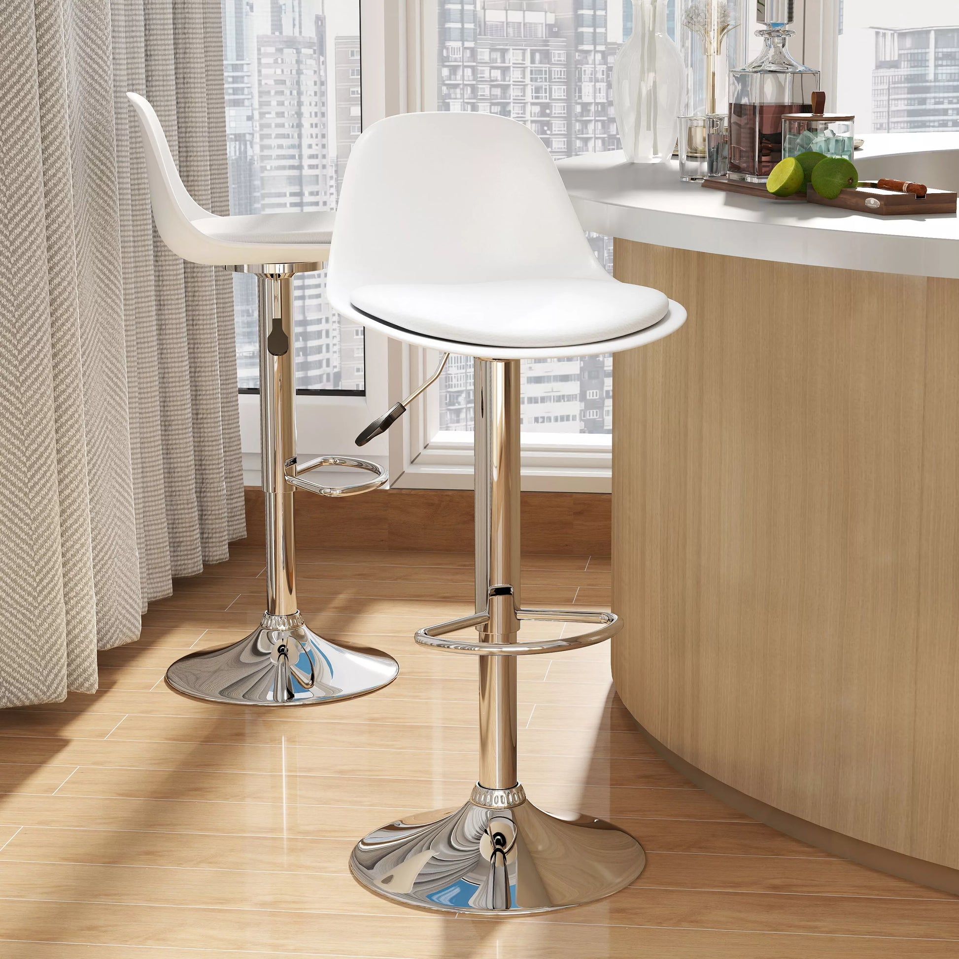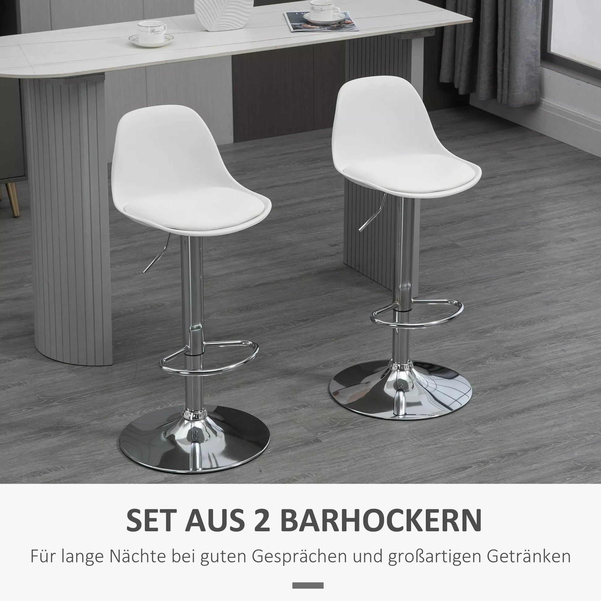 HOMCOM 2 vnt. baro kėdžių komplektas, sukamasis, su atlošu, reguliuojamo aukščio, atlaiko iki 120 kg, 38 x 42 x 82-104 cm, balta