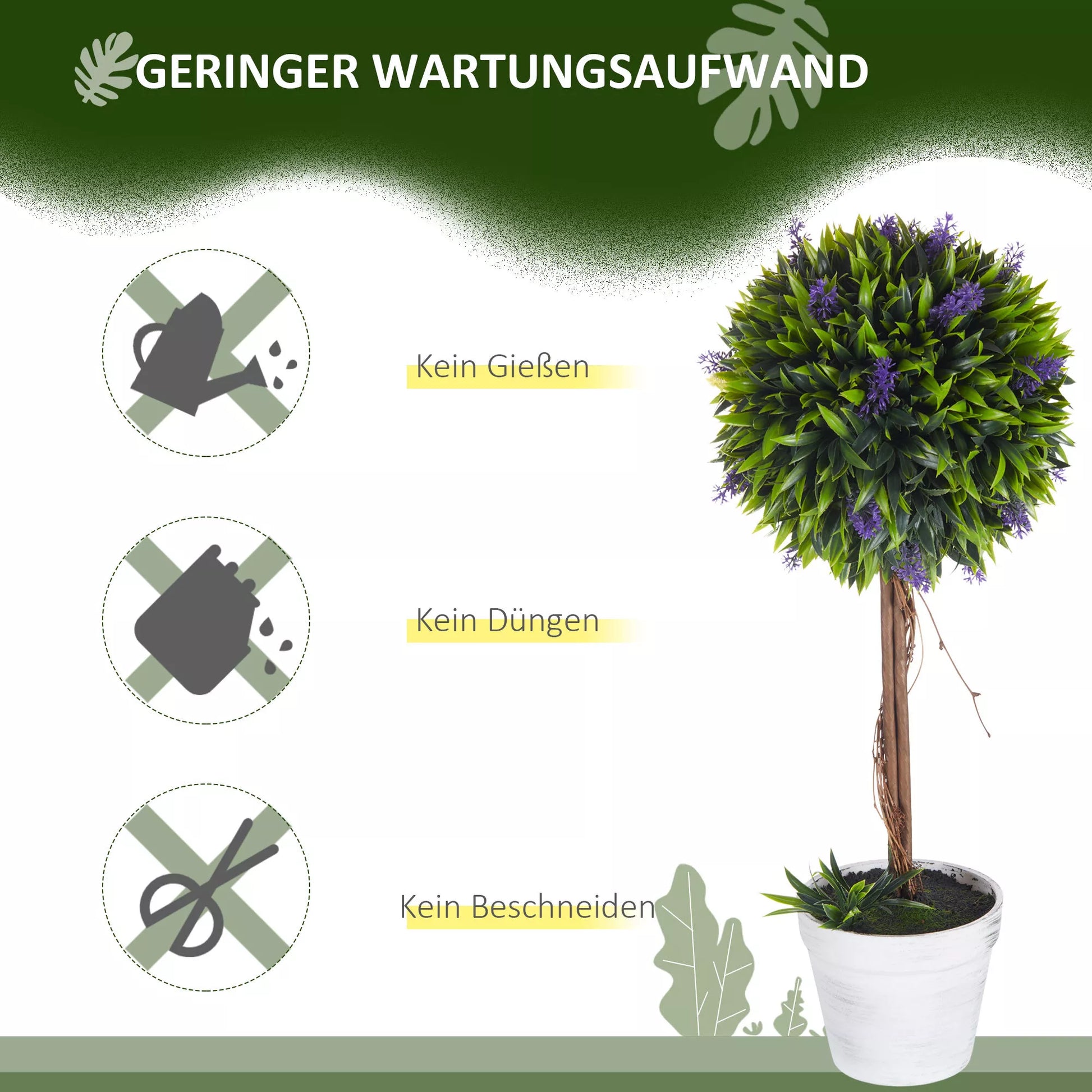 Suteikite savo namams elegancijos su mūsų meniškomis, tikroviškomis levandų medeliais! Idealiai tinka tiems, kurie neturi žaliojo piršto, šie lengvai prižiūrimi dirbtiniai augalai siūlo daugelio metų grožį be laistymo, tręšimo ar persodinimo. Realistiškai suformuoti lapai sukuria jaukią atmosferą bet kuriame kambaryje. Jau su vazonu ir paruošti naudoti, jie puikiai dera prie bet kokio interjero – tiek lauke, tiek viduje.