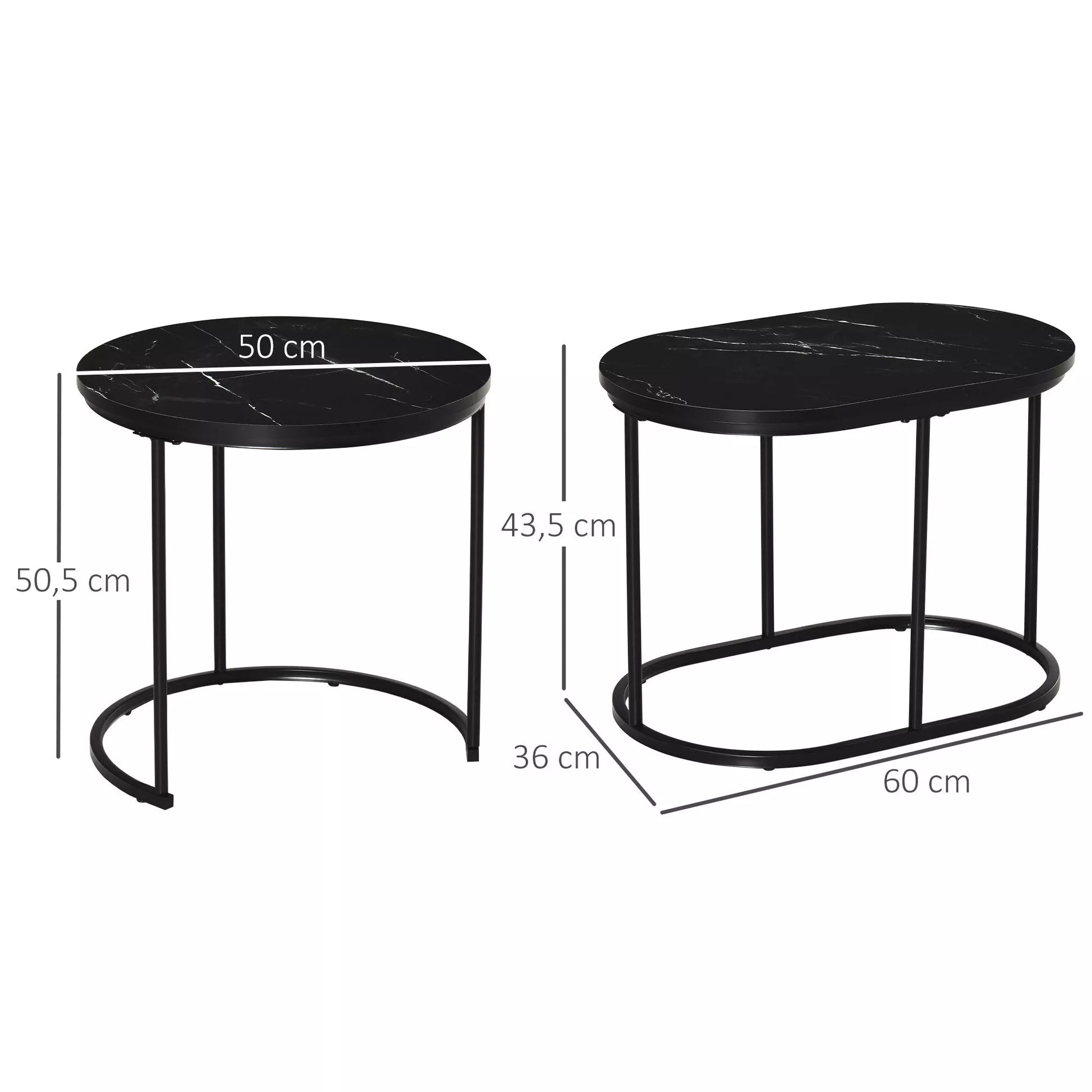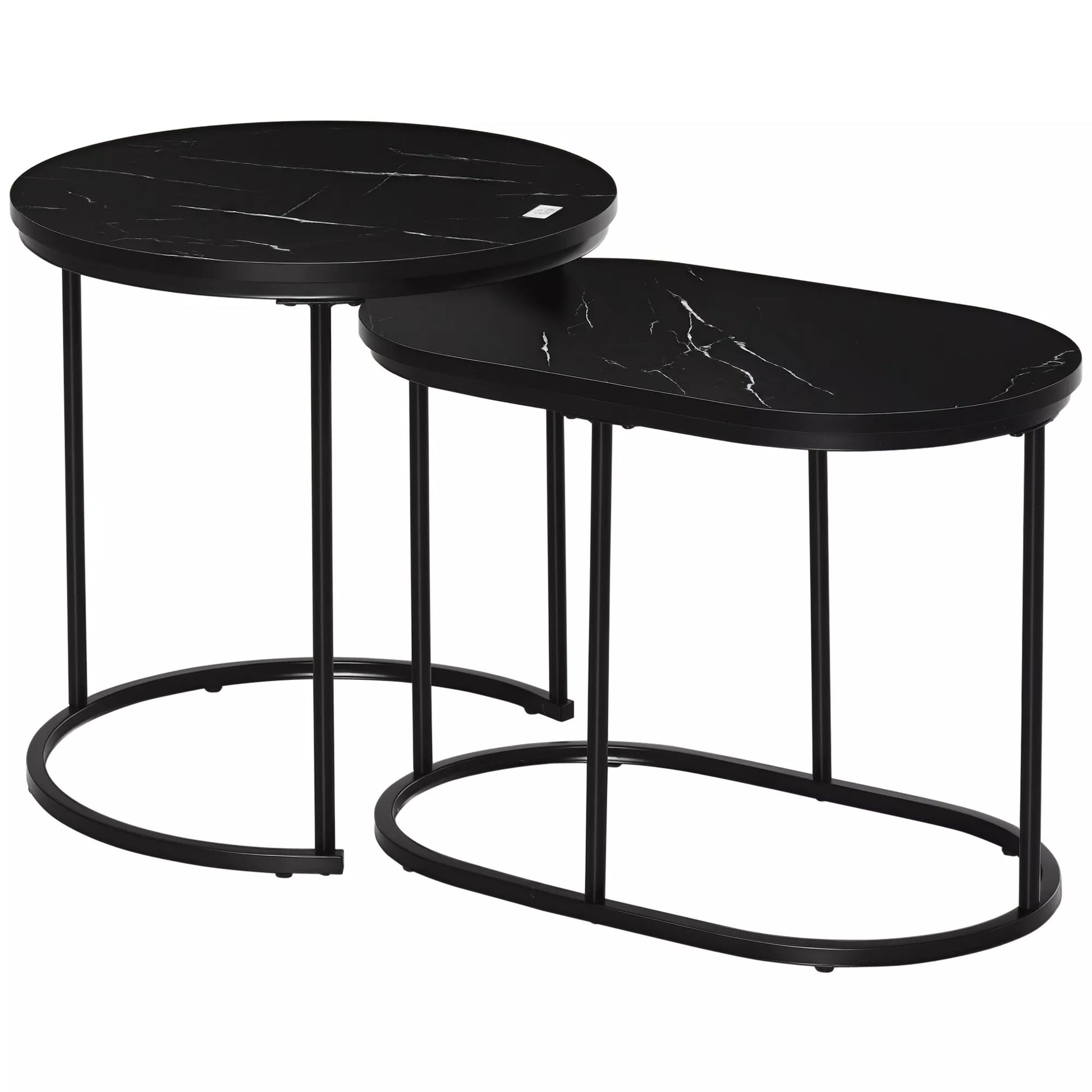 2 vnt. kavos staliukų rinkinys, ovalus ir apvalus, sudedamas, marmuro efektas, MDF, metalas, Ø50 x 50,5H cm, juodas