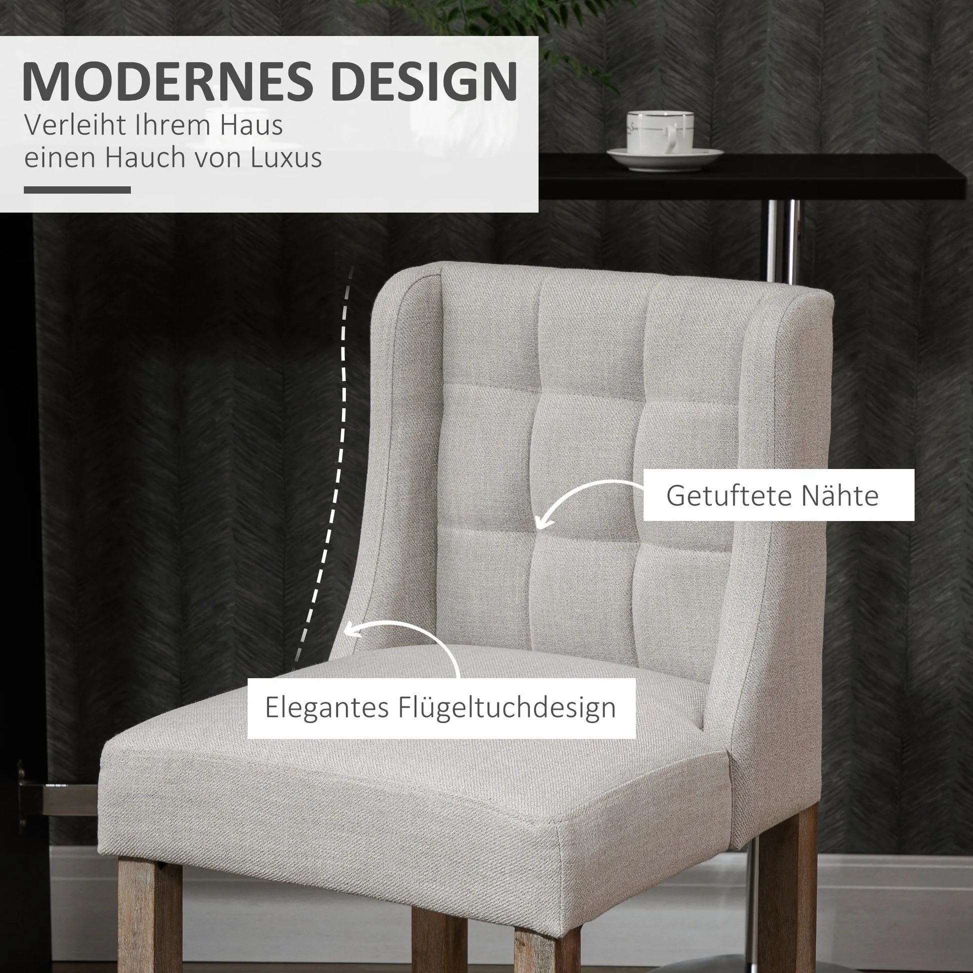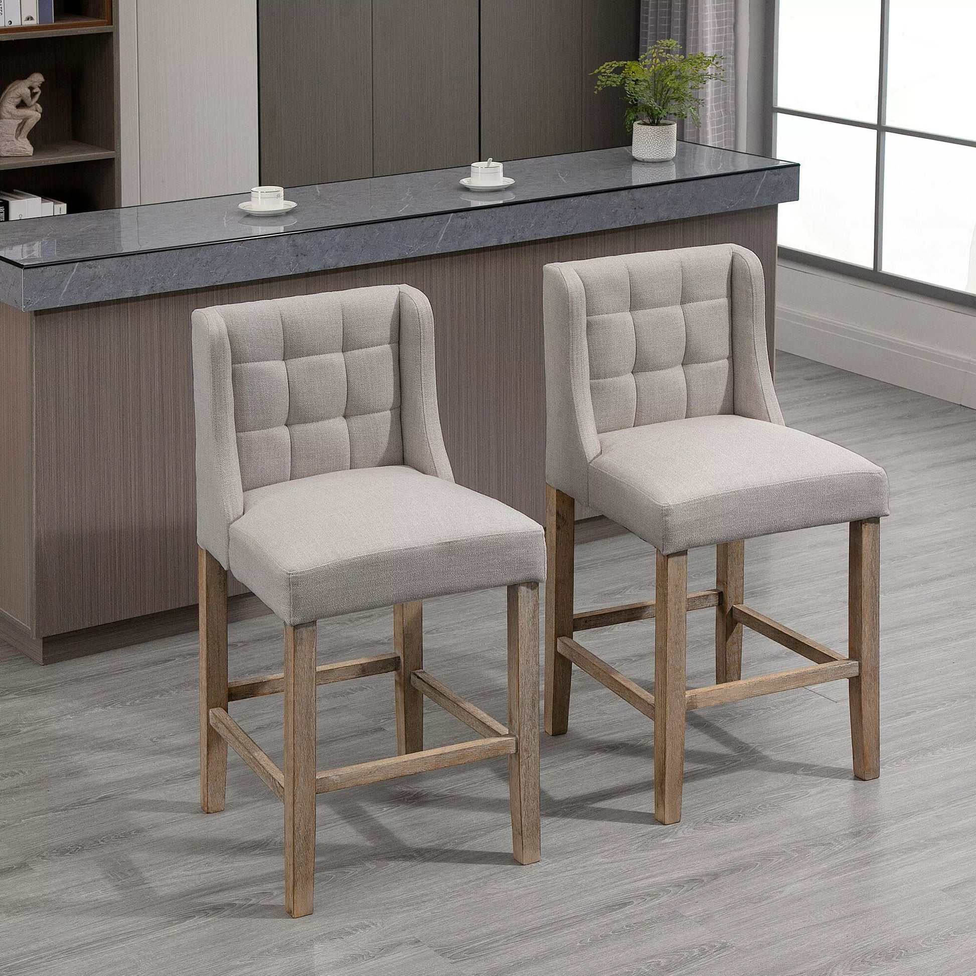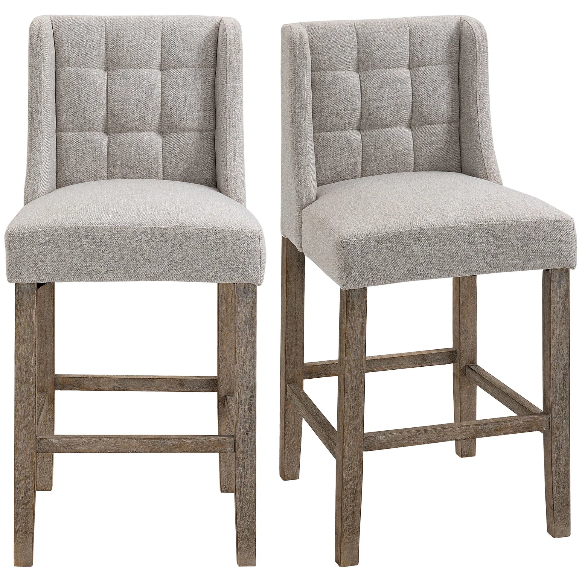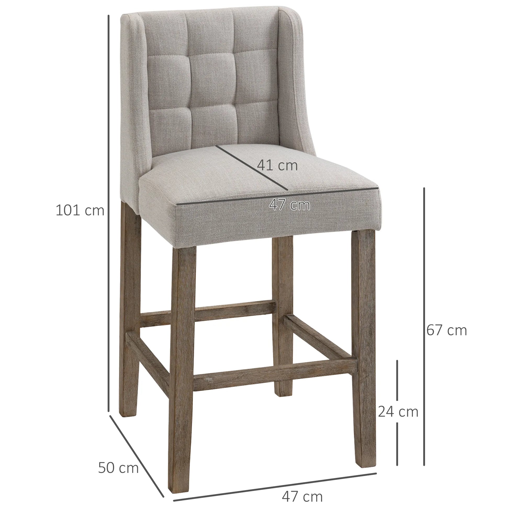 2 vnt. baro kėdžių komplektas su atlošu ir sagų dygsniavimu, medžio masyvo, su kojų atrama, 47 cm x 50 cm x 101 cm, Pilka + Natūrali