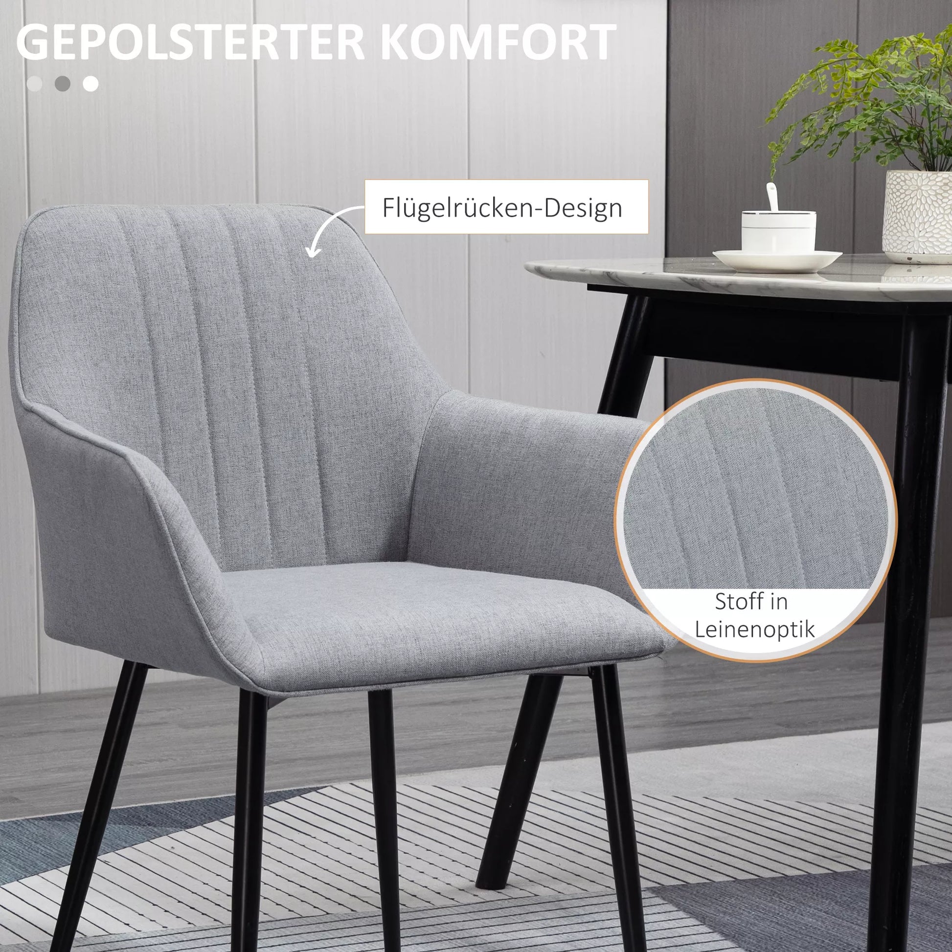 Ieškote patogių kėdžių savo naujiems namams papuošti? Šis 2 minkštų kėdžių komplektas yra puikus pasirinkimas. Jo skandinaviškas stilius lengvai derinamas su jūsų kitais baldais ir dekoracijomis. Šios kėdės turi kvėpuojantį poliesterio užvalkalą, ergonomiškas lenktas atlošas ir atramines rankas bei tvirtas metalines kojeles, kad suteiktų jums patogią ir stabilią sėdėjimo vietą. Puikiai tinka jūsų svetainei, valgomajam, darbo kambariui ir pan.