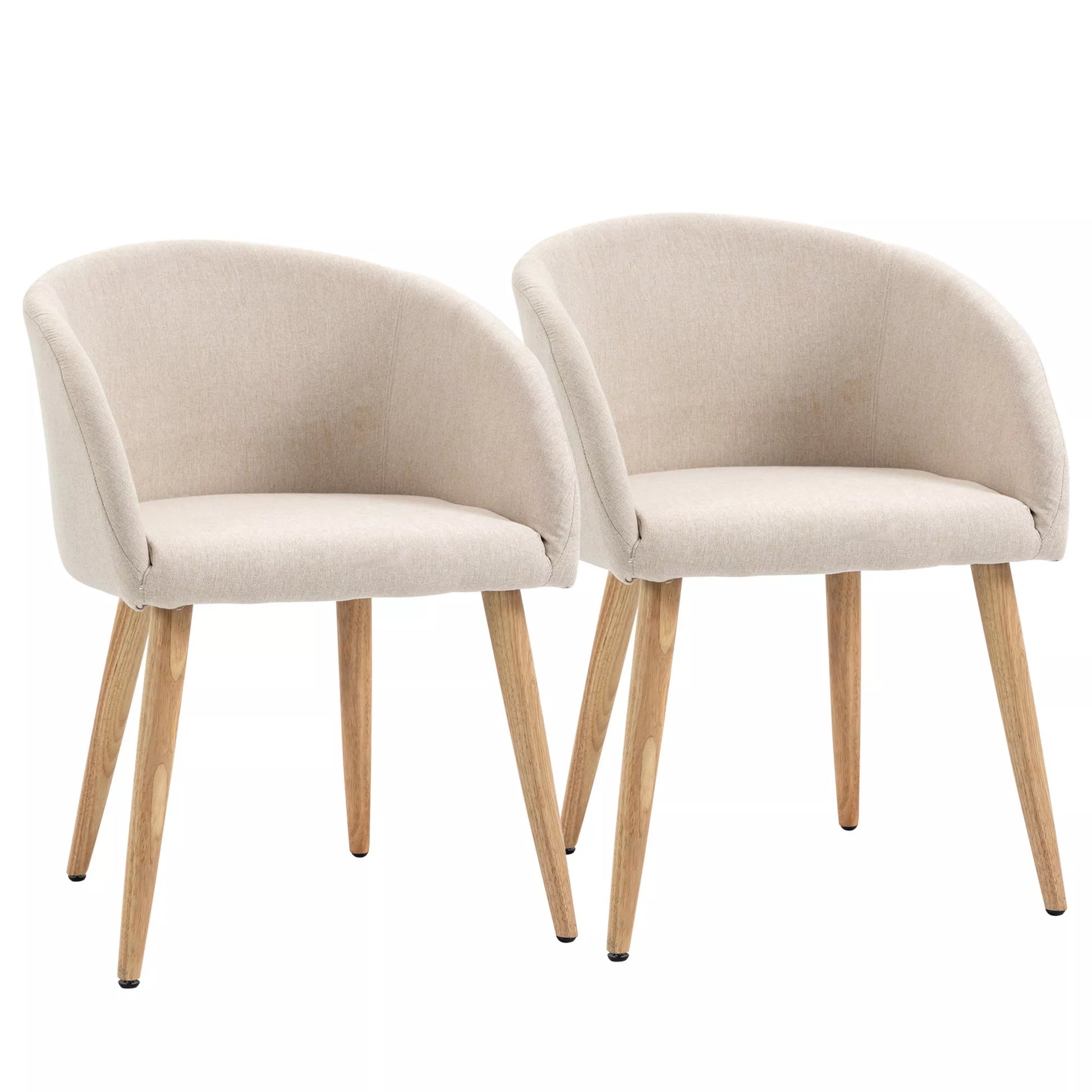 2 vnt. minkštų kėdžių komplektas, skandinaviško dizaino, apmuštos kėdės su medinėmis kojomis, neslystančios pagalvėlės, 150 kg apkrova, smėlio spalvos