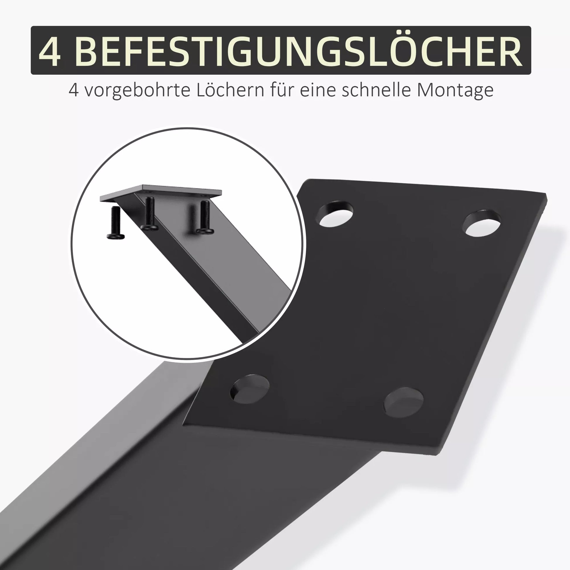 - ✔ 4 išgręžtos skylės kiekvienoje tvirtinimo plokštelėje ir 16 savisriegių varžtų, skirtų lengvam montavimui