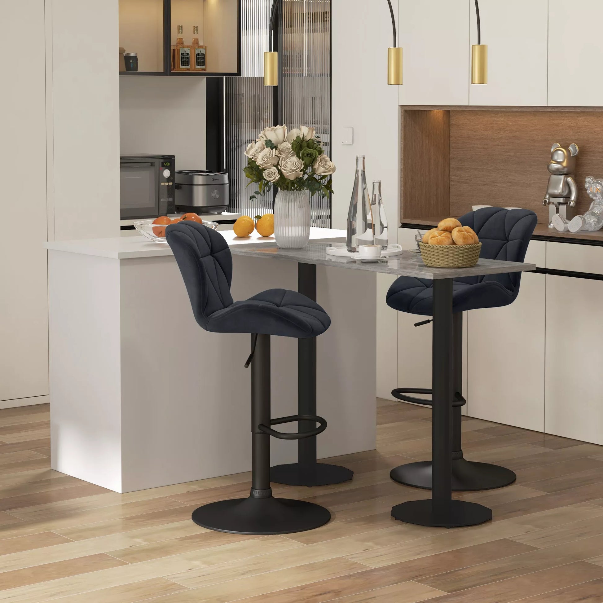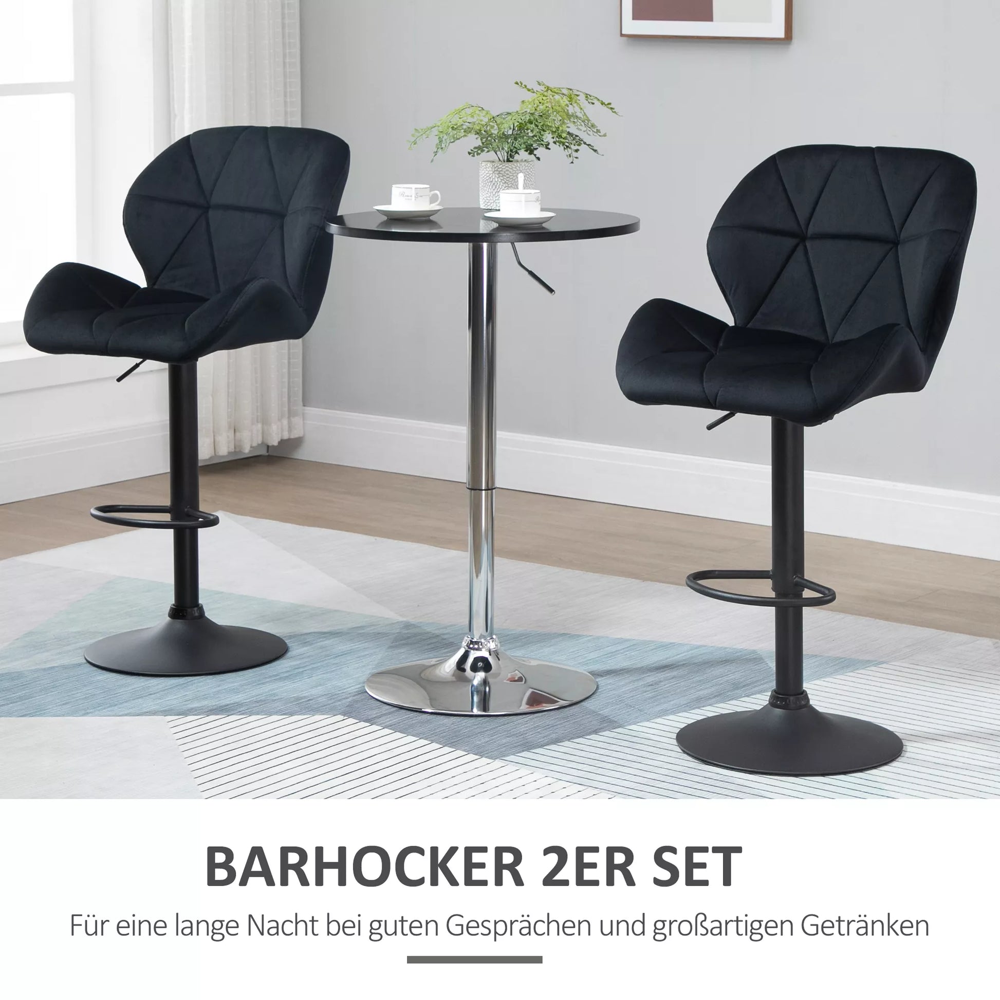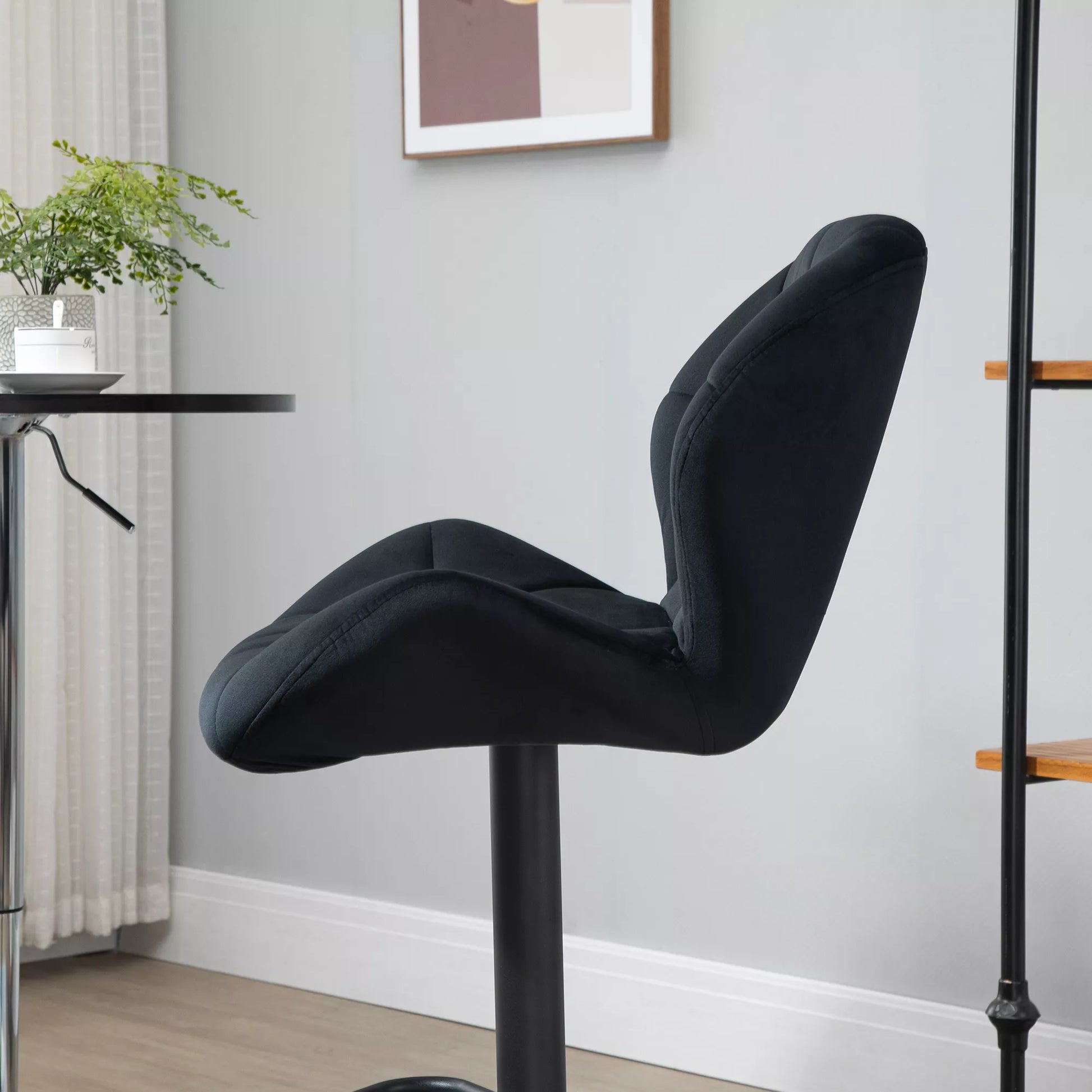 2 vnt. komplektas Baro kėdžių, besisukančios, su atlošu, reguliuojamo aukščio, pusbario kėdės, aksominės, be porankių, putplastis, juodos spalvos, 51,5x 57,5 x 93-114,5 cm