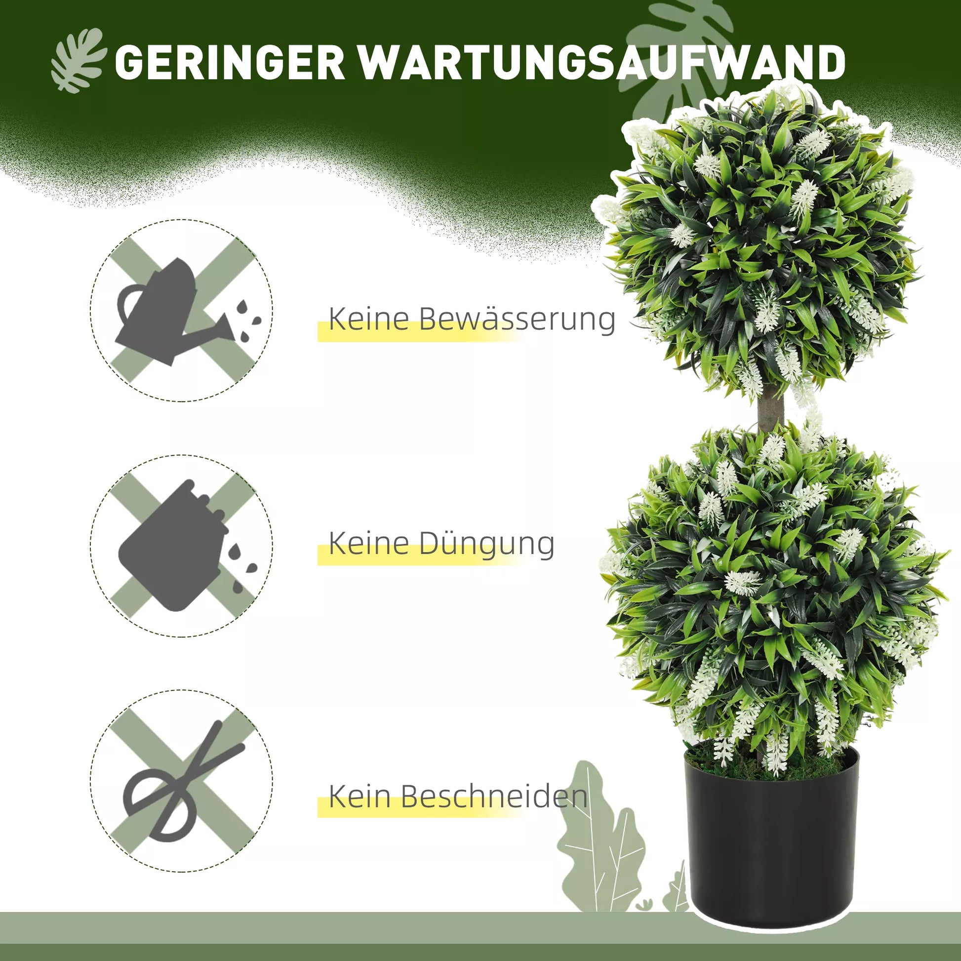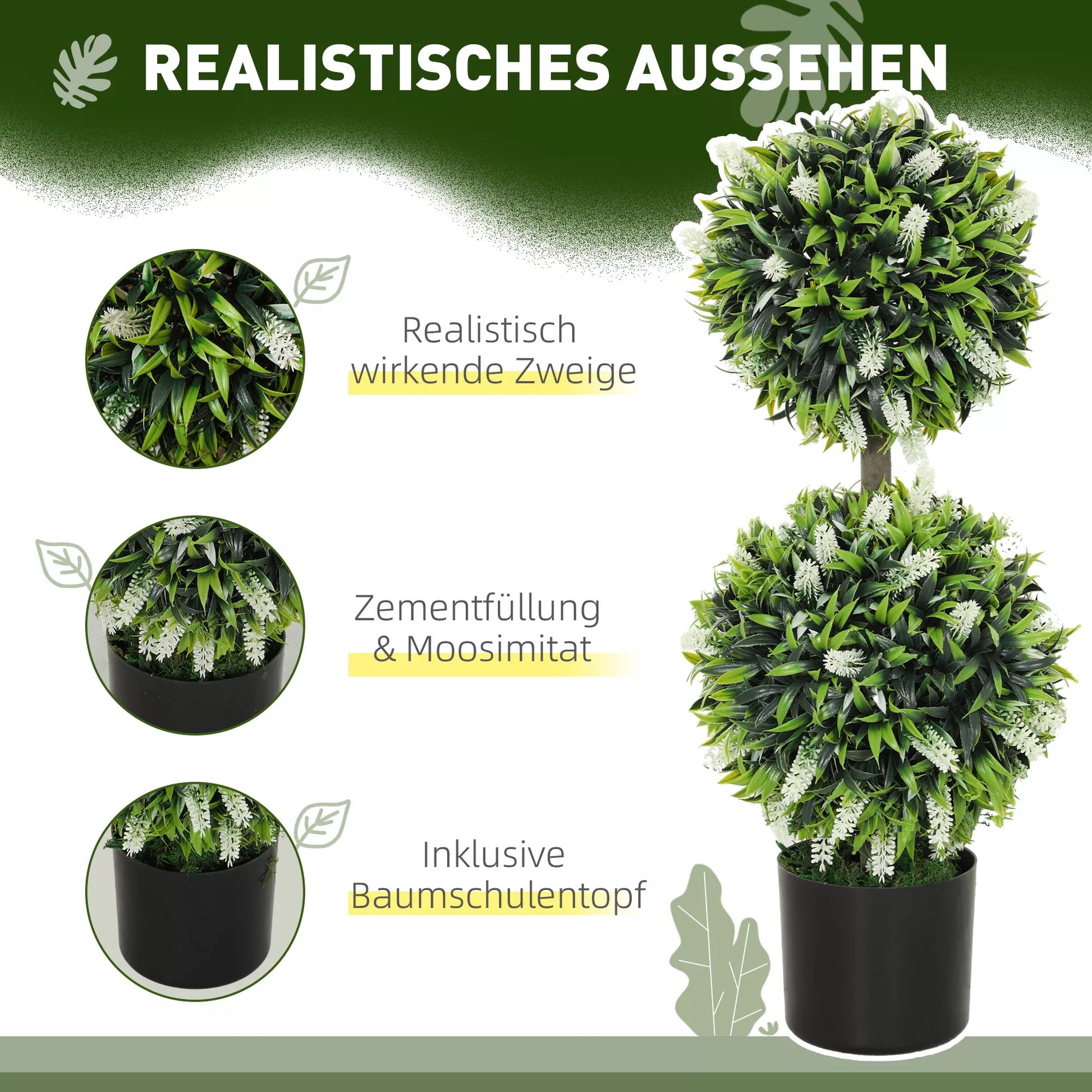 - ✔ Dekoratyvinių dirbtinių augalų rinkinys iš dviejų vnt., tinkamas naudoti vidaus ir lauko sąlygomis