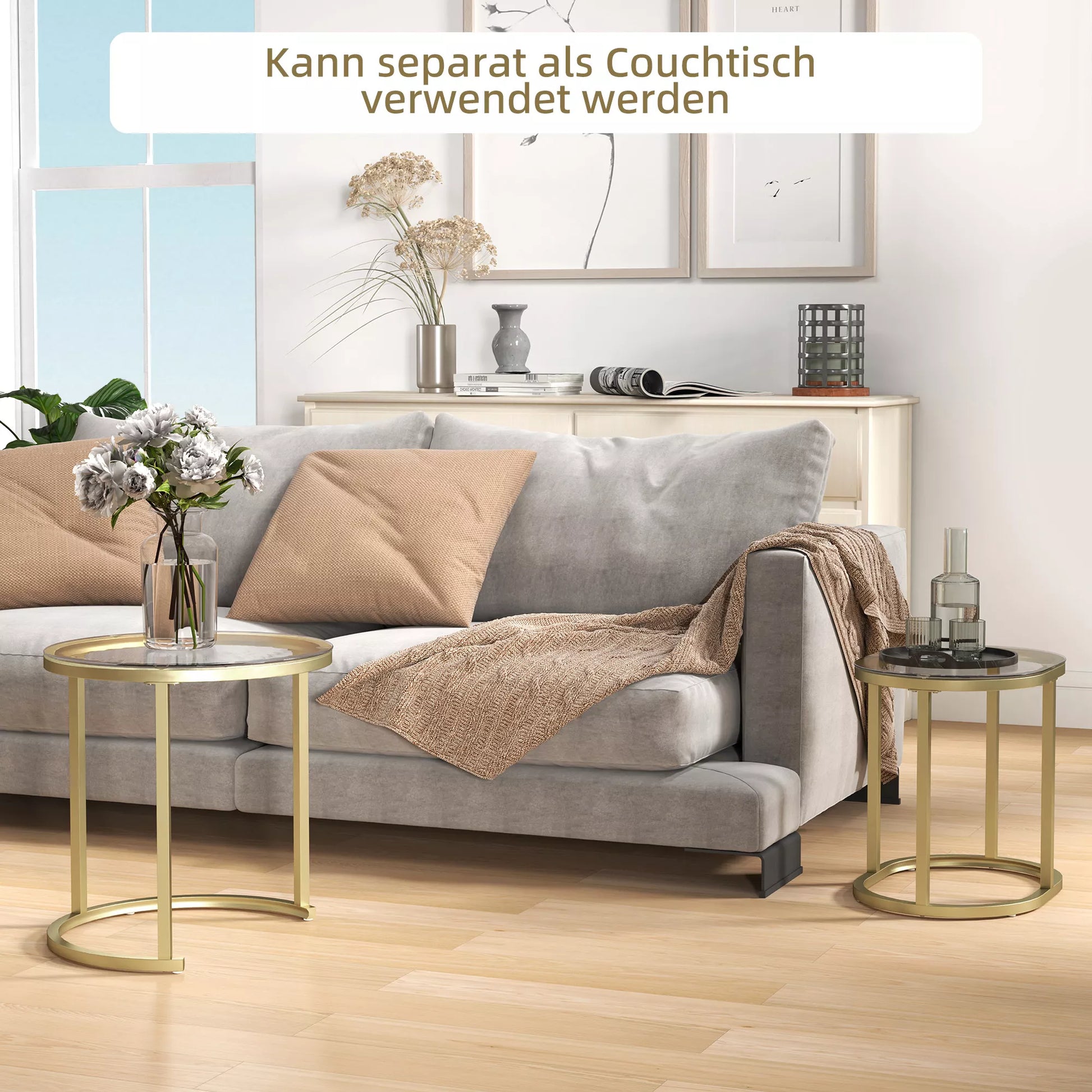 2 vnt. kavos staliukų komplektas, ovalus ir apvalus, sukraunamas, plieninis, Ø50 x 50,5 cm (aukštis), auksinės spalvos