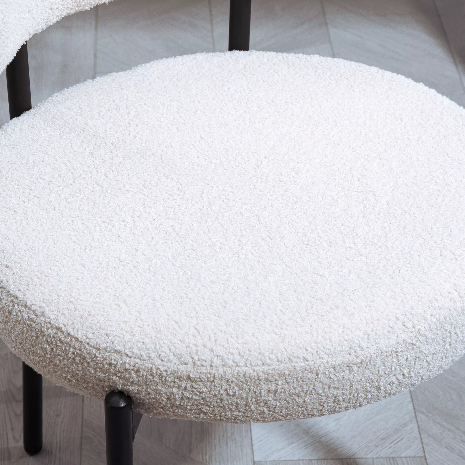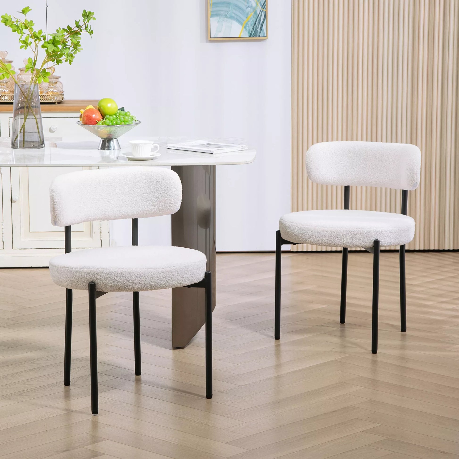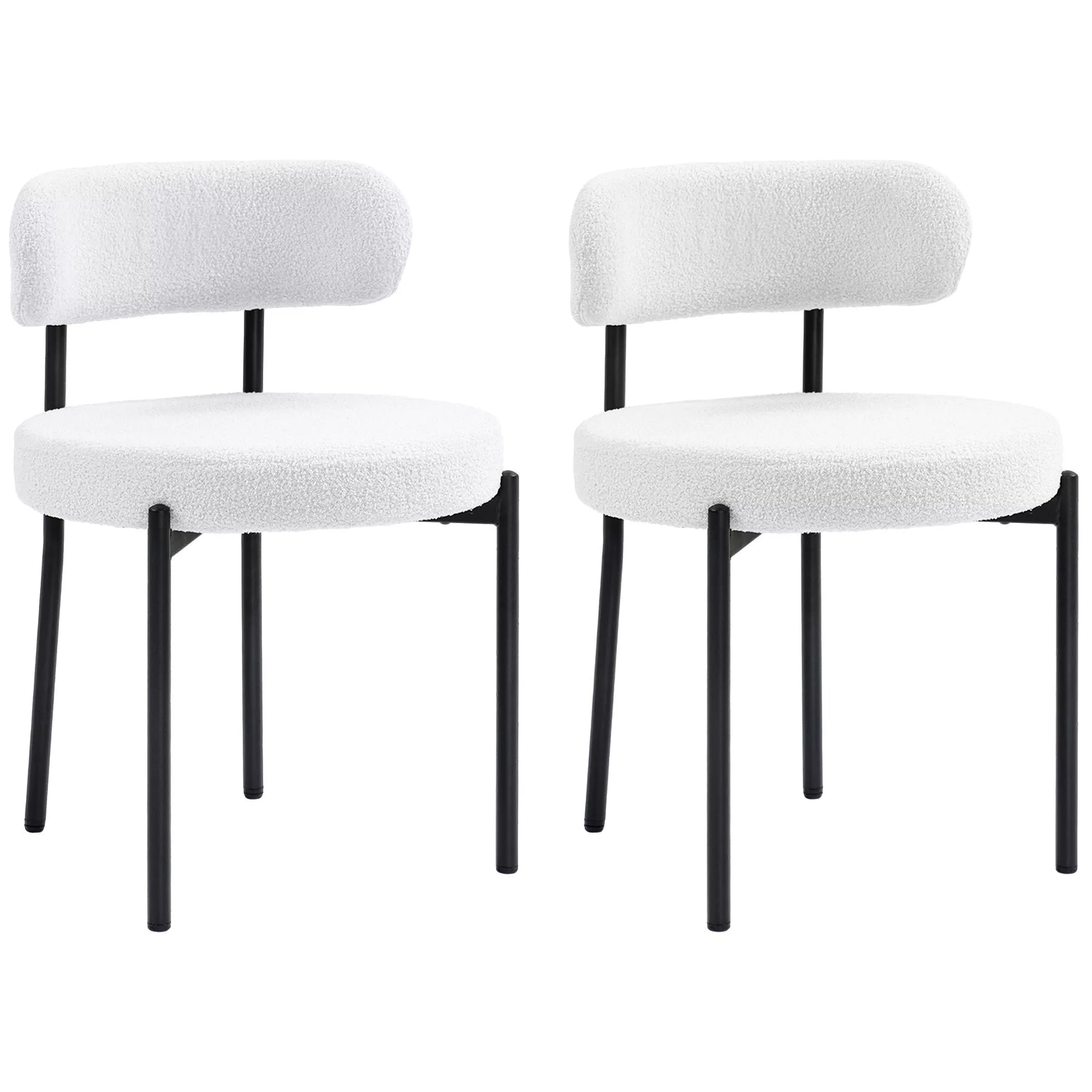 2 vnt. valgomojo kėdžių rinkinys, vilnos apmušalas, kėdės su paminkštinta sėdyne, metalinės kojos, kreminės baltos spalvos