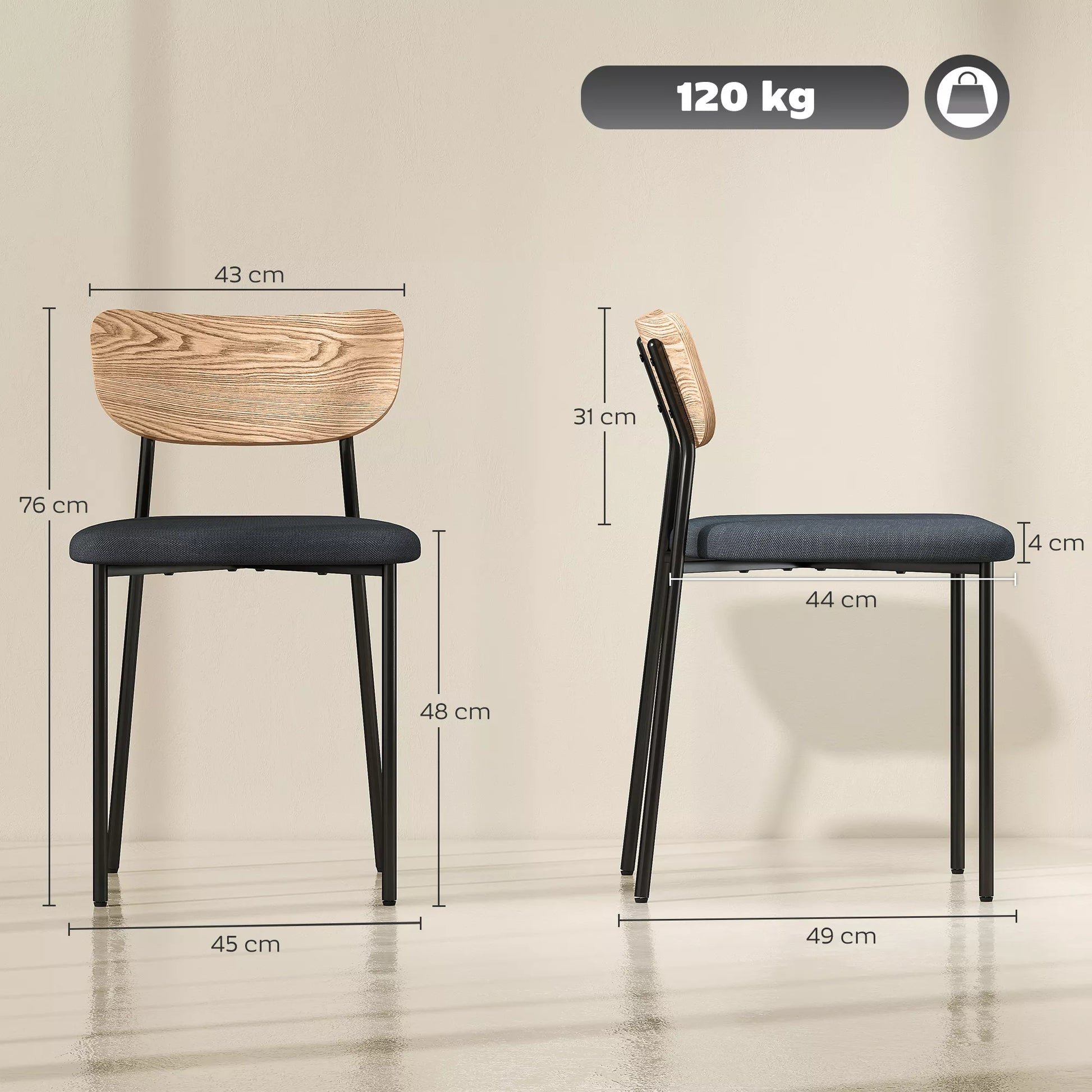 - ✔ 2 virtuvinių kėdžių komplektas sujungia stilių ir praktiškumą