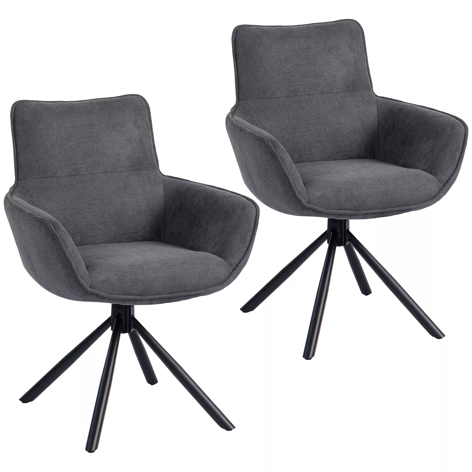 2 vnt. rinkinys Valgomojo kėdės, sukančios, minkštai paminkštintos, su porankiais, metaliniu pagrindu, tamsiai pilkos