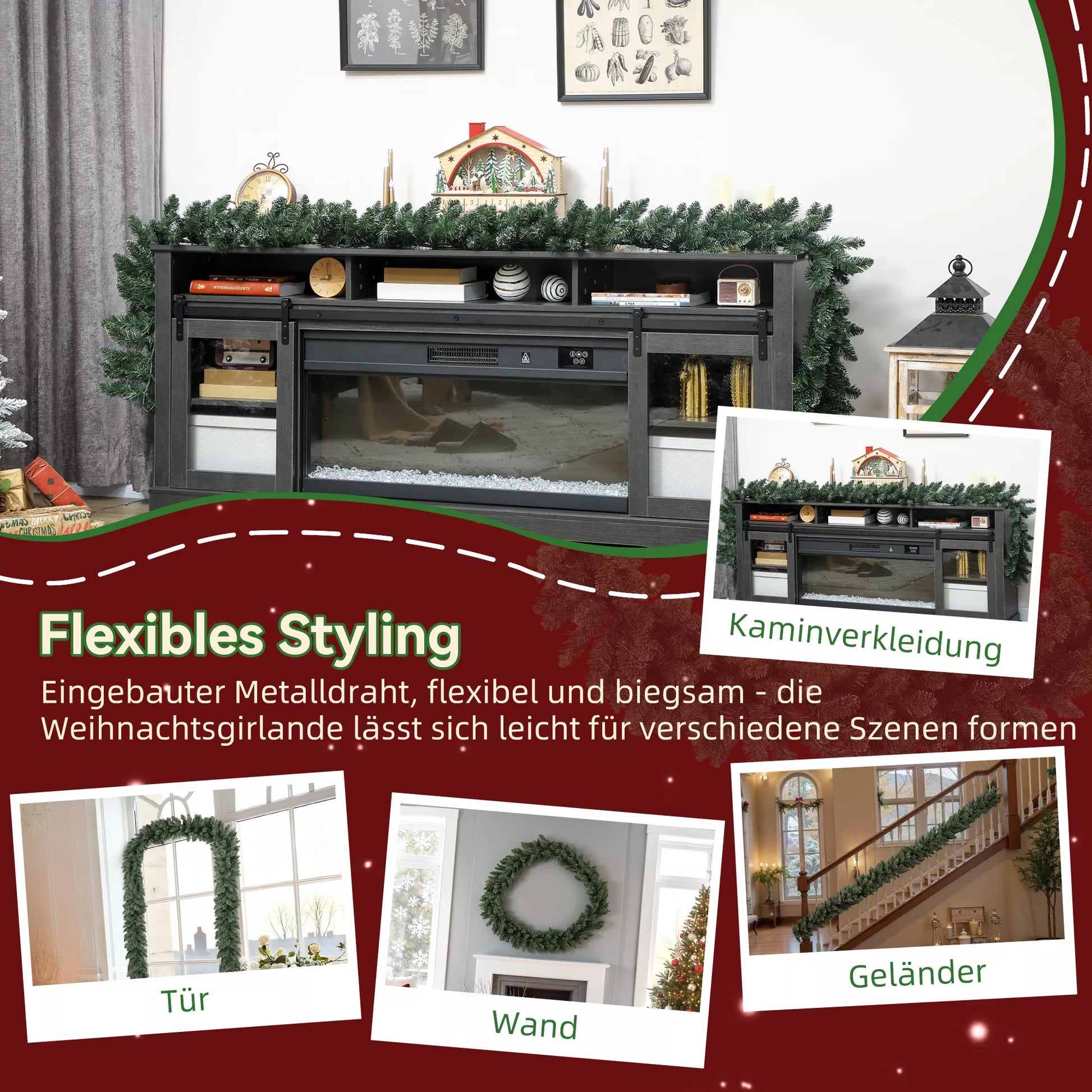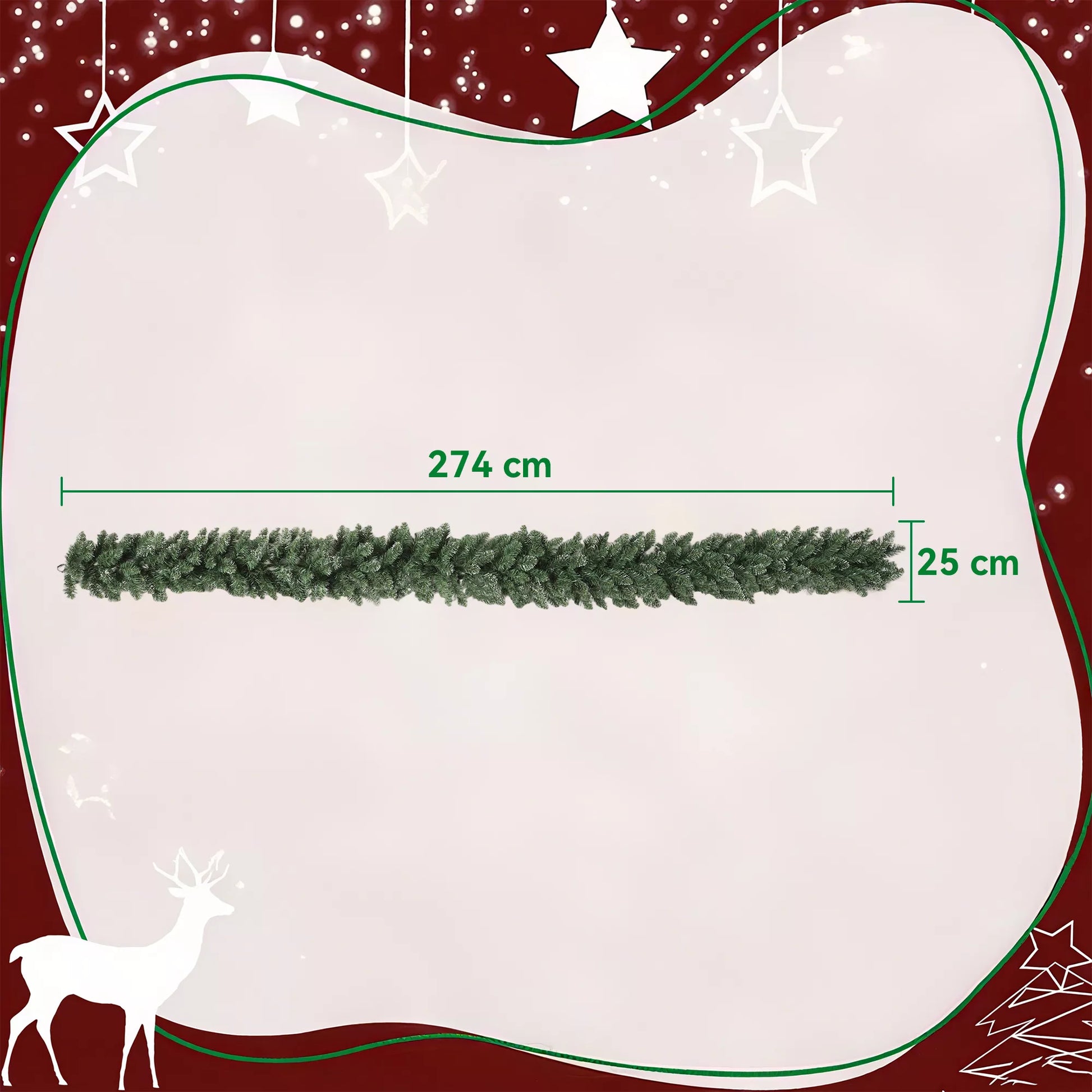 2,7 m dirbtinė Kalėdų girlianda, 216 šakelių eglutės girlianda dekoravimui, laiptams, židiniui, žalia