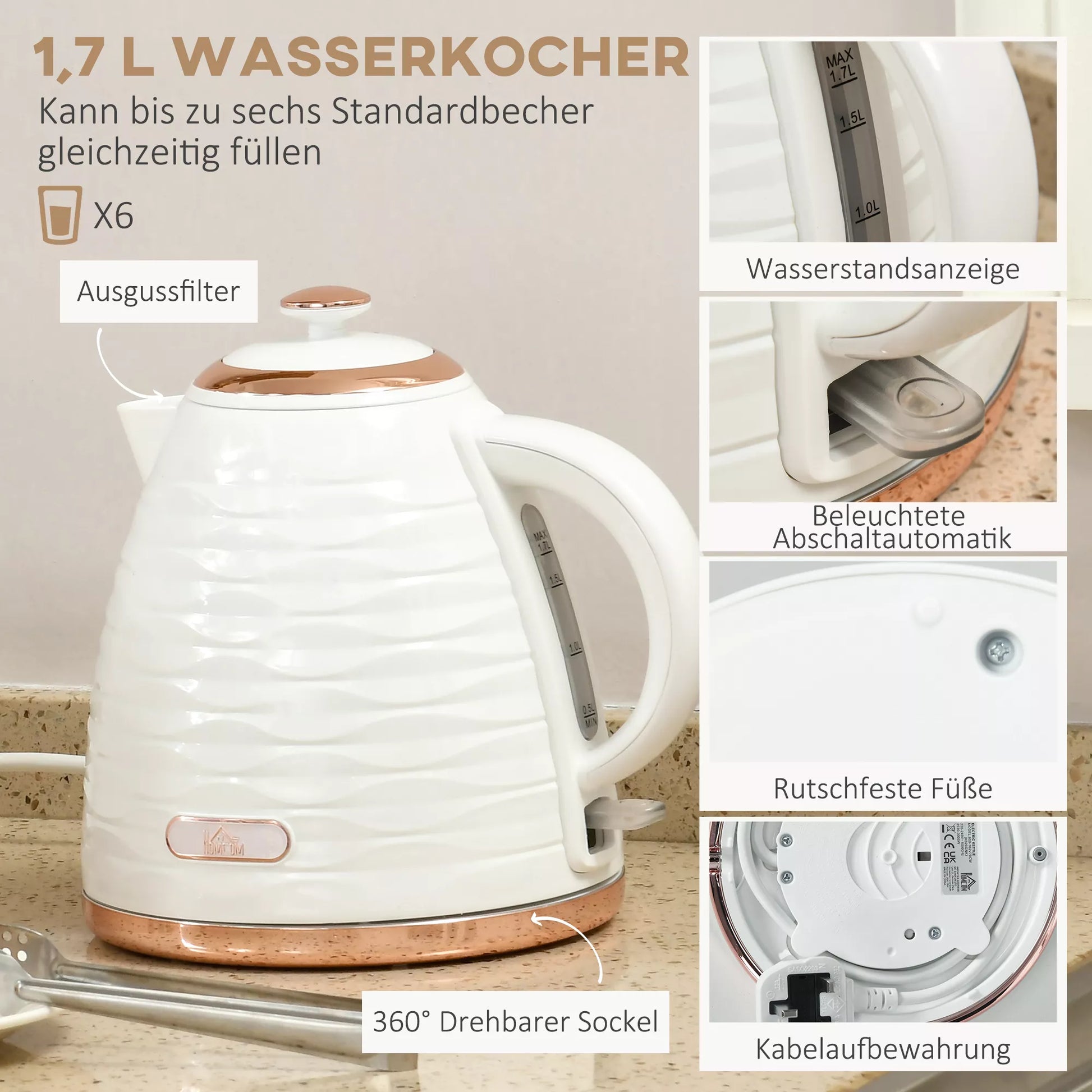 - ✔ 1,7 litro pusryčių rinkinio virdulys su lengvai skaitomu vandens lygio indikatoriumi ir Otter termostatu