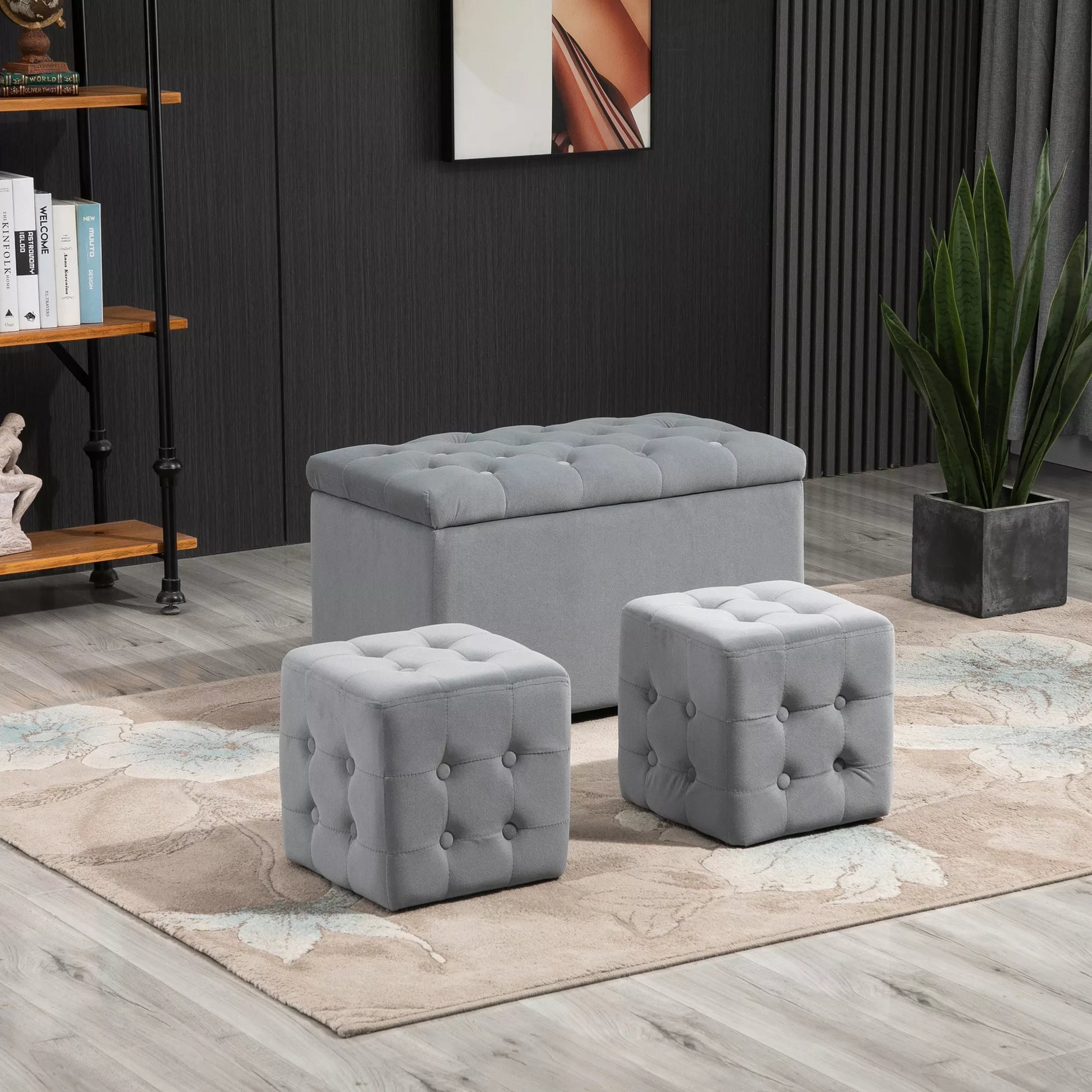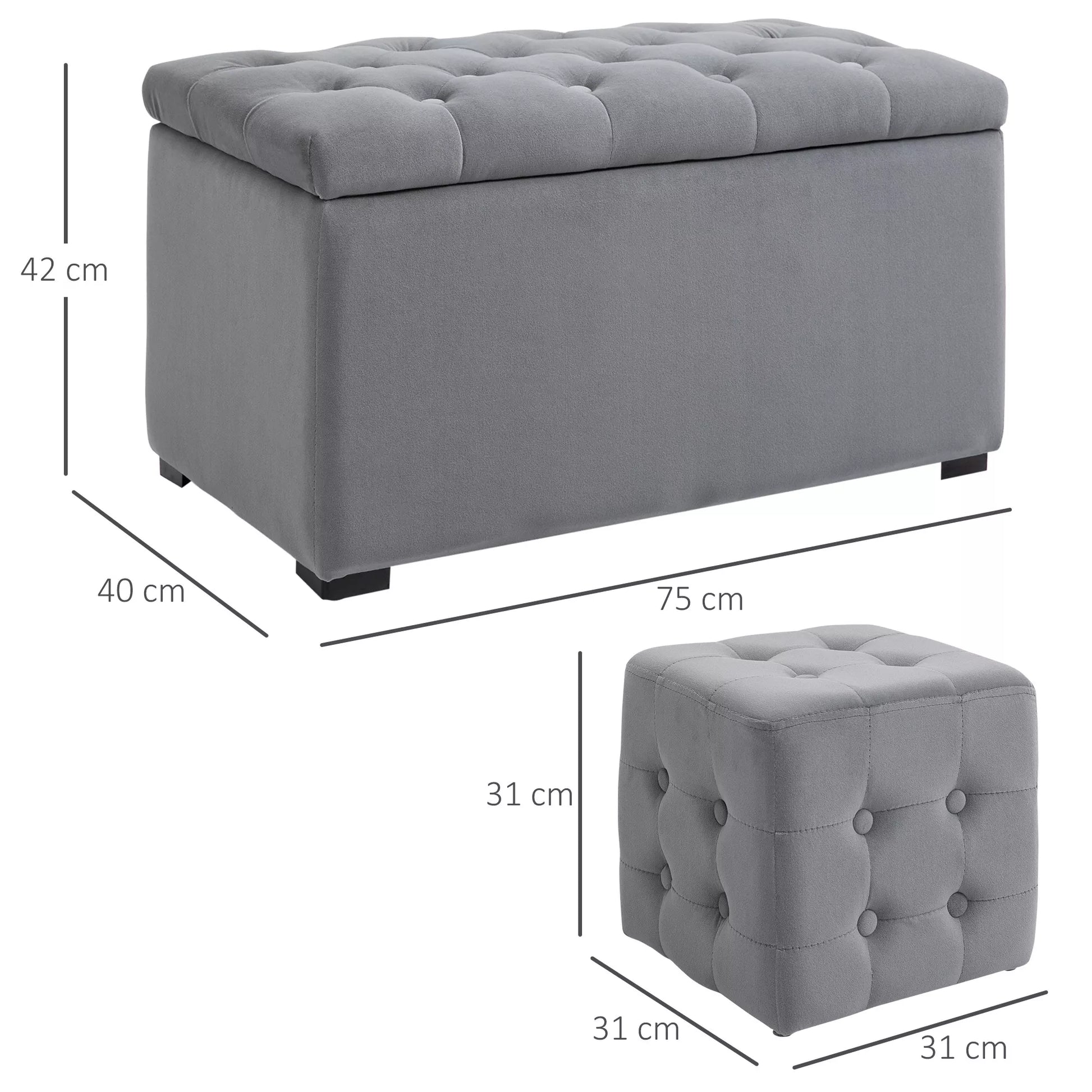 Ši stilinga ir elegantiška laikymo suoliukas, pagamintas "HOMCOM", puikiai tiks bet kurioje svetainėje, miegamajame ar prieškambaryje. Dėl minkšto mikropluošto užvalkalo šis suoliukas yra tikras akcentas. Erdvus vidus leidžia sutaupyti vietos laikant tokius daiktus kaip nuotolinio valdymo pulteliai, papildomos pagalvės ir pledai, ar net du mažesni sėdimieji kubai.