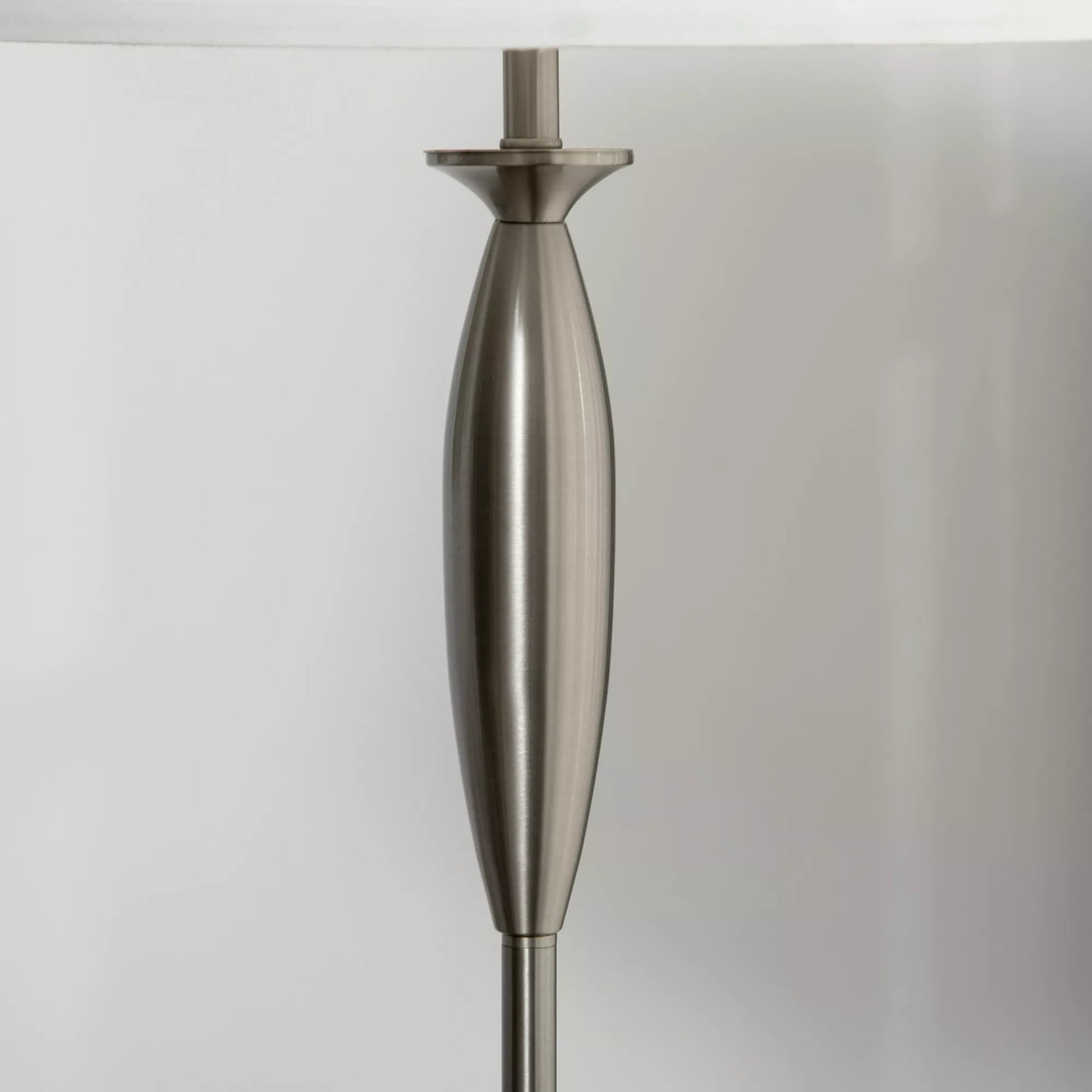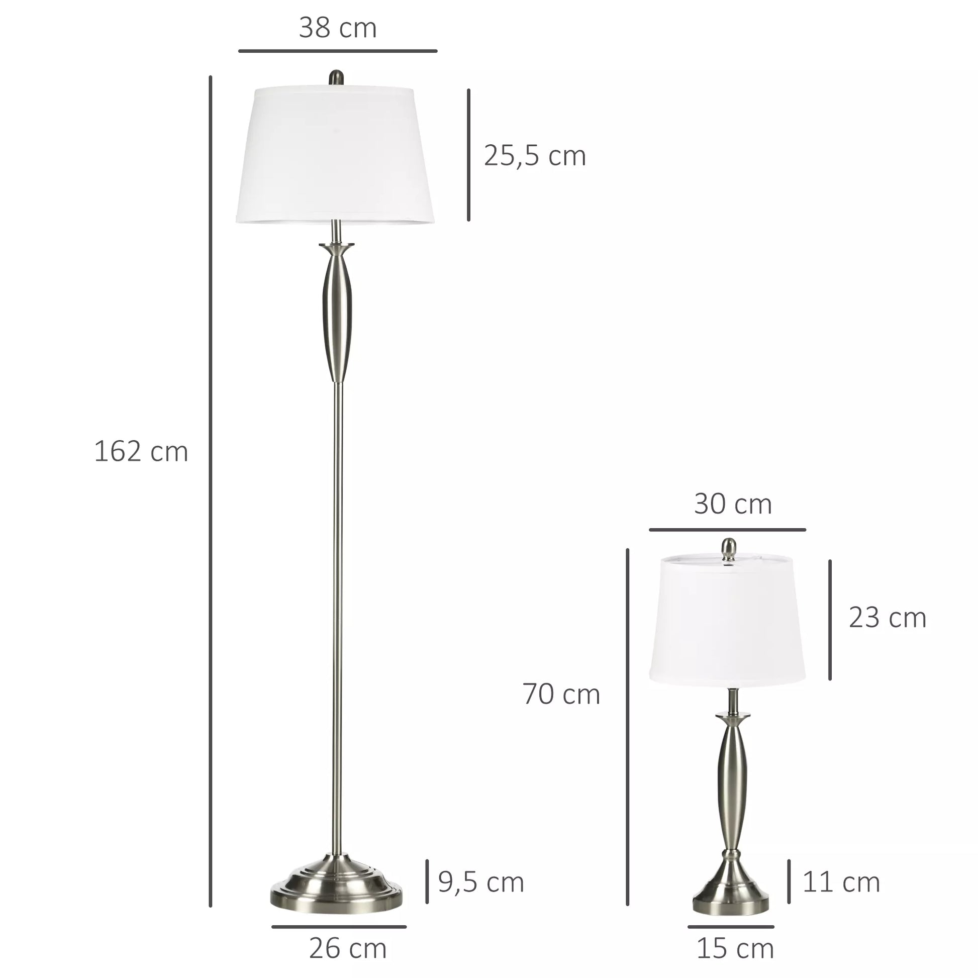 3 dalių šviestuvų rinkinys. 1 pastatomas šviestuvas, 2 staliniai šviestuvai, su linine išvaizda; 38 cm x 38 cm x 158 cm, Sidabrinis + Baltas