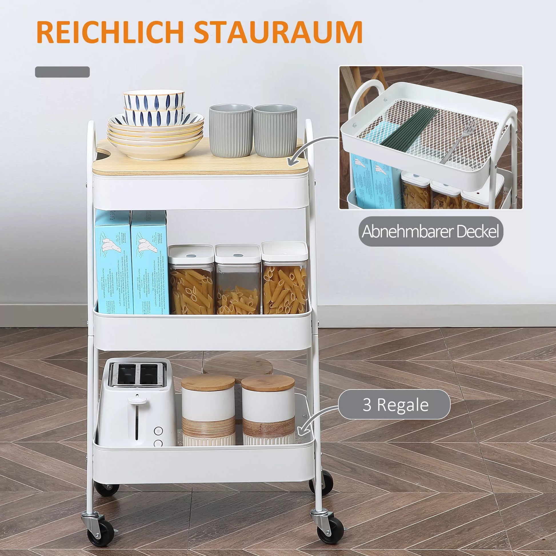 - ✔ MDF dangtis paverčia jūsų daiktų laikymo vežimėlį universaliu organizatoriumi