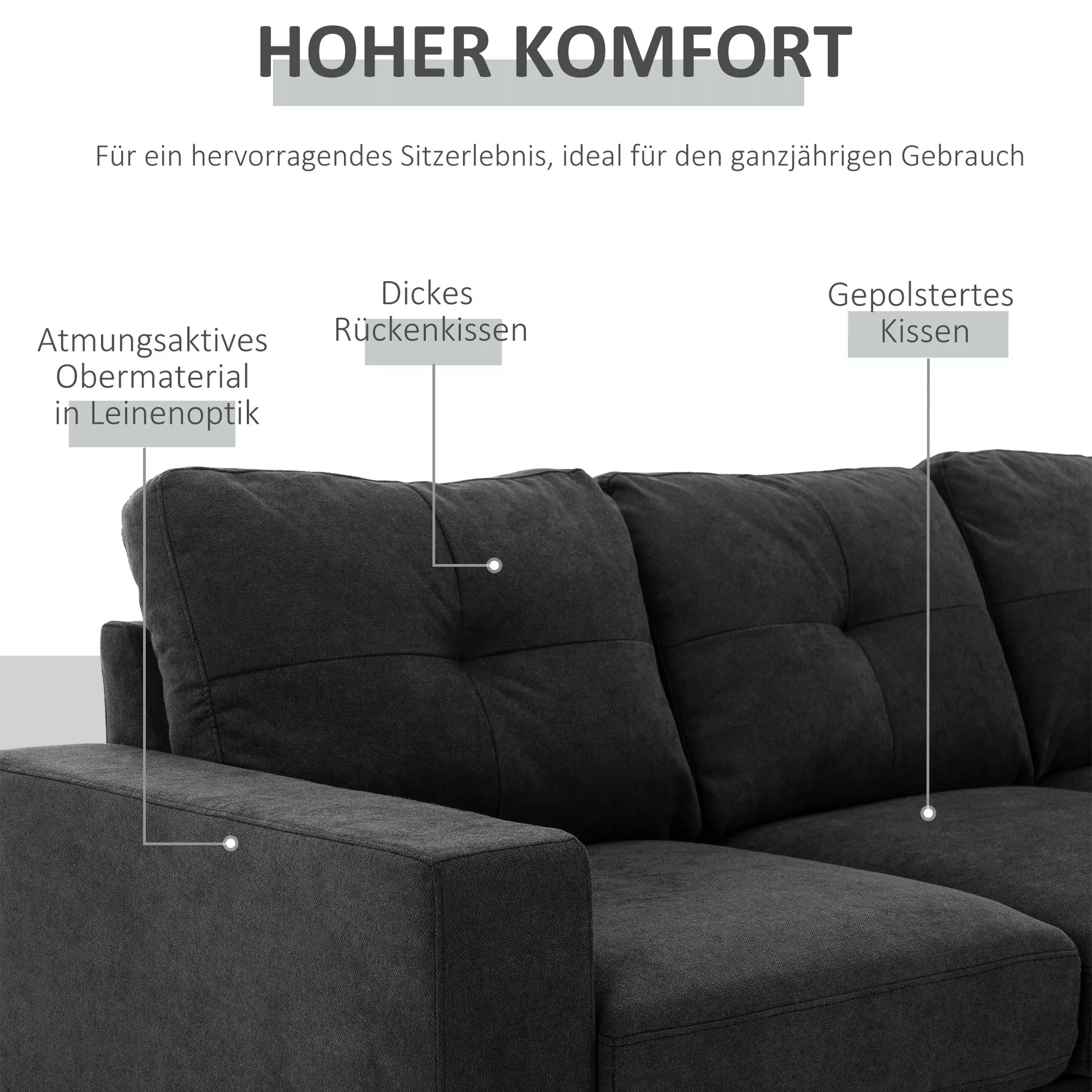 [Brand Name] 3 vietų kampinė sofa idealiai tinka vakarams prie filmų su draugais ar ramiam skaitymo metui. Medinis rėmas yra minkštai paminkštintas ir apvilktas kvėpuojančiu lininiu užvalkalu. Idealiai tinka bet kokiai aplinkai!