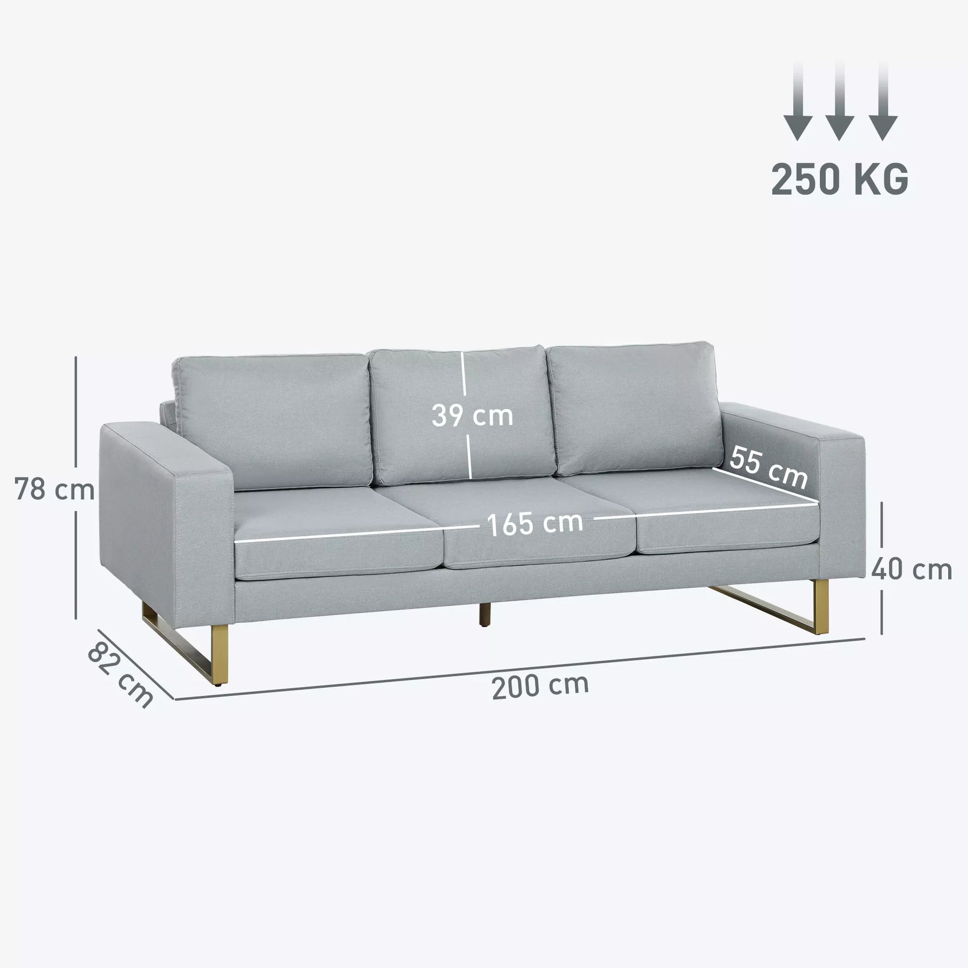 3 vietų sofa, su medinio masyvo rėmu, metalinėmis kojomis, paprastas dizainas, šviesiai pilka