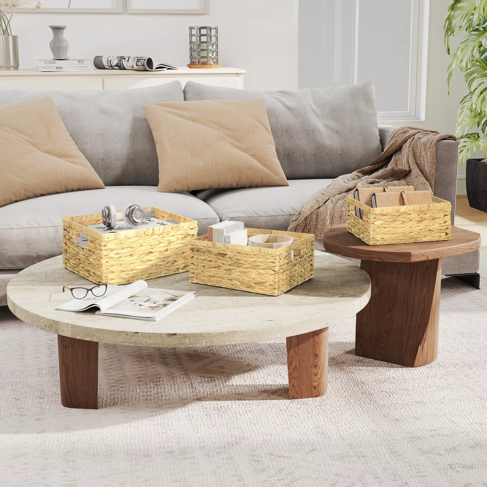 Pajuskite praktišką laikymo krepšių žavesį. Šis rinkinys sudarytas iš trijų skirtingų dydžių krepšių, siūlančių daug vietos organizavimui. Rankomis pinti iš natūralios vandens hiacinto ir su tvirtu metaliniu rėmu, šie laikymo krepšiai derina patogumą su kaimiška elegancija. Puikiai tinka jūsų namams ar biurui, jie stilingai sutvarkys bet kokią erdvę.