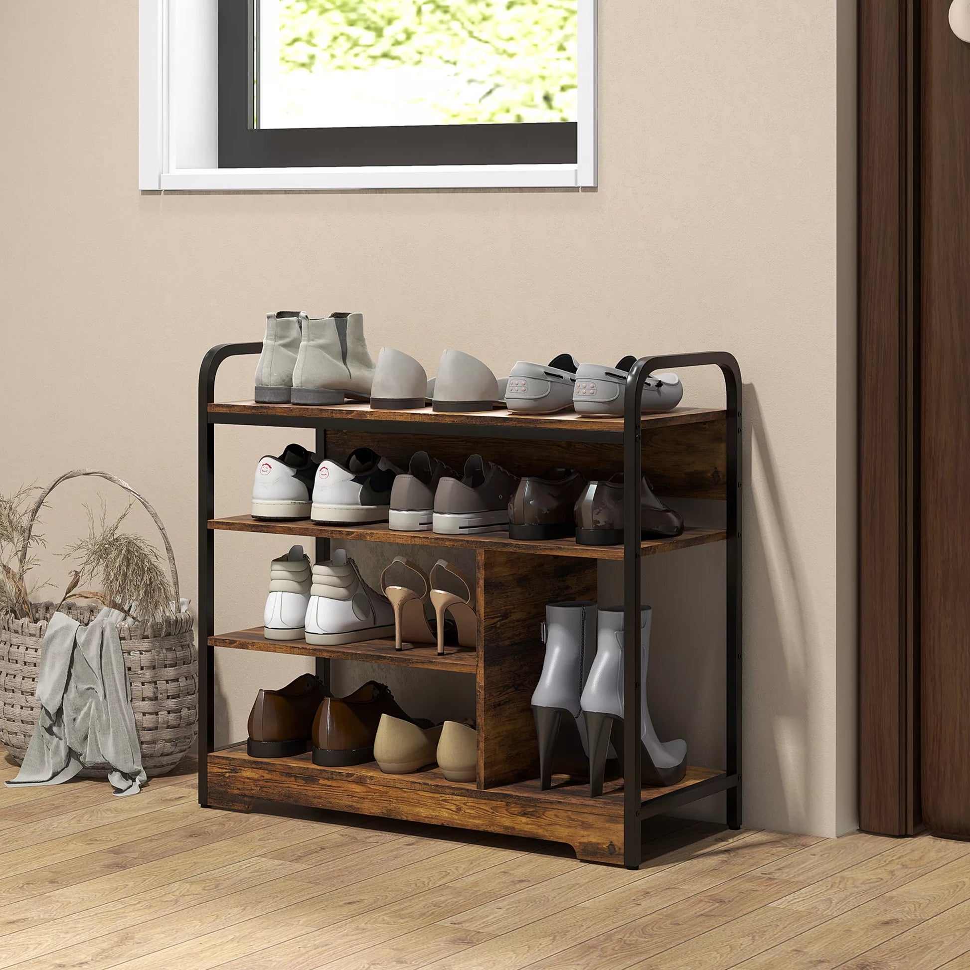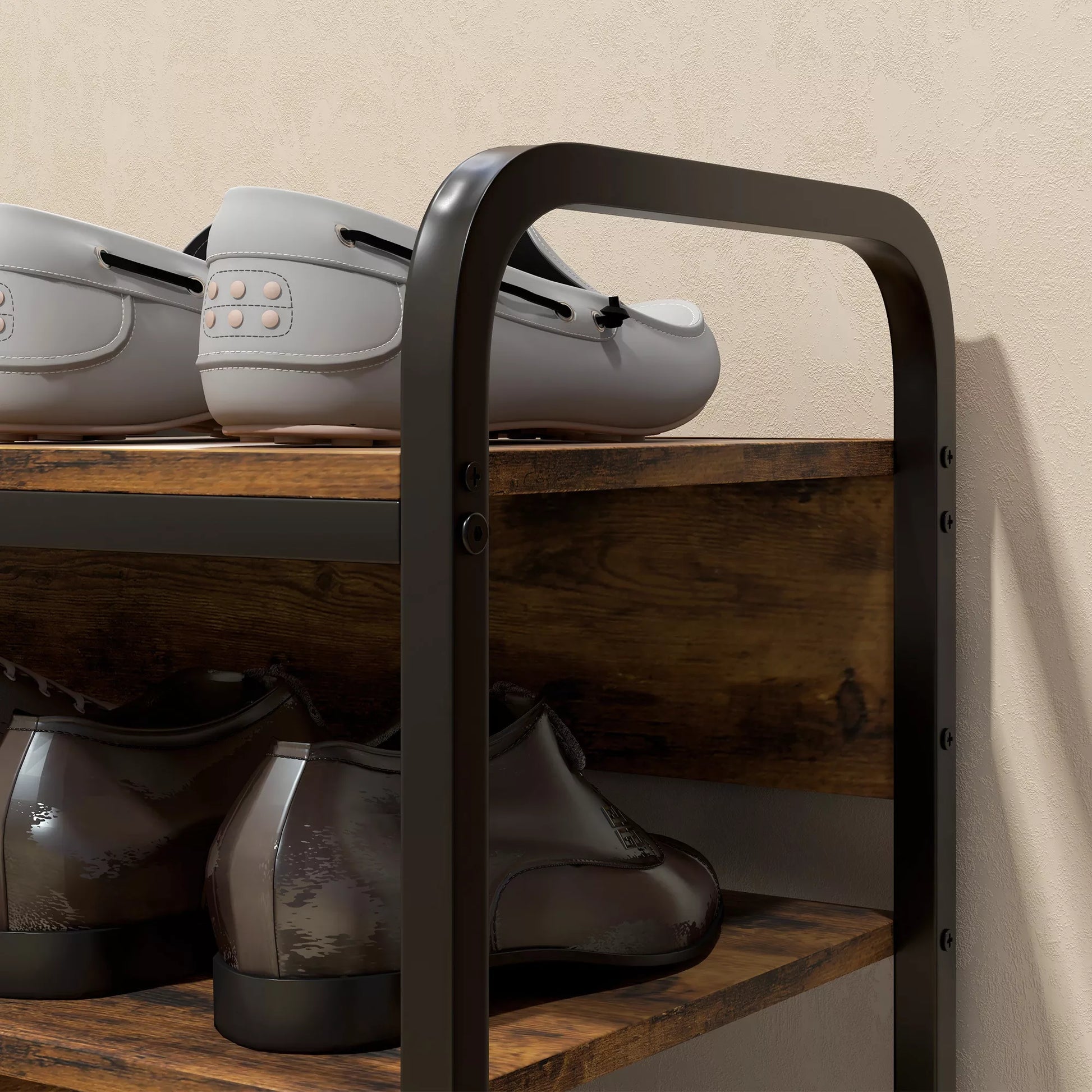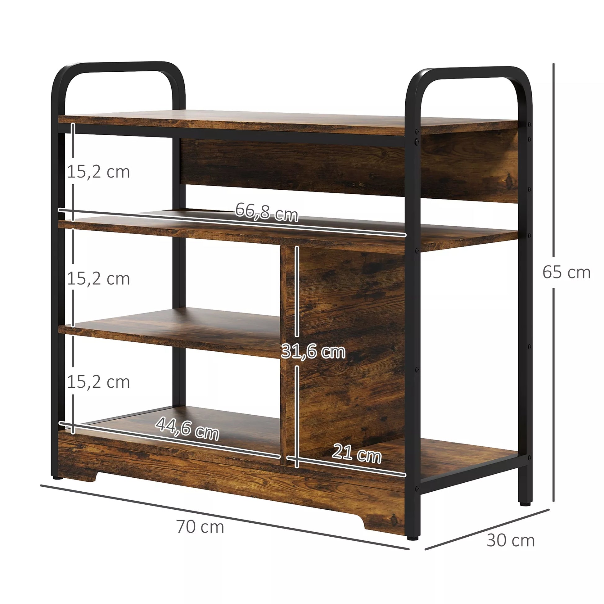 4 pakopų batų lentyna, atviras dizainas, metalinis rėmas, reguliuojamos kojelės, 70x30x65 cm, ruda/juoda